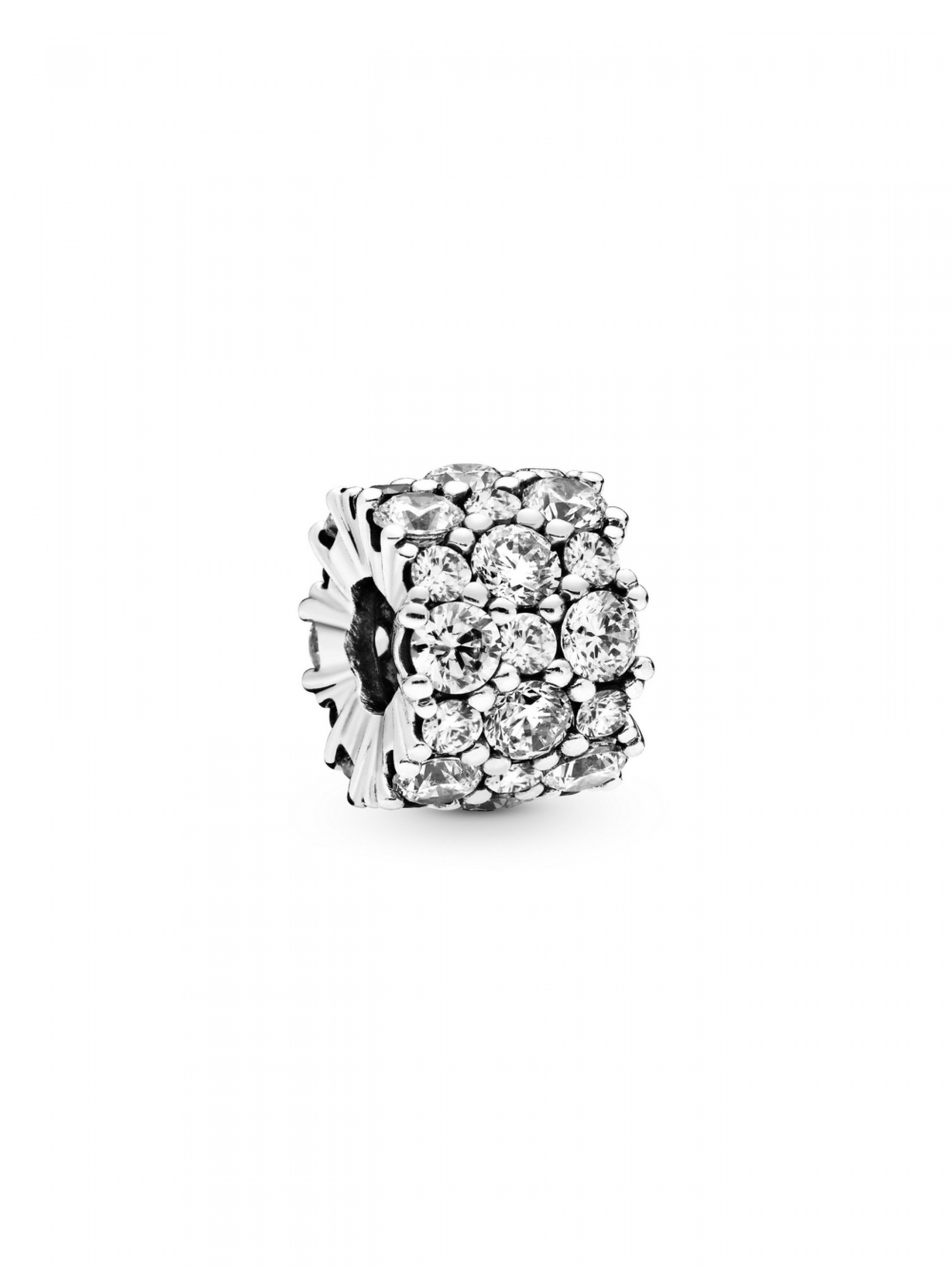 Коли душа просить яскравих аксесуарів, одягніть цю намистину із завжди актуальним дизайном. Особливого стилю прикрасі додає комбінація мініатюрних і масивних камінців. Усю поверхню намистини Pandora Moments вкрито прозорими кубічними оксидами цирконію, що випромінюють яскраве сяйво. Намистину виготовлено зі срібла 925-ї проби та довершено вручну. Вона вирізняється неймовірною універсальністю та пасуватиме до практично всіх прикрас з вашої особистої колекції.