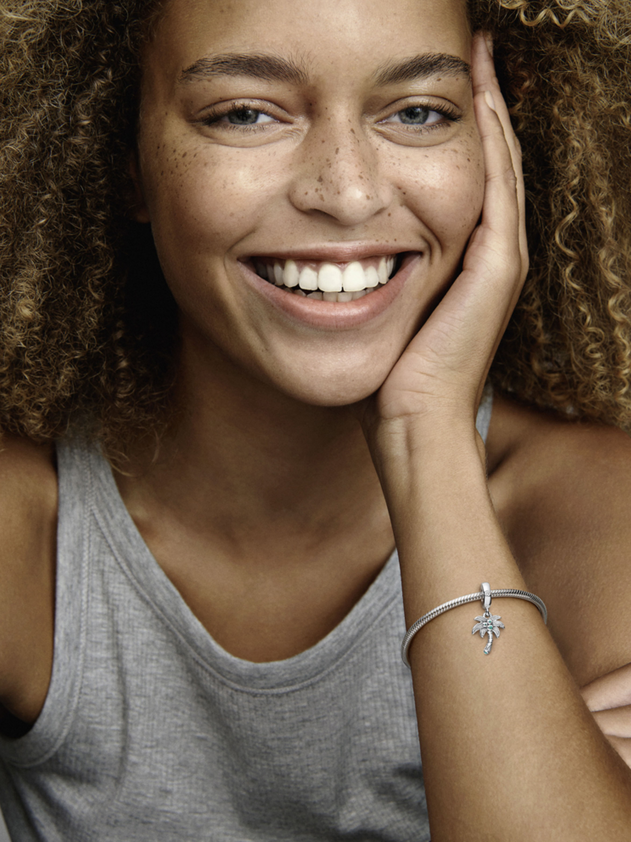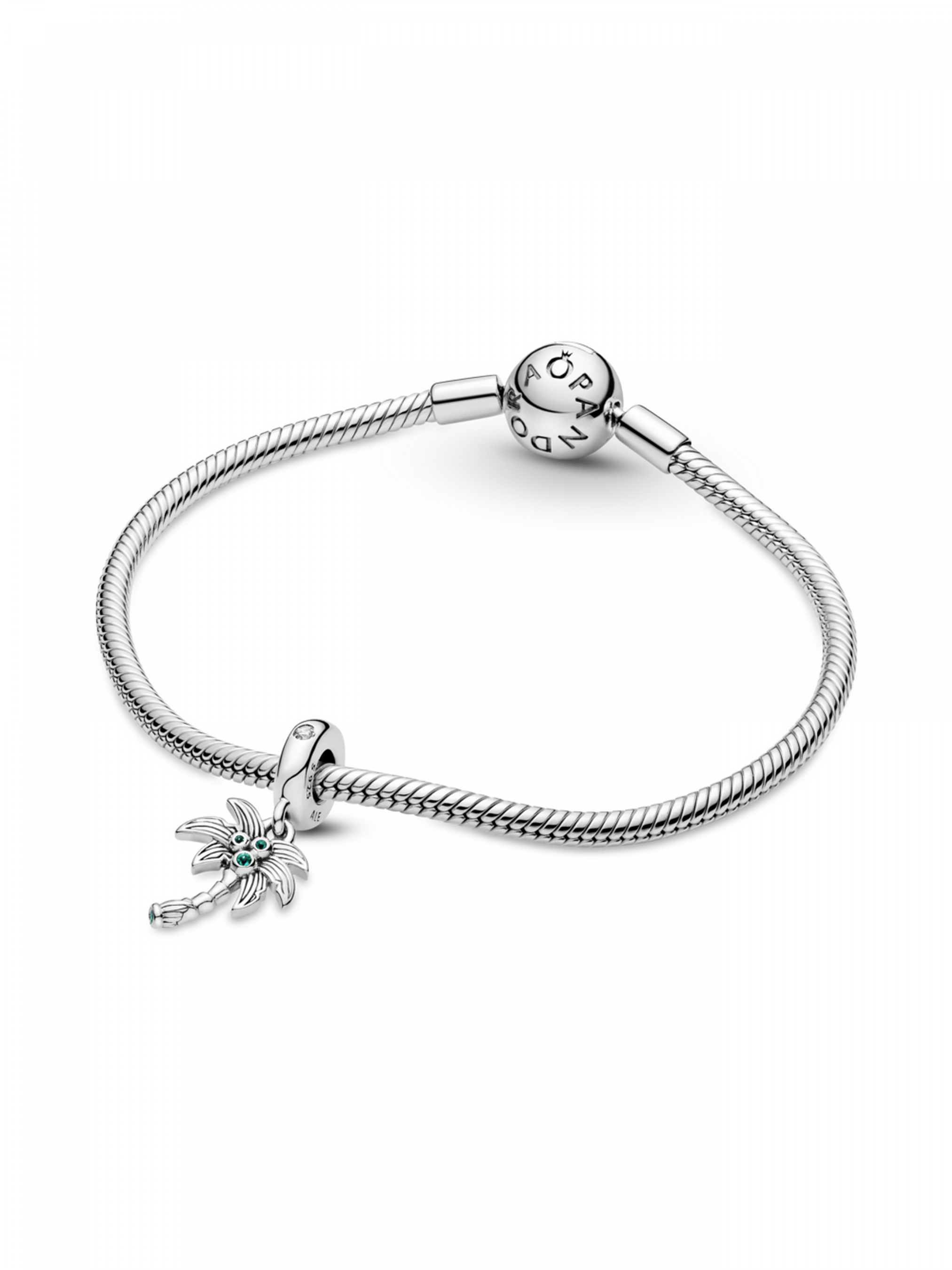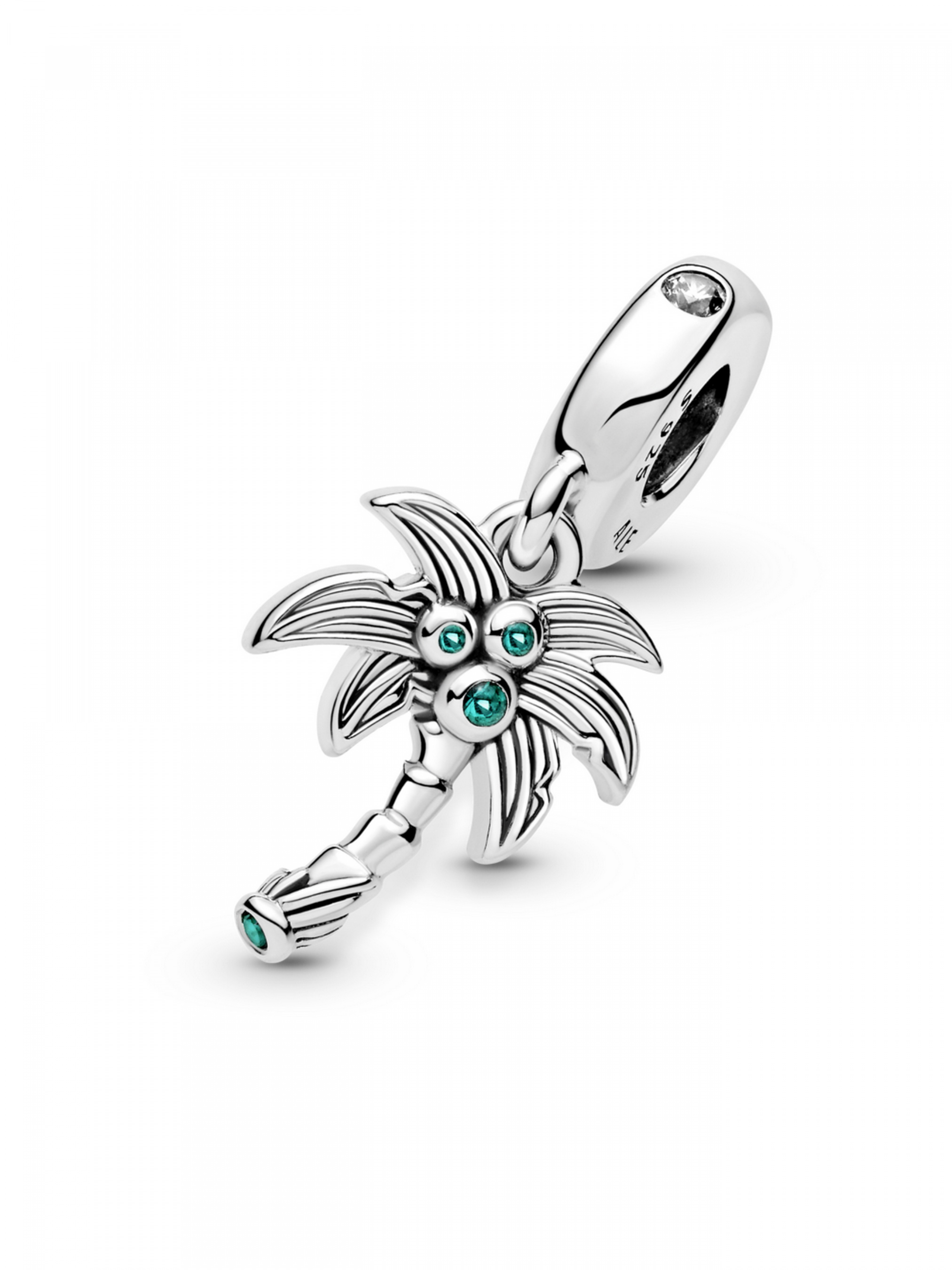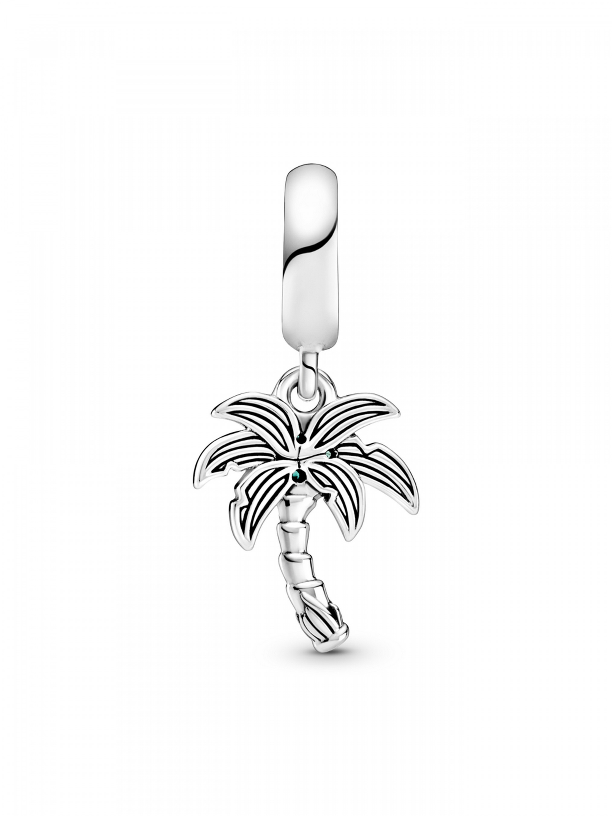 Пригадайте тепло літніх днів і закарбуйте найприємніші миті пляжної відпустки за допомогою намистини з підвіскою "Пальма та кокоси". Ця срібна прикраса зображує пальму, окутану прохолодним тропічним бризом. У кроні пальми розмістилися стиглі кокоси, що втілені за допомогою кристалів зеленого кольору. Зелений кристал також розміщено на основі пальми. Дужку інкрустовано блискучими прозорими камінцями кубічного оксиду цирконію. Ця намистина з пальмою нагадуватиме вам про минулі подорожі до тропіків, а також надихатиме на пригоди в майбутньому.