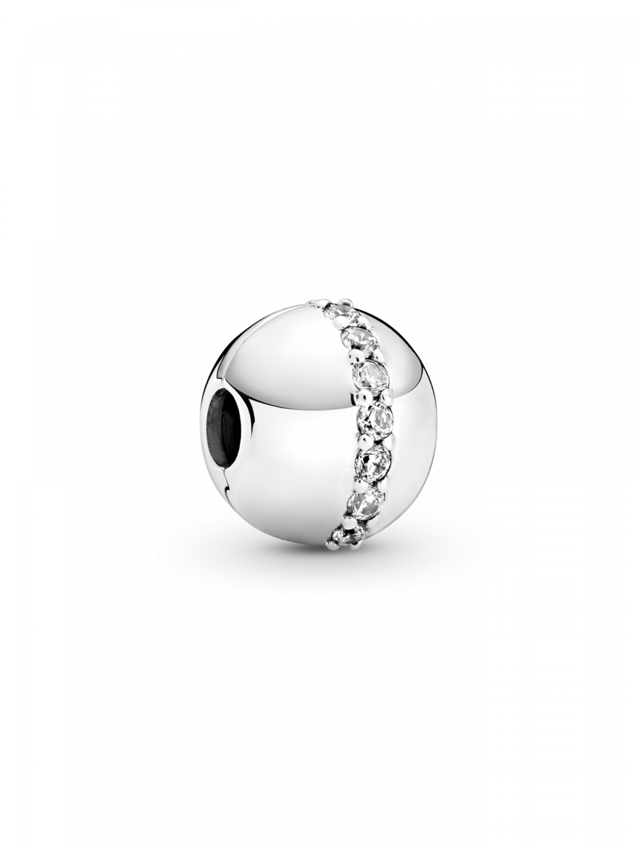 Створіть стильний образ разом із намистиною-кліпсою "Блискуча лінія". Цю довершену вручну срібну прикрасу виконано у формі відполірованої до блиску кулі, що інкрустована суцільним рядочком мерехтливих прозорих камінців. Для яскравого образу закріпіть цю прикрасу на вашому улюбленому браслеті Pandora Moments, доповнивши її іншими блискучими намистинами зі срібла 925-ї проби. Контрастний образ допоможе створити поєднання прикраси з намистинами, що виконані з металів різних кольорів. Ця намистина-кліпса містить силіконову основу, що підходить для кріплення на ланцюжках (на відміну від інших намистин-кліпс із силіконовою основою, що не підходять для кріплення на ланцюжках). Намистину можна закріпити у будь-якому місці на браслеті.