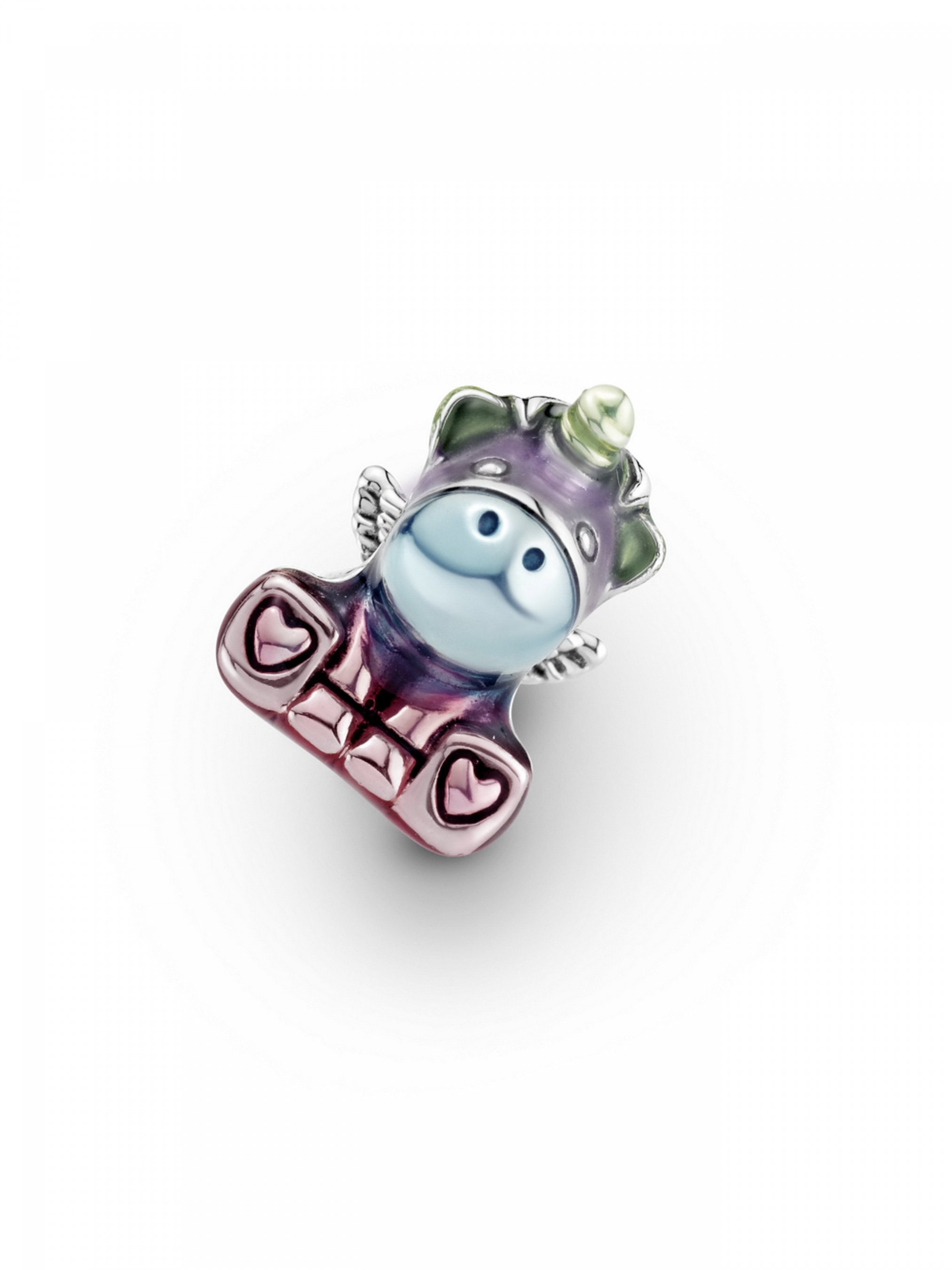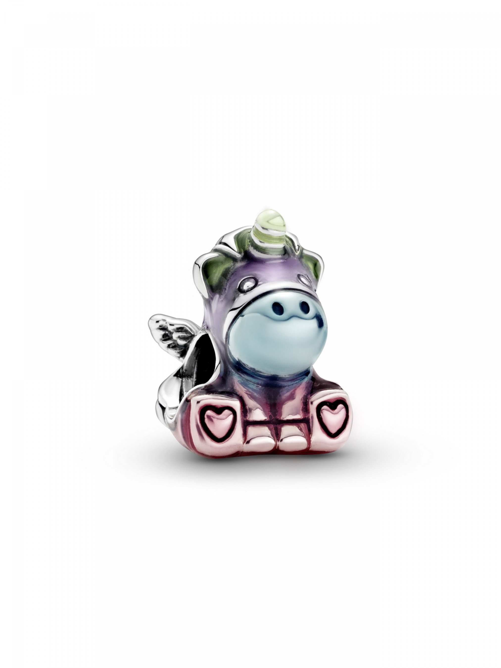 Продемонструйте світові кольори, що мають для вас особливе значення, одягнувши намистину "Веселковий єдиноріг Бруно". Ця барвиста намистина вирізняється веселковим оздобленням, втіленим у життя за допомогою нанесеної вручну прозорої емалі рожевого, блакитного, лавандового та зеленого відтінків. Ступні єдинорога прикрашено сердечками, а ріг, гриву, крила та хвіст — відполіровано до блиску. Яскраве перевтілення друга Pandora, єдинорога Бруно, — це вшанування різноманіття, інклюзивності, рівності та гордості за свою індивідуальність.