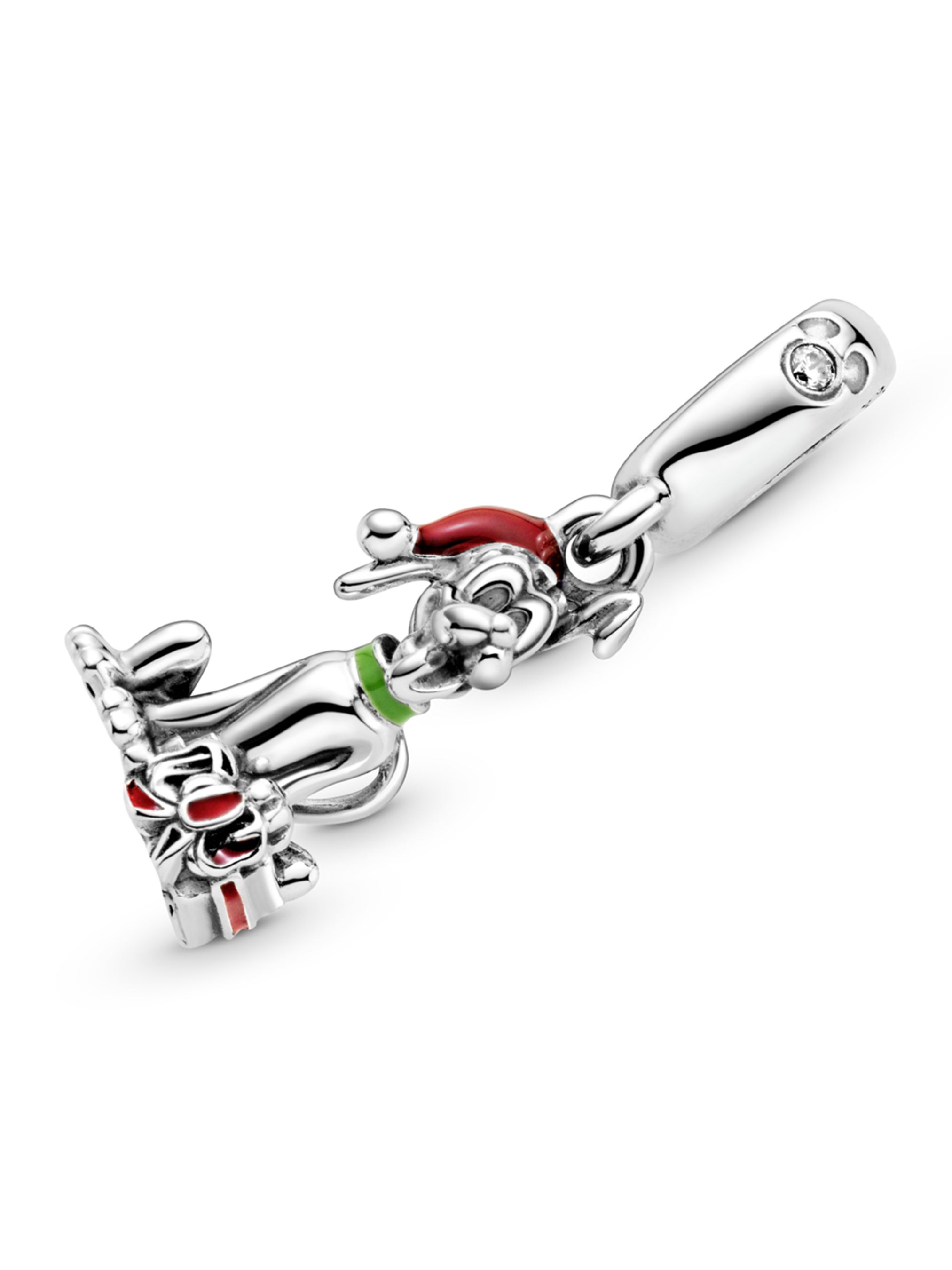 Пориньте у святковий настрій разом із намистиною "Плуто з новорічним подарунком" з колекції Disney. Ця довершена вручну срібна намистина зображує Плуто з мультфільмів Disney в ошийнику, вручну намальованому емаллю зеленого кольору, та Різдвяному капелюсі, вручну намальованому емаллю червоного кольору. Перед Плуто розмістився новорічний подарунок із бантом. Дужку намистини оздоблено силуетом героя Disney, Міккі Мауса, у центрі якого встановлено блискучий камінець. Поєднайте прикрасу з іншими намистинами з колекції Disney x Pandora та помістіть ваших улюблених героїв на святковий браслет.