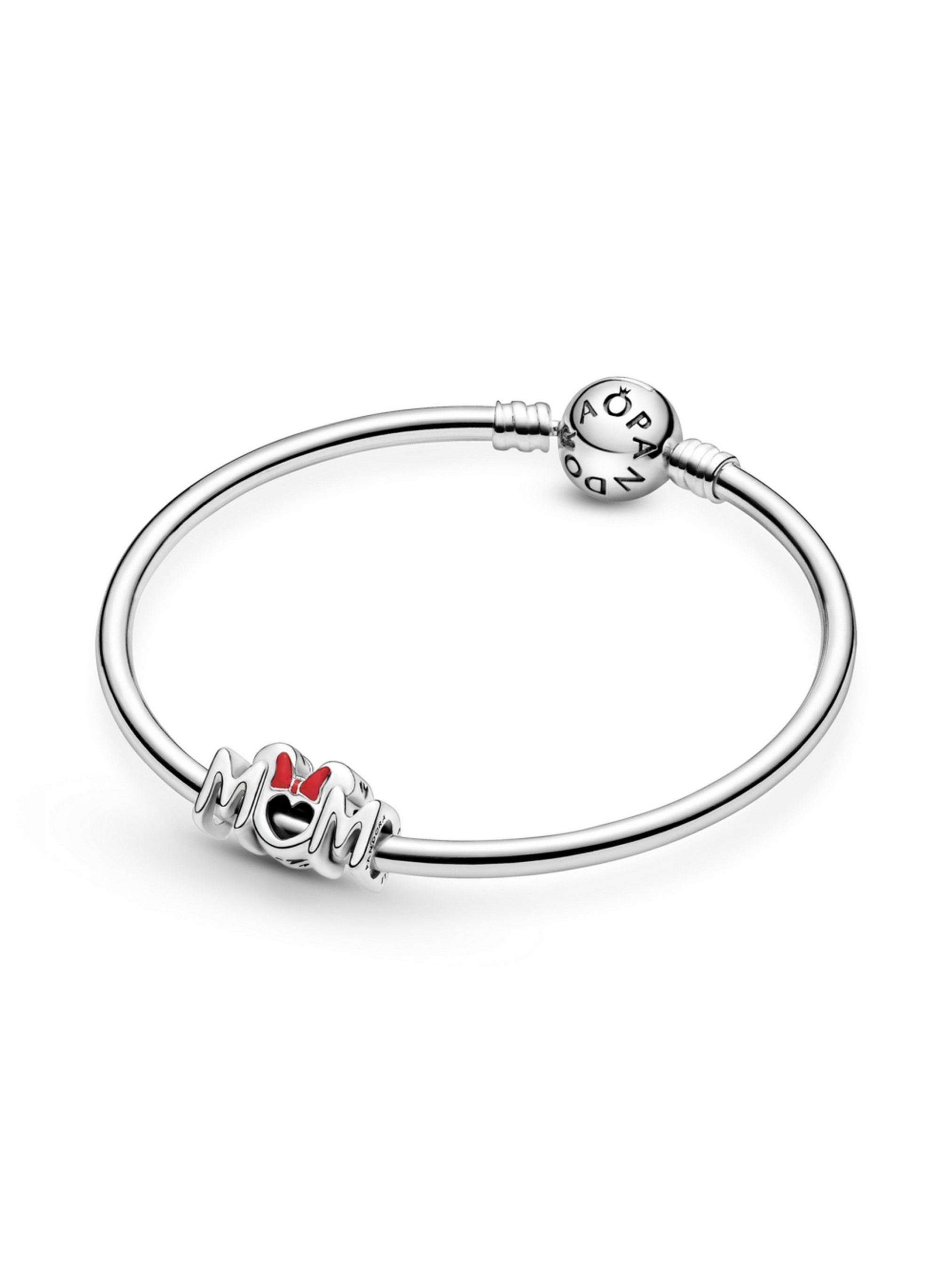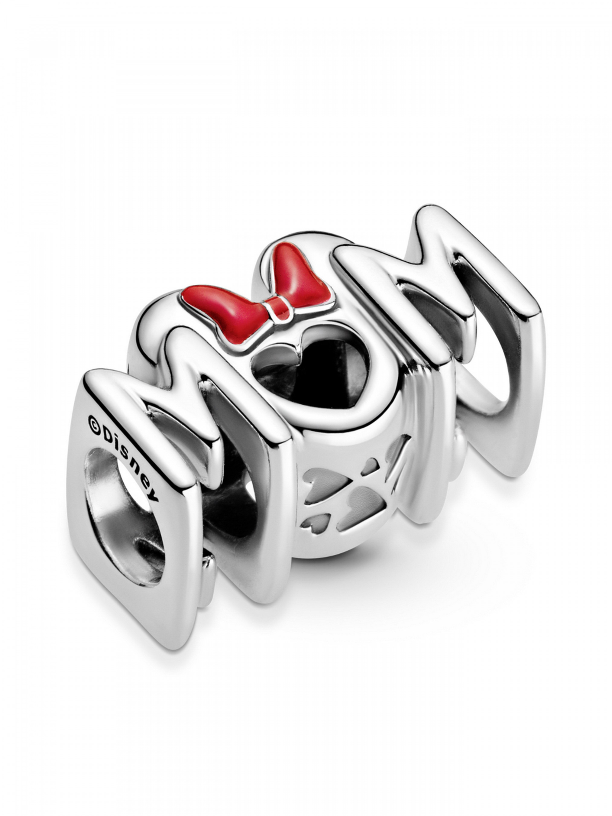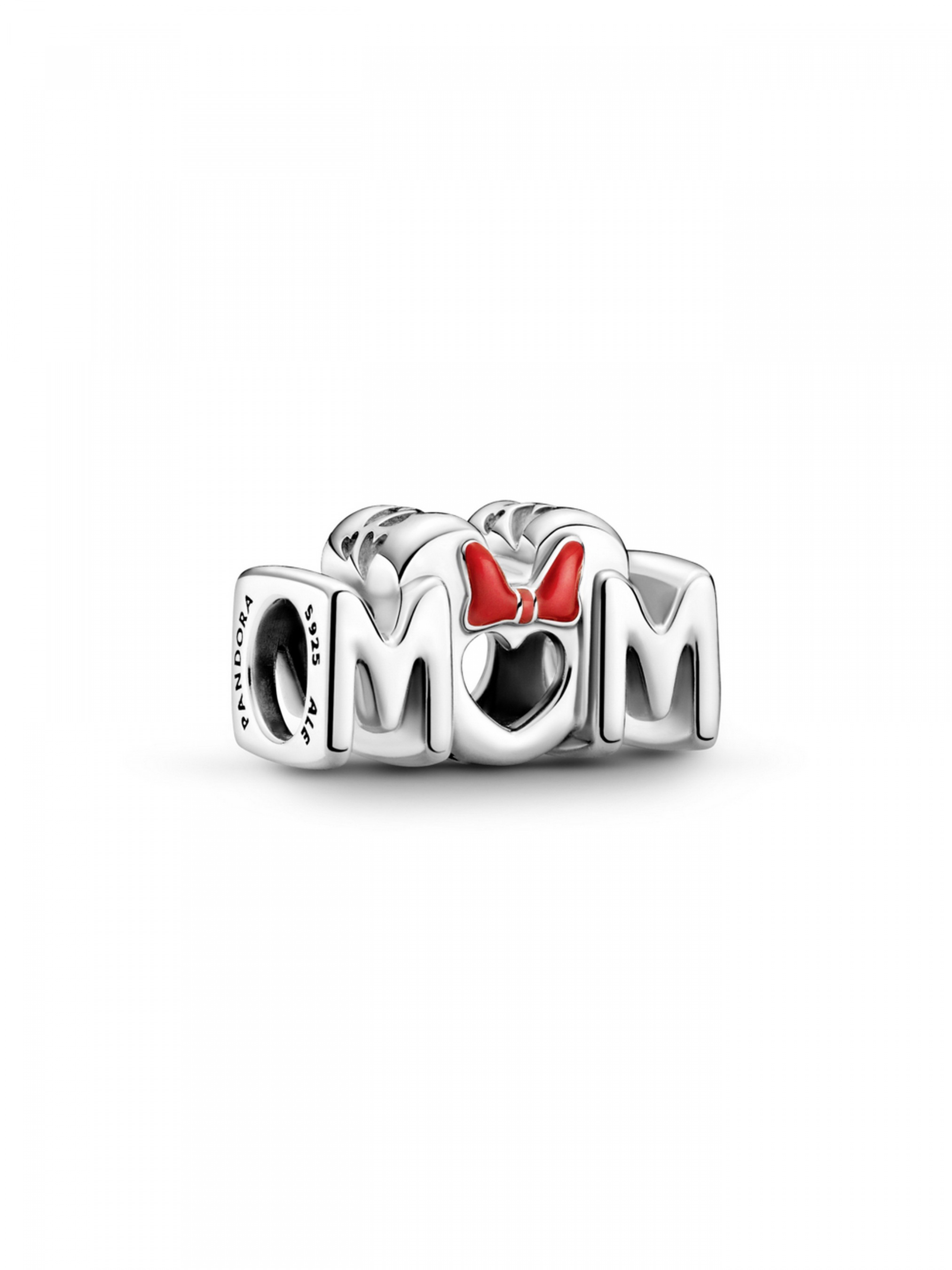 Намистина "Бант Мінні Маус" з колекції Disney додасть казкової магії добірці прикрас вашої матусі. Цю довершену вручну срібну прикрасу виконано у формі симетричного напису "Mum" ("Матуся"). Над літерою "U" височіють відполіровані до блиску вушка Мінні Маус із бантом, що вручну розфарбований емаллю червоного кольору. На обох боках намистини міститься логотип Disney і Pandora. Ця стильна прикраса неодмінно потішить матусю, що полюбляє історії Disney. З огляду на довжину цієї намистини, вона не рухається на кулонах Pandora O малого та середнього розмірів і кулоні-серці O.