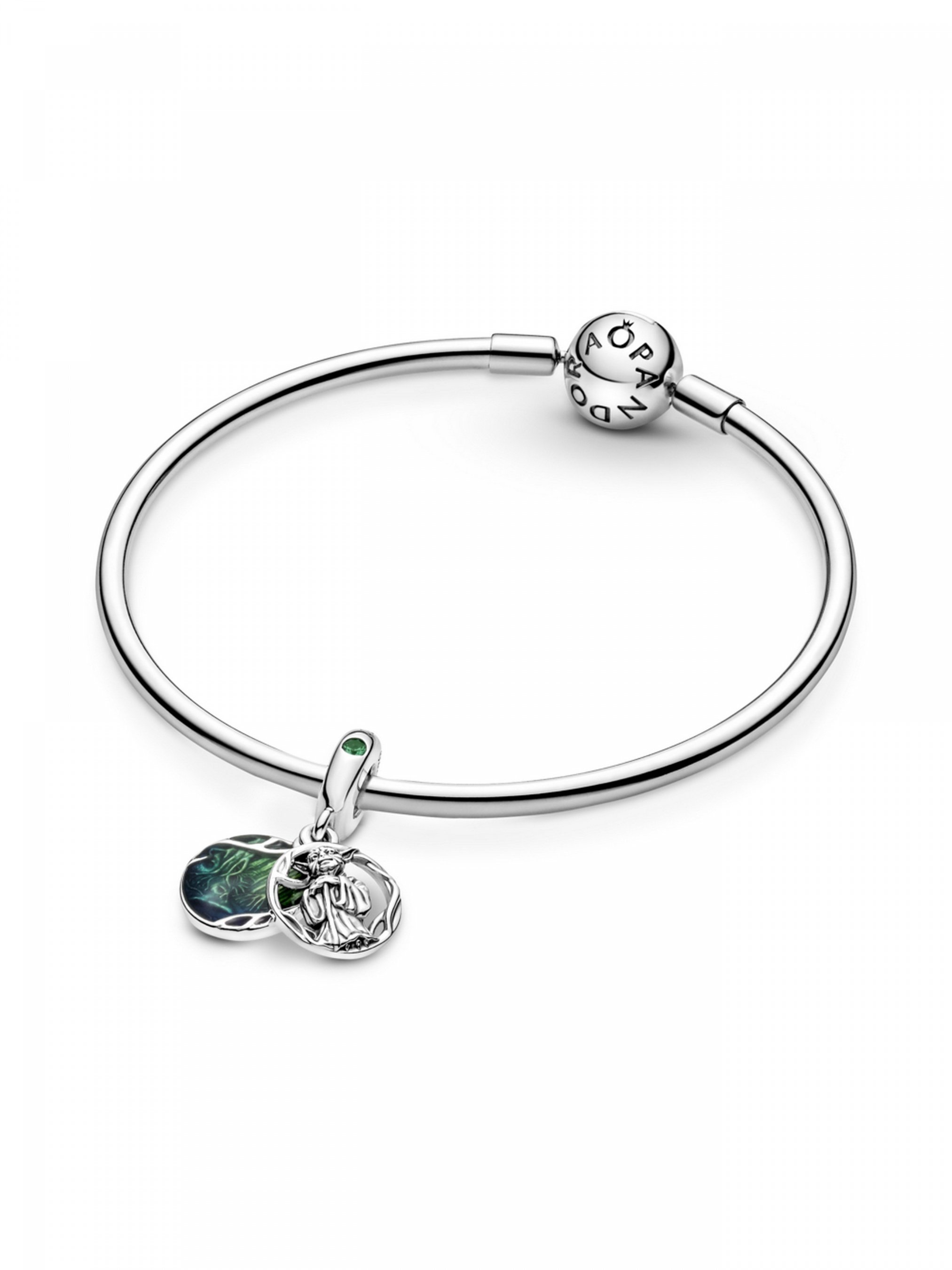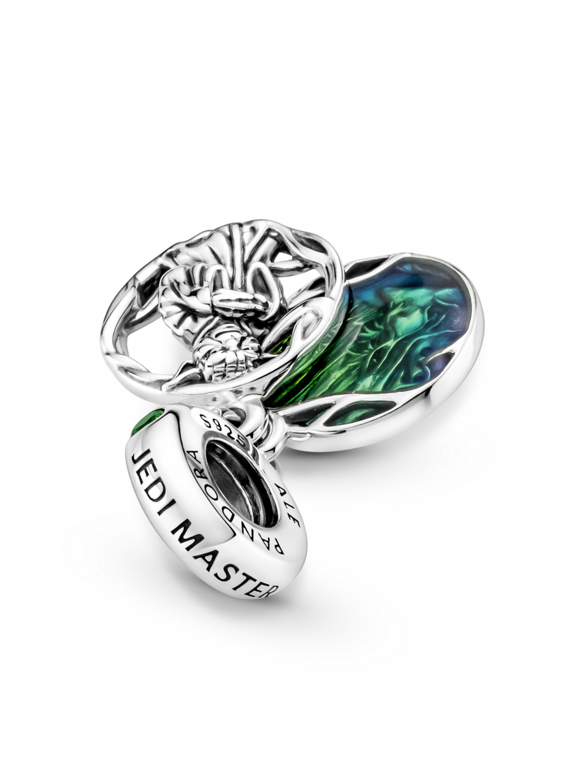 Намистина з підвісками "Йода" з колекції Star Wars™ — прикраса для справжніх фанатів. Цю довершену вручну срібну прикрасу доповнено двома підвісками: на ажурній підвісці зображено персонажа Yoda™ з палкою, оповитою плющем, а підвіску-диск оздоблено у лісовому стилі та вручну розфарбовано емаллю зеленого та синього кольорів. На зворотному боці підвіски-диска міститься вигравійований напис "Do. Or do not. There is no try" ("Роби. Або не роби. Не варто намагатися."). Дужка прикраси доповнена вигравійованим написом "Jedi master" ("Джедай-мастер").