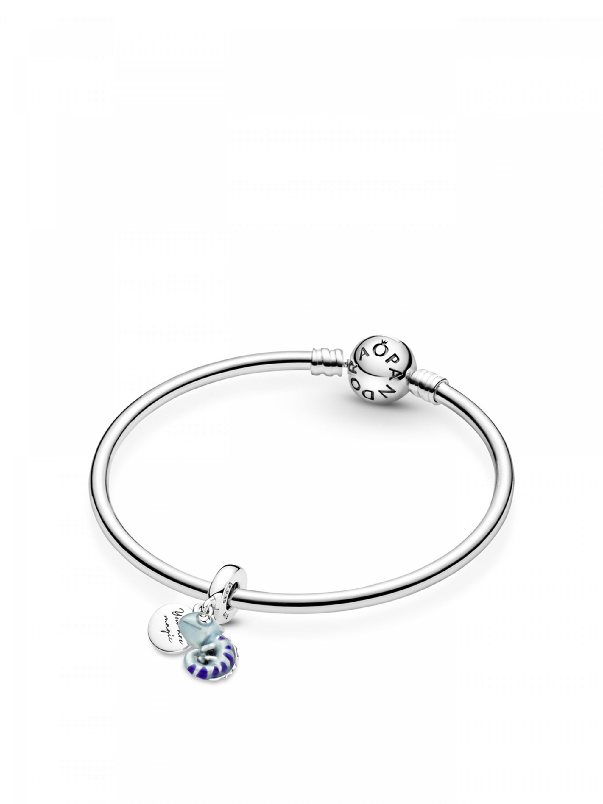 Хамелеон — це символ адаптивності до змін. Наша намистина із хамелеоном нагадуватиме вам про різнобарвність життя. Ця срібна намистина з підвіскою вкрита термохромною емаллю, що здатна змінювати колір в залежності від температури. Тіло хамелеона може змінювати колір від світло-бірюзового до темно-синього, а його смужки — від темно-фіолетового до рожевого. На дужці прикраси закріплено підвіску-жетон зі срібла 925-ї проби, що містить вигравійований напис “You are magic” (“Ти — суцільна магія”) як нагадування про вашого внутрішнього хамелеона.