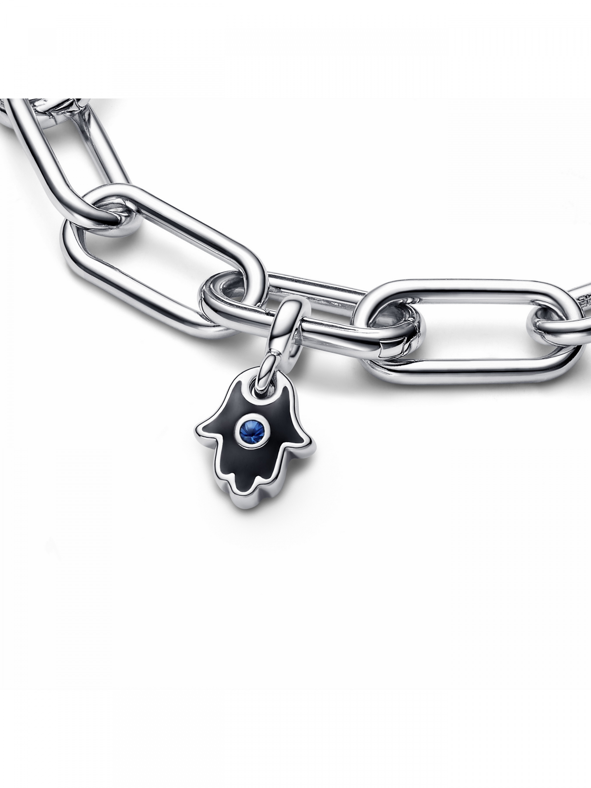 Міні-підвіску "Хамса" Pandora ME виготовлено зі срібла 925-ї проби й оздоблено чорною емаллю. На створення цієї змістовної прикраси нас надихнули традиційні амулети. Ця довершена вручну прикраса інкрустована штучним кристалом у глухій закріпці. Вона стане символом всього доброго і радісного, що є у вашому житті. Прикрасу можна закріпити на ланкових браслетах, намисті, каблучках і сережках-хупах Pandora ME.