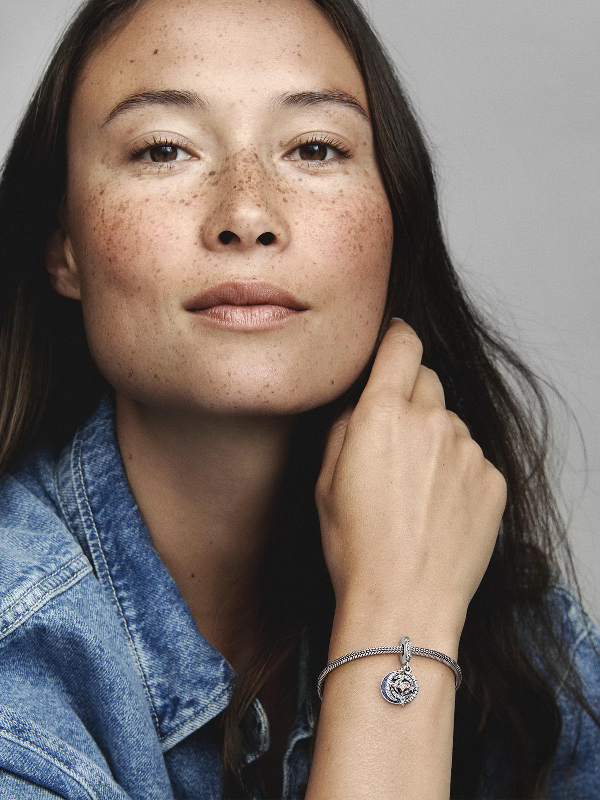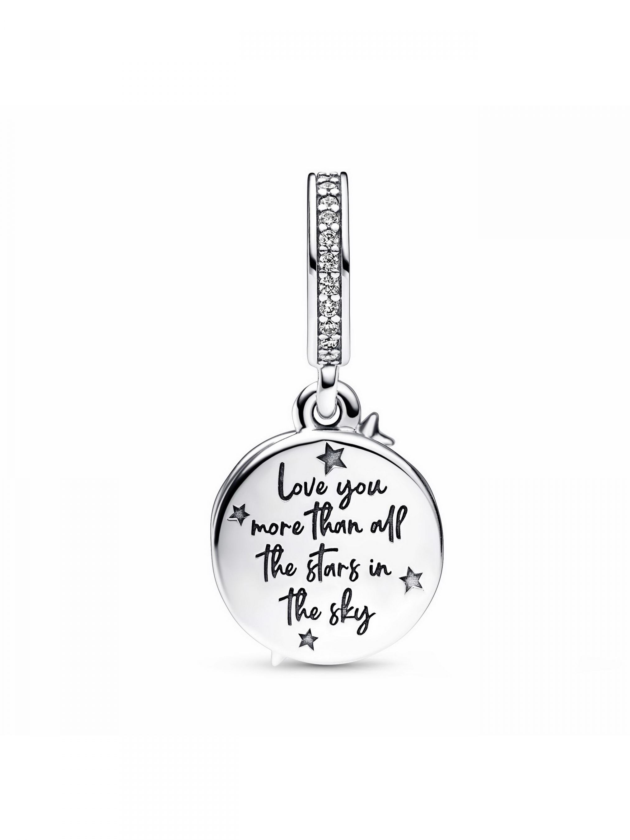 Загадайте найзаповітніше бажання з двоколірною намистиною "Зірка, що падає". Виготовлена зі срібла 925-ї проби та має елемент, який вкритий рожевим золотом 14k, ця прикраса обов’язково стане хітом серед любителів двоколірних намистин. З гравіюванням "Love you more than all the stars in the sky" ("Моє кохання більше, ніж кількість зірок на небі"), ця намистина із зіркою, що падає, вкрита мерехтливою синьою емаллю, що символізує галактику, наповнену мерехтливими зірками. Друга частина підвіски має ажурний візерунок із зірками, що кружляють, де кожна із них залишає свій слід із блискучих камінців кубічного оксиду цирконію і деталей з мікробісеру. Додайте особливого сяяння своїй повсякденності або надихніть зірками когось, кого ви любите.