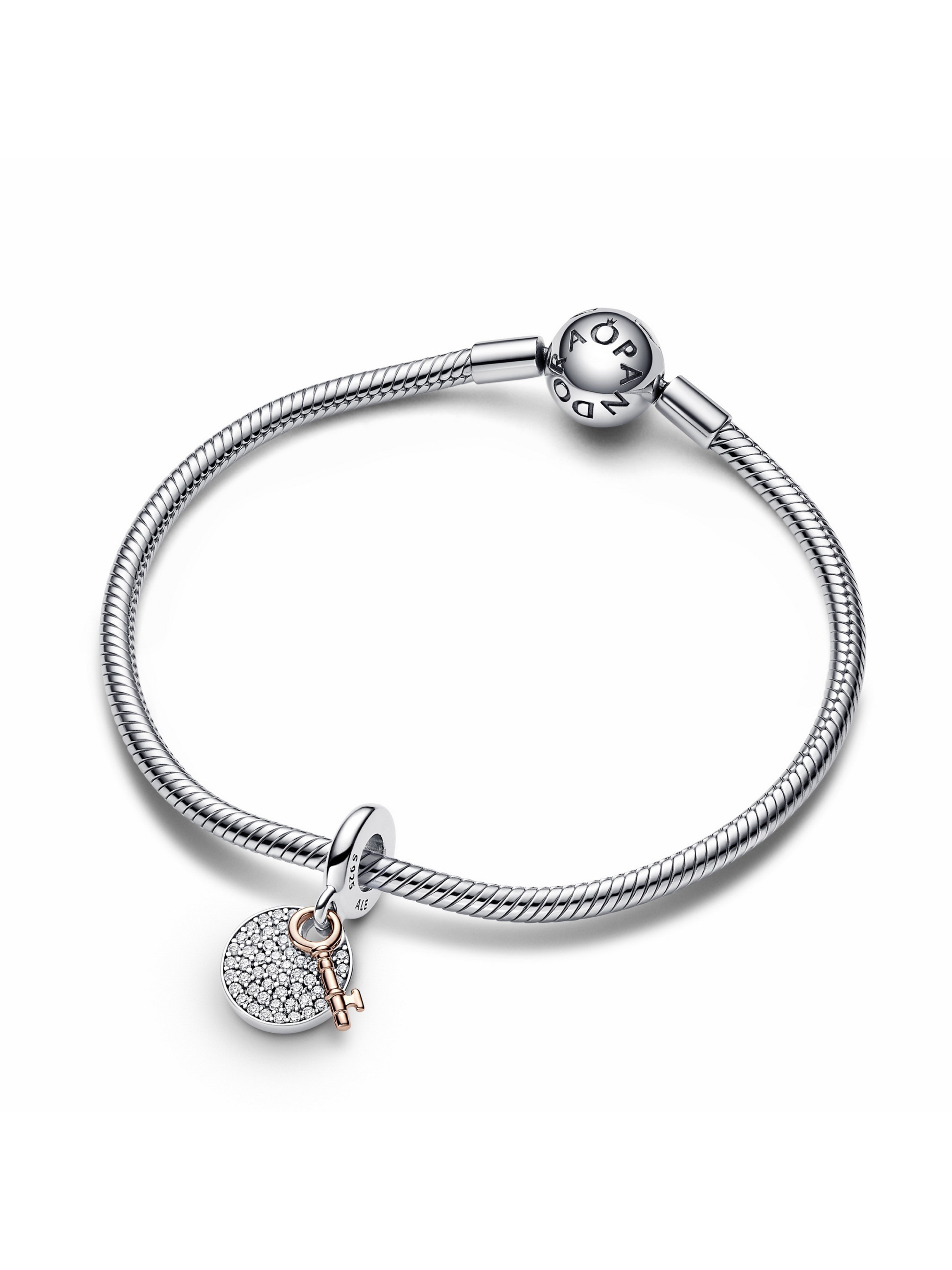 Відкрийте для себе щастя з двоколірною намистиною "Сім’я – це ключ до щастя". Виготовлена зі срібла 925-ї проби та вкрита рожевим золотом 14k, ця підвіска круглої форми доповнена блискучими деталями. На зворотній стороні вигравіювано напис "FAMILY is the key to happiness" ("СІМ'Я — це ключ до щастя"), а з іншого боку підвіска інкрустована блискучими камінцями кубічного оксиду цирконію в закріпці паве, що яскраво відбивають світло. Ключ вкритий рожевим золотом 14k та вільно рухається, символізуючи нерозривний зв'язок сім'ї. Нехай цей зворушливий виріб буде нагадуванням про те, що справжнє щастя — поруч із близькими людьми.