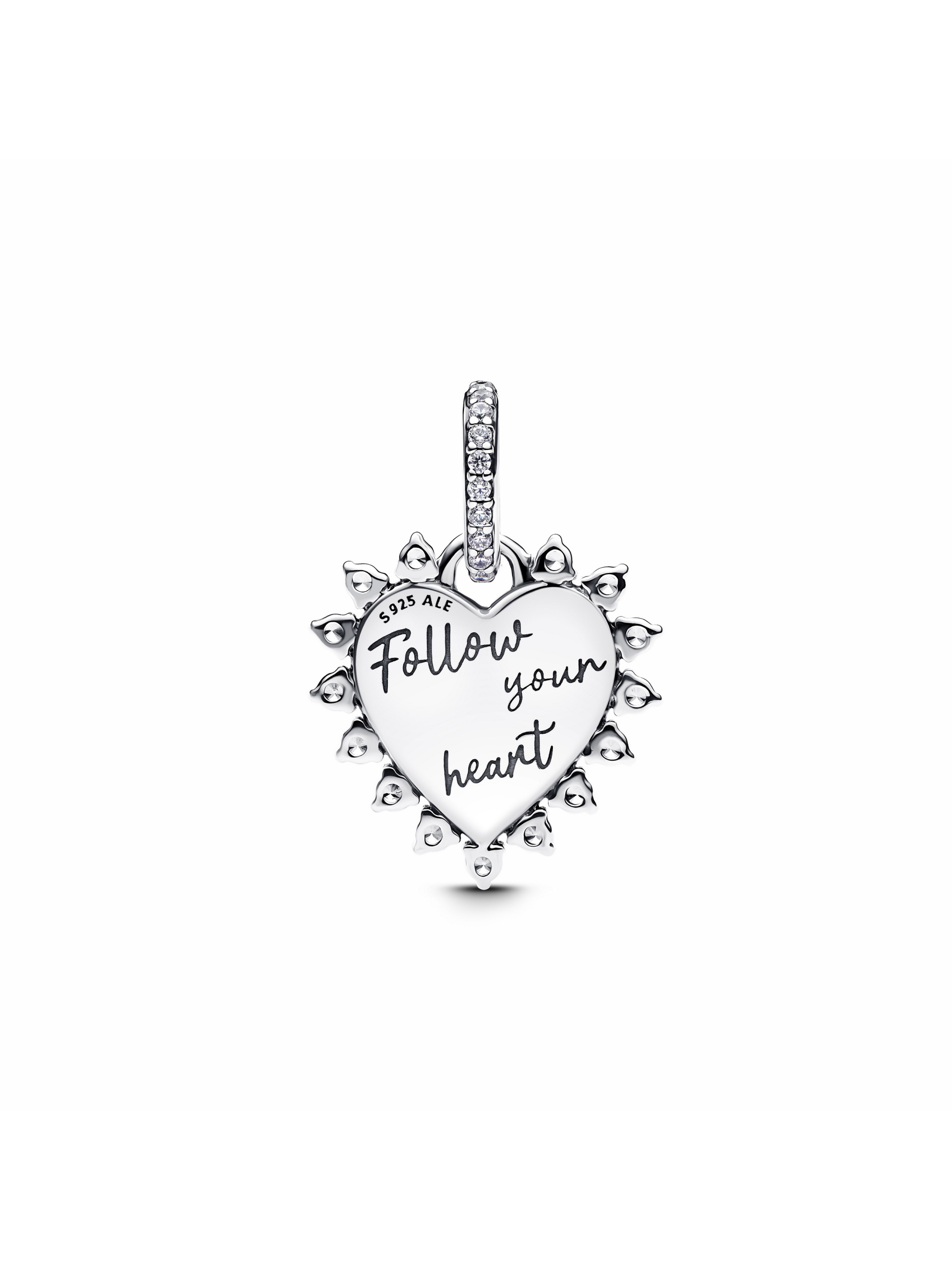 Додайте грайливий акцент до свого стилю з намистиною "Йдіть за покликом серця". Створена зі срібла 925 проби, вона зображує серце з червоного опалу, вирощеного в лабораторії, оточене сяючими кубічними оксидами цирконію. Срібна стріла обертається навколо серця, а на звороті вигравіювано "Follow your heart" ("Йдіть за своїм серцем"). Вставки з каменів на дужці додають вишуканого блиску прикрасі. Носіть цю намистину на браслеті чи намисті як щоденне нагадування слухати своє серце.