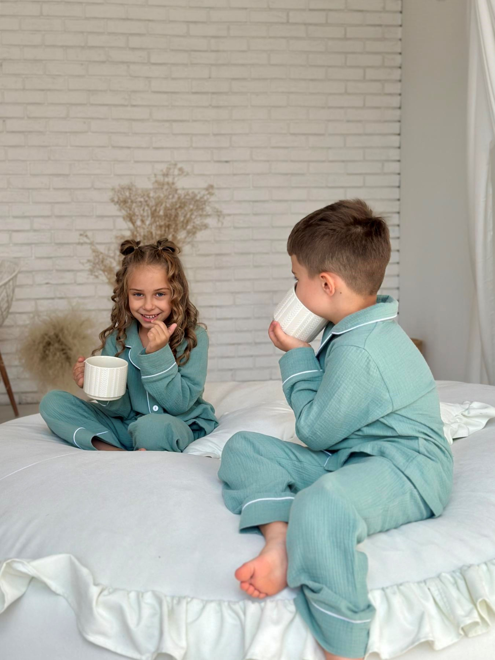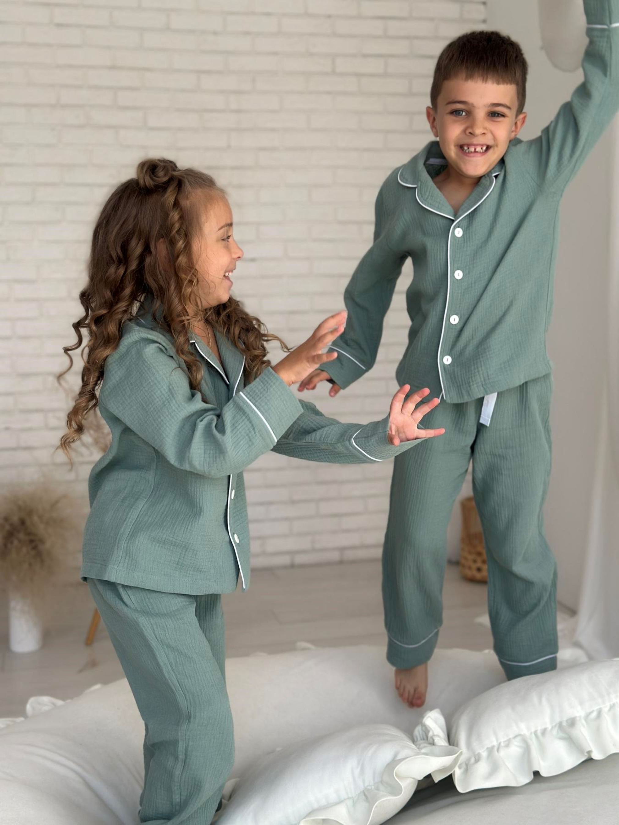 Дитяча муслінова піжама VIVA — комфорт для всієї родини Піжама з серії VIVA — це м’якість і натуральність, які відчуваються в кожному дотику. Створена для дітей ростом від 116 до 146 см (приблизно від 5 до 12 років), ця піжама дарує свободу рухів та затишок під час сну й ігор. Комплект: сорочка з довгим рукавом на ґудзиках + штани з еластичною резинкою та кулискою для регулювання Колір: натуральний евкаліпт — спокійний і універсальний Тканина: двошаровий муслін з 100% бавовни — дихаючий, м’який і гіпоалергенний Особливості моделі: - Еластична резинка та кулиска на штанах для ідеальної посадки - Манжети на штанах із можливістю підвороту — піжама росте разом із дитиною - Декоративний кант додає стильний та охайний вигляд Сорочка на ґудзиках — зручно одягати і знімати Муслін — натуральний і дихаючий матеріал, що піклується про шкіру малюка Піжама VIVA — частина сімейної колекції, у якій є аналогічні моделі для дорослих. Тепер ваша родина може насолоджуватись затишком і гармонією в однакових піжамах, створюючи теплі сімейні традиції.