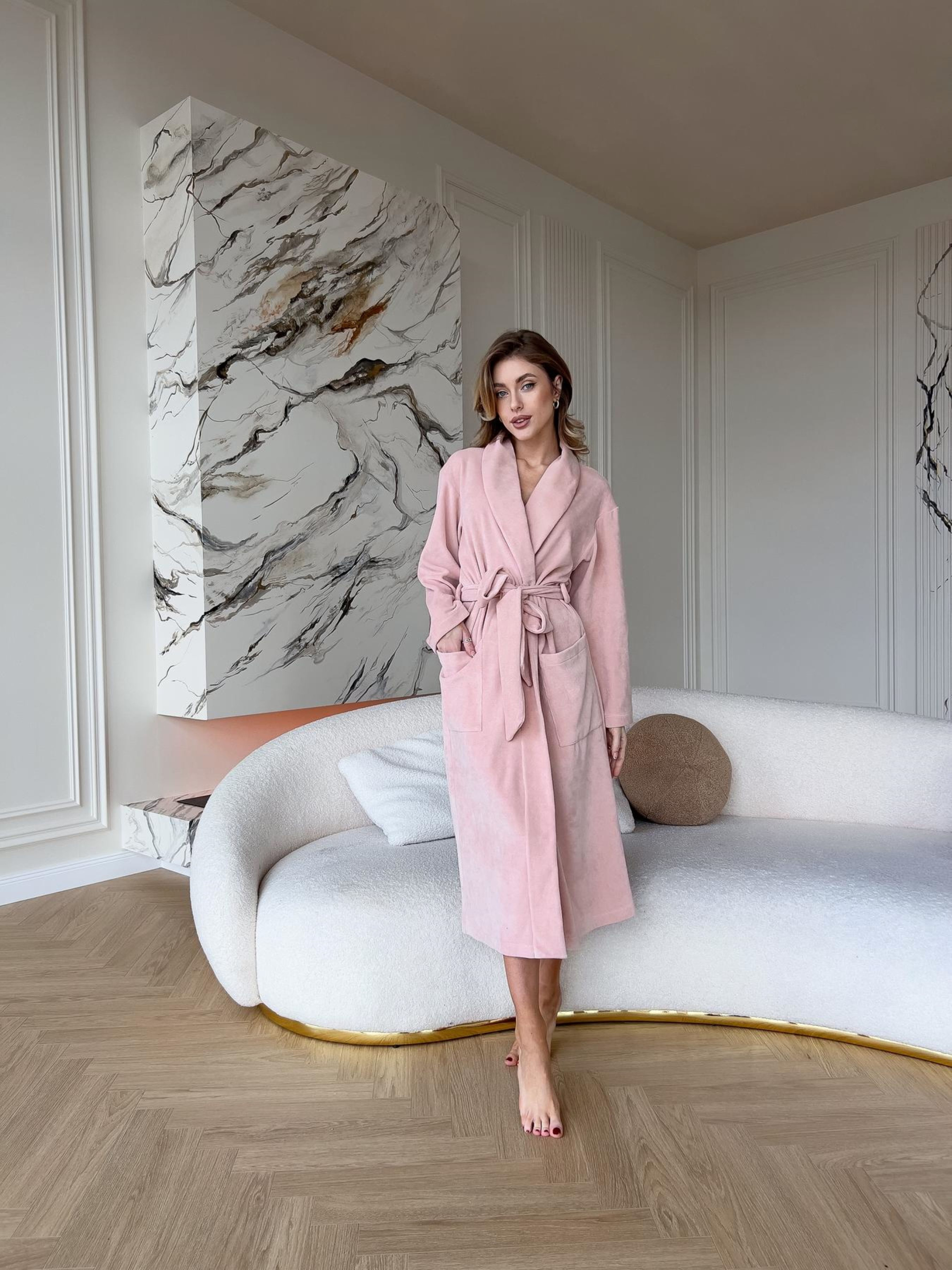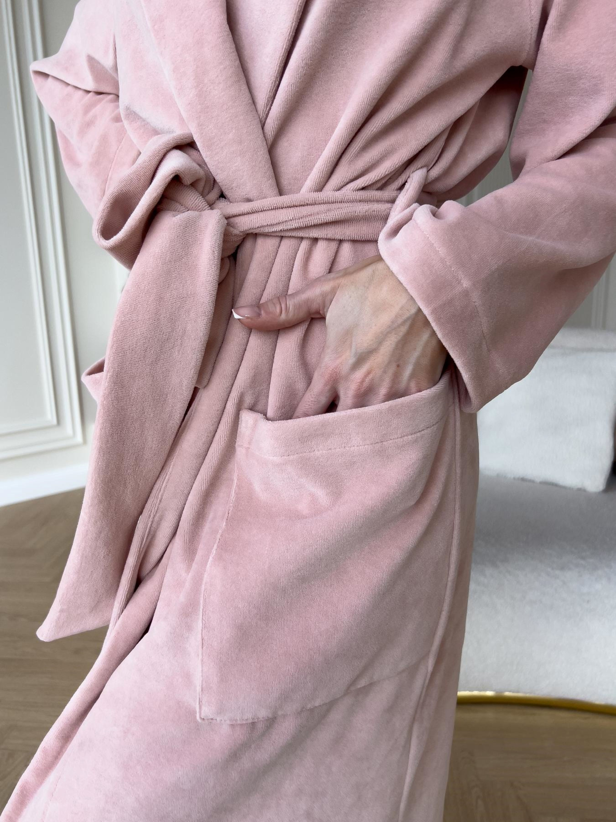 Жіночий халат із колекції In Love ТМ COSY у найпопулярнішому кольорі цього року Peach Fuzz. Виготовлений із трикотажного бавовняного велюру. Модель халата з накладними кишенями. Халат на запах фіксуєтьс поясом. Цей халатик виглядає і зовні, і за відчуттями дуже м'яким та комфортним. Пакування: подарункова коробка з ручками Розміри: S-M, L-XL, 2XL-3XL Колір: відтінок персиковий з ніжними бежевими нотками, нагадує колір стиглого персика. Трикотажний велюр, у складі 95% бавовни та 5% еластан. Виробник тканини: Туреччина. Виріб виготовлено в Україні. Рекомендації щодо догляду: 1. Прати при температурі 30-40 градусів, делікатний режим, мінімальни оберти. При ручному пранні не викручувати руками. 2. Засіб для прання рідкий, для кольорових тканин. 3. Природне сушіння, на рівній поверхні, не розтягувати. Уникати попадання сонячних променів. 4. Не прасувати. Про тканину: Бавовняний велюр - надзвичайно м'яка та приємна на дотик, матова трикотажна тканина. З лицьового боку з короткими ворсинками, з виворітного - гладка. Матеріал добре «дихає», гігієнічний. У складі тканини є еластан, завдяки йому тканина добре тягнеться і ідеально підходить для домашняго одягу.