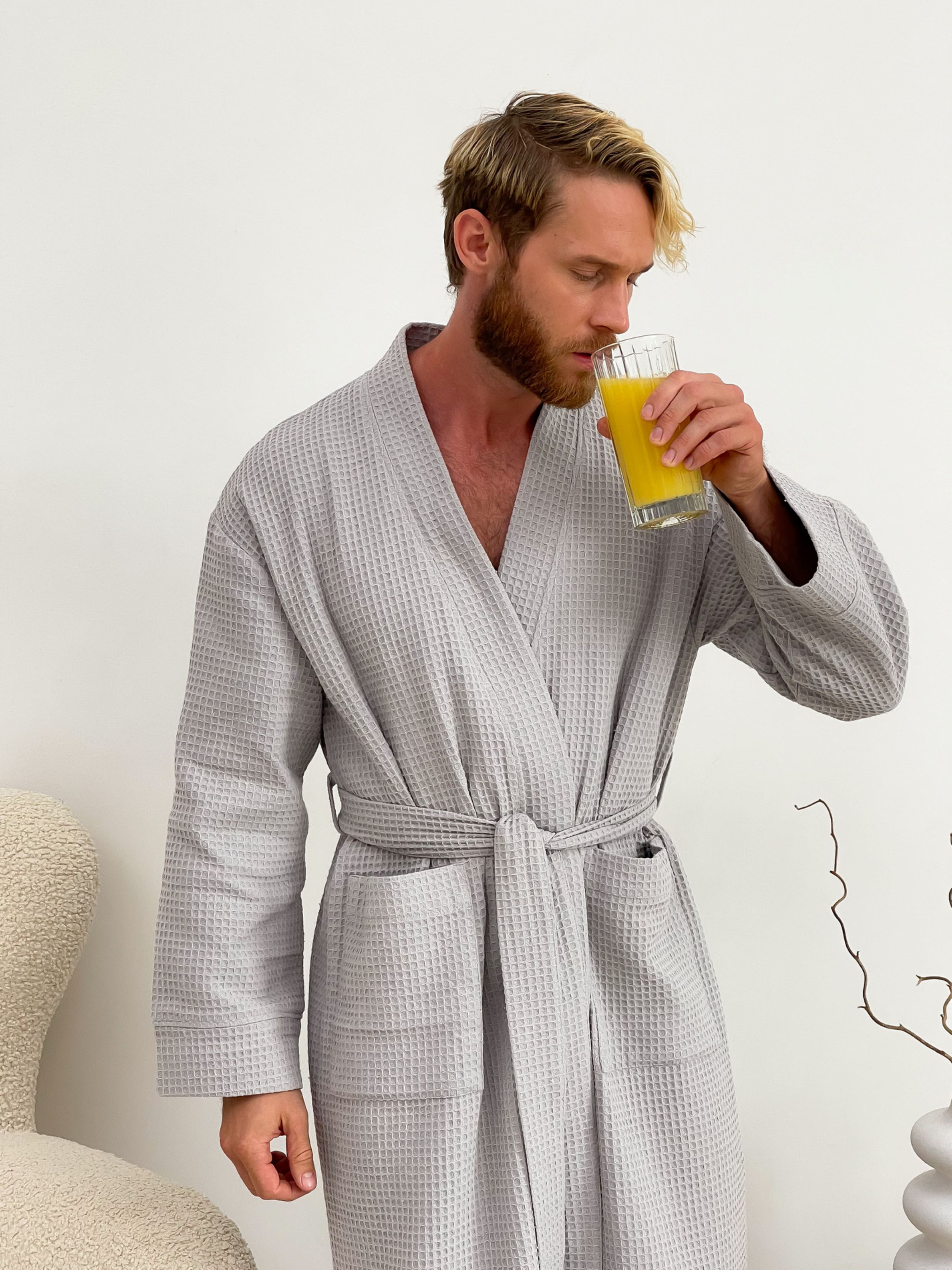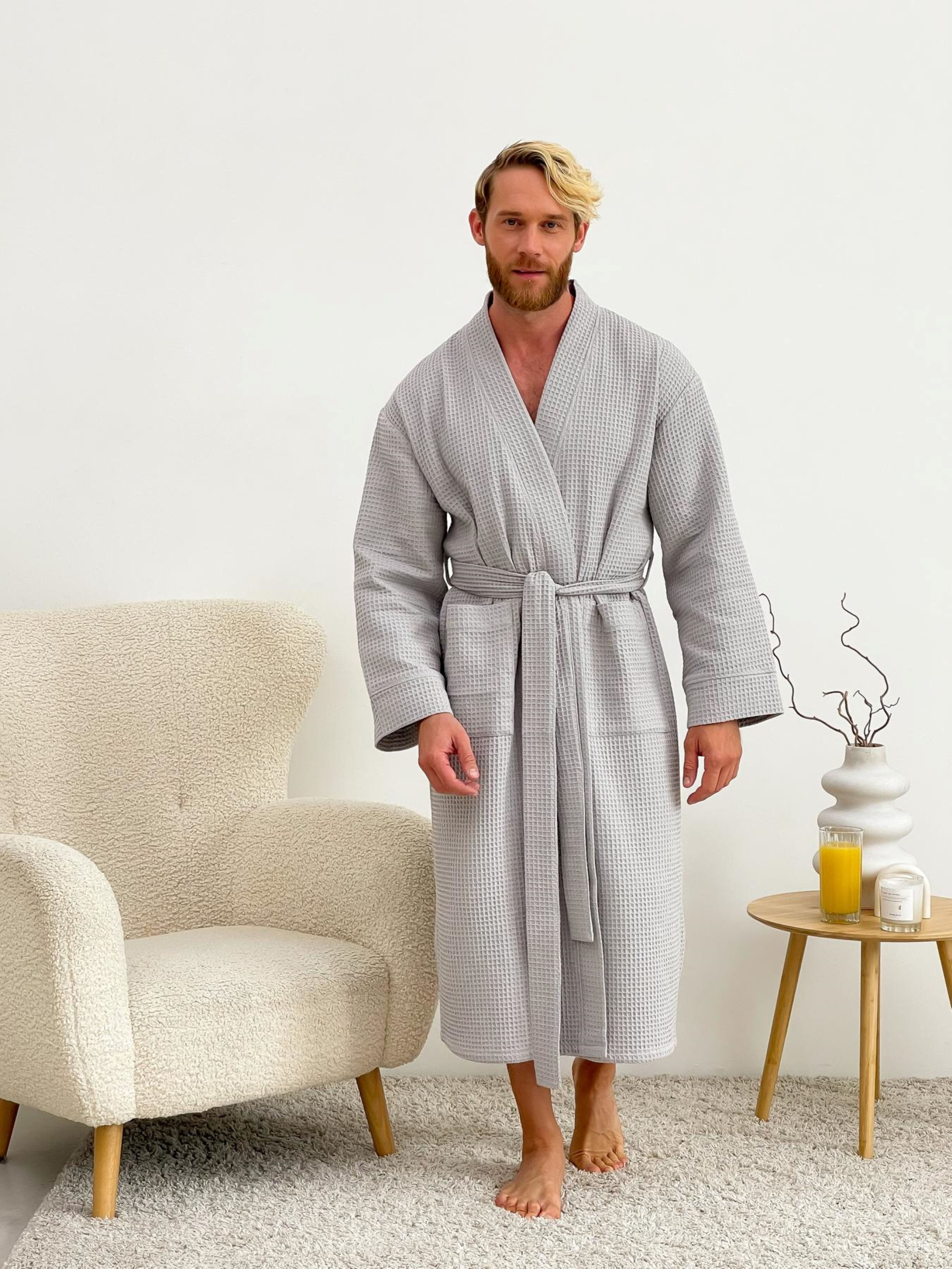 Вафельні халати дуже актуальні взимку. Матеріал дозволяє шкірі "дихати" і не викликає дискомфорту. сірий колір Тканина: 100% бавовна, Туреччина (тканина не декатована, після прання дає усадку 5-6%) довжина халата 125 см Рекомендації щодо догляду: 1. Прати у холодній воді (при температурі не вище 40°С), віджимання тільки на малих обертах 400. Не використовувати відбілювачі. 2. Природне сушіння. Рекомендується трохи розтягнути Виріб під час сушіння. 3. Прасувати при високих температурах до 200°С (режим бавовна) з паром. Після прання вафельні клітини збираються, але після висихання та прасування вони розходяться.