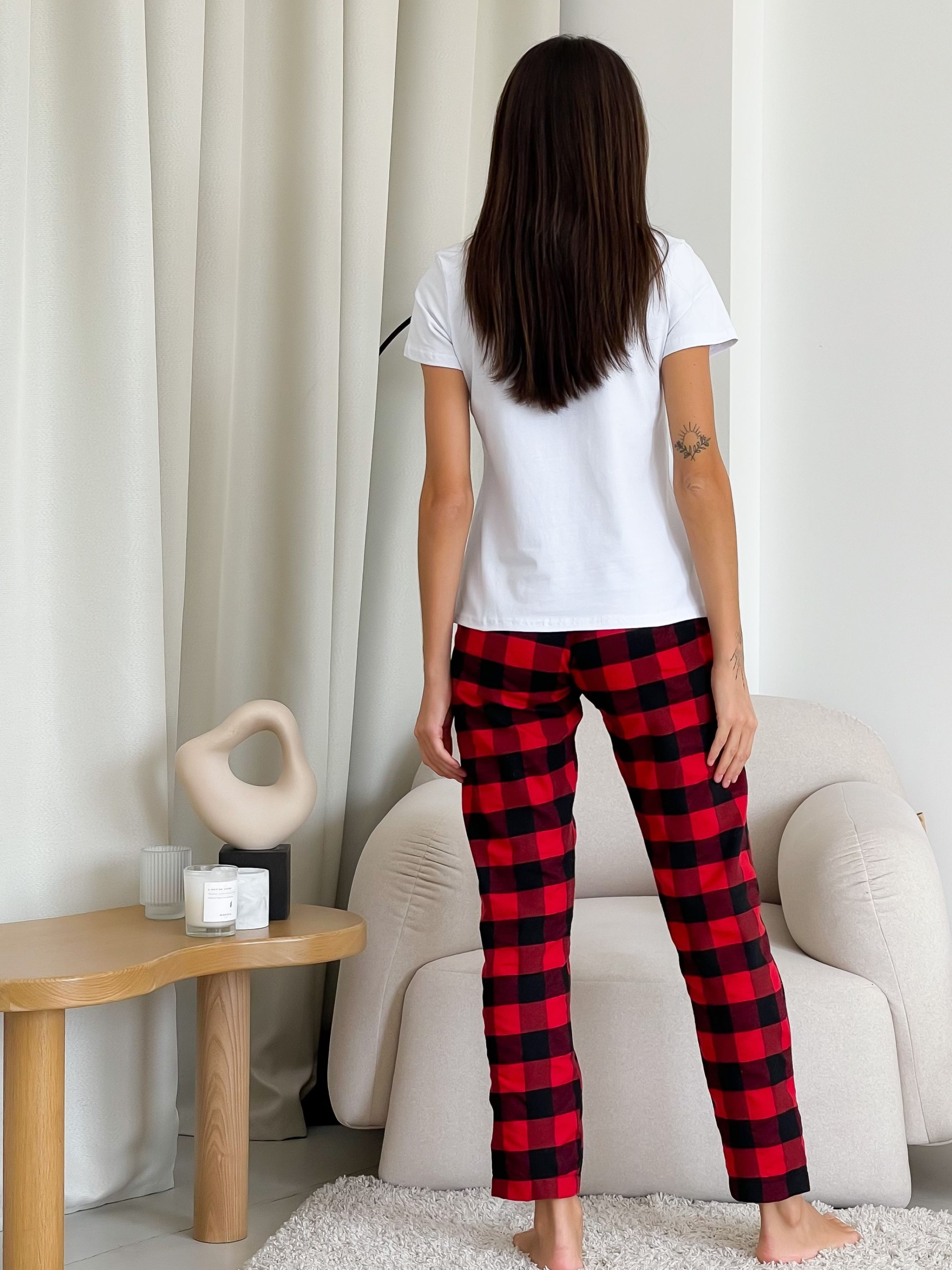 Жіноча піжама тепла 3-ка у клітинку, штани+сорочка+футболка. Комфортний піжамний комплект дозволить максимально швидко поринути у зону комфорту. Штани з кишенями. Пояс на резинці з регульованою куліскою. Піжамний комплект – це не тільки одяг для сну, а й зручний одяг для дому. Колір: клітка червона/чорна Тканина фланель: Бавовна 70%, поліестер 30%, Туреччина Щільність: 150 г/м2 Ефект: легкий начіс, двосторонній Фланель: Особливості тканини: перевагою фланелі є її м'якість та теплові якості; мінусом - пілінгування, згодом можуть з'являтися Піллі (катишки). Рекомендована температура при пранні 30 градусів Футболка - 100% бавовна Кольори: білий, чорний Розміри: S, M, L, ХL