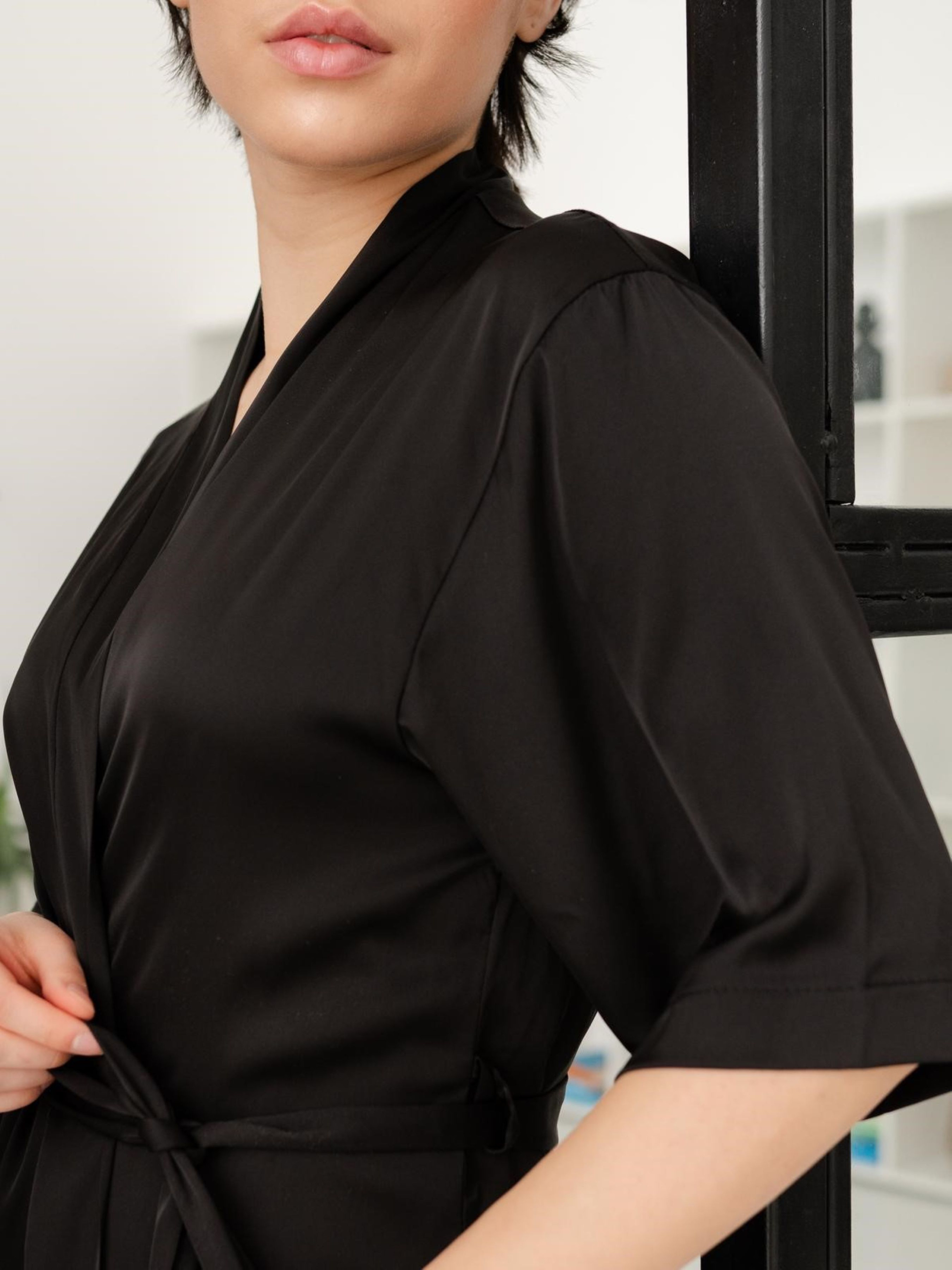 Вишуканий чорний жіночий халат Tango із тканини шовк Армані, з колекції Tango Volcano. Цей халат - втілення стилю та розкіші. Завдяки своєму дизайну на запах і внутрішній зав'язці, цей халат створює відчуття легкості та комфорту. Тканина шовк Армані дуже ніжна та плавно спадає, як струмінь, підкреслюючи вашу красу та грацію. Кожен дотик цієї тканини - справжня насолода для вашого тіла, вона ласкаво обгортає вас, надаючи відчуття найвищого комфорту. У цьому халаті ви будете виглядати вишукано та звабливо. Тканина: шовк Армані колір: чорний