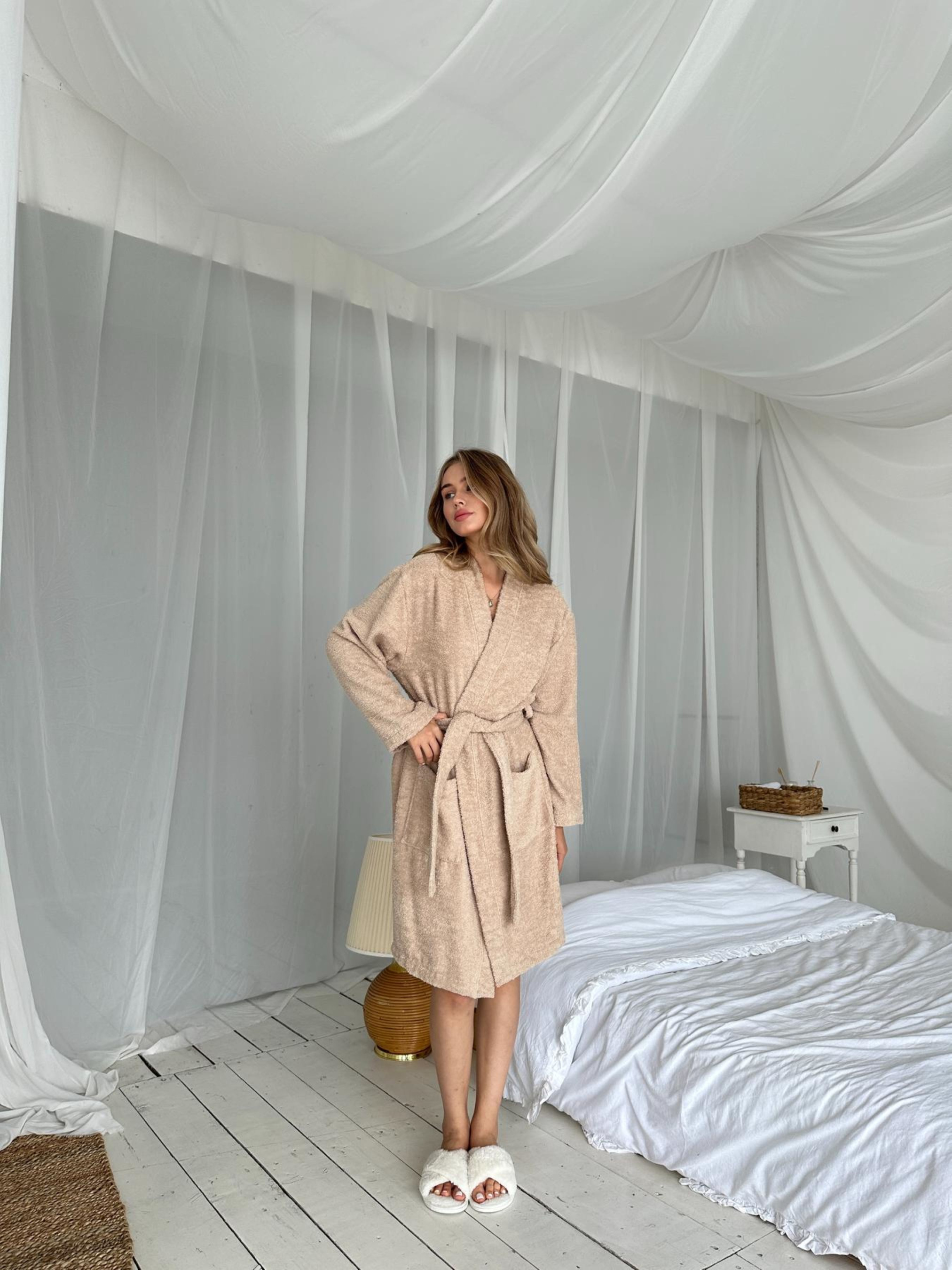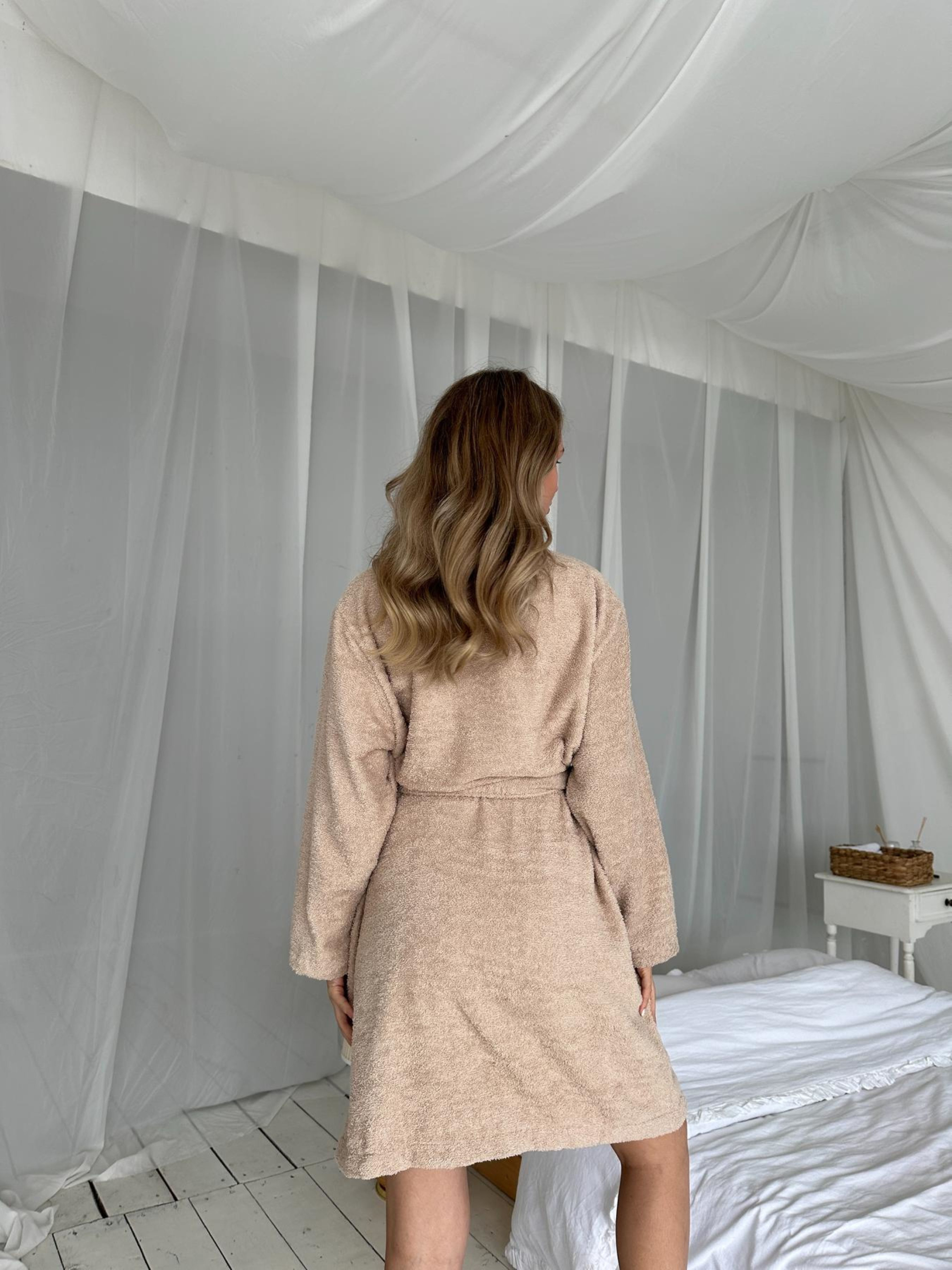 Жіночий махровий халат Шарм COSY бежевий У світі затишку немає місця компромісам, і наш махровий халат "Шарм" — саме те, що підкреслить твоє бажання піклуватися про себе. М'який, як хмаринка, халат виготовлений із натуральної махрової тканини, яка ніжно обіймає тіло, даруючи тепло та комфорт. Довгий рукав і довжина до коліна створюють ідеальний баланс між елегантністю і практичністю, а ніжний бежевий колір додає образу спокою та гармонії. Цей халат — твоя ідеальна втеча від буденності, коли хочеться відчути себе королевою домашнього затишку. Завершений стриманими деталями, "Шарм" створений для того, щоб ти насолоджувалася кожною миттю вдома — чи то за чашкою ранкової кави, чи після вечірнього релаксу. Дозволь собі маленький ритуал насолоди щодня! Розміри: S,M, L, XL Колір: беж Тканина: 100% бавовна щільність-380г/м2 Виробник тканини: Туреччина. Виріб виготовлено в Україні. Рекомендації щодо догляду: Прати при температурі не вище 40 градусів, оберти віджиму – 500-600 Використовувати рідкі засоби для прання. Неприпустиме використання відбілюючих засобів на основі хлору; Прати вироби з махри окремо від виробів із металевими деталями. Після прання струсити виріб, щоб розправити пухнасту махру. Природне сушіння. 5. Не потребує прасування, при необхідності можна використовувати відпарювач