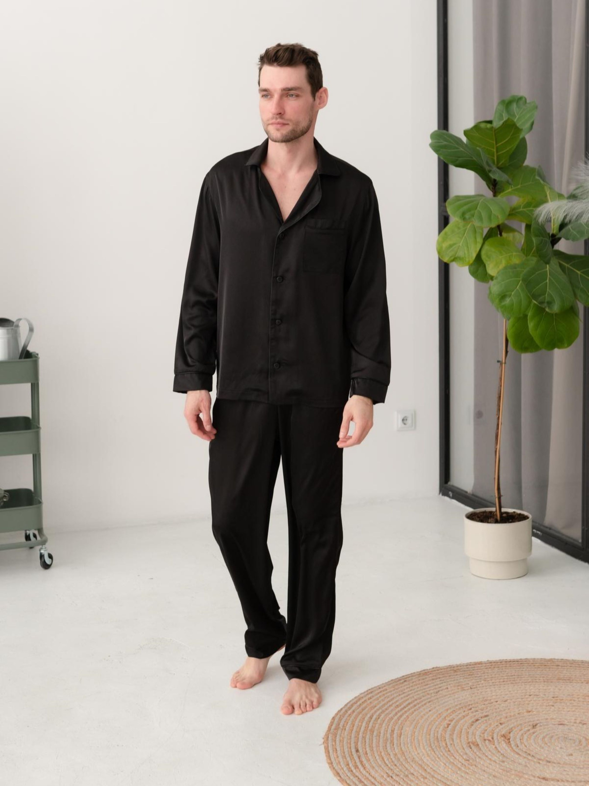 Шовкова піжама – це не просто одяг для сну, це символ розкоші, комфорту та витонченого смаку. Чоловіча піжама з шовку Армані стане ідеальним вибором для тих, хто цінує якість, стиль та комфорт. Шовк Армані – це особливий різновид шовку, створений Джорджіо Армані. Він має унікальні властивості: М'якість: Шовкова піжама неймовірно м'яка і приємна на дотик. Вона дарує відчуття комфорту та затишку. Гладкість: Шовкова нитка має гладку поверхню, що робить піжаму приємною до тіла. Легкість: Шовк Армані – це дуже легка та повітряна тканина. Піжама з такоі тканини не сковує руху і дозволяє тілу дихати. Блиск: Шовкова піжама з шовку Армані має благородний легкий блиск, який підкреслює статус і витончений смак свого власника. Чоловіча шовкова піжама з шовку Армані – це чудовий подарунок для чоловіка, який цінує комфорт, стиль та якість. Вона стане незамінною частиною його гардеробу та подарує йому відчуття розкоші та затишку. Чоловіча піжама: сорочка та штани. Сорочка на гудзиках. Штани з кишенями. Піжама прикрашена кантом. Склад тканини: 97% Поліестр, 3% Еластан Колір: чорний, чорний кант Розміри: M; L; XL; 2XL; Рекомендації щодо догляду за шовком: Прати вручну або в пральній машині при температурі не вище 30°С, делікатний режим. Для прання використовувати рідкі миючі засоби для делікатних тканин. Не застосовуйте агресивних миючих засобів та відбілювачів. Сушити природним шляхом у розправленому вигляді. Сушіння в пральній/сушильній машині заборонено. Викручувати або віджимати вироби з шовку не можна. Прасувати в режимі «шовк» з вивороту.