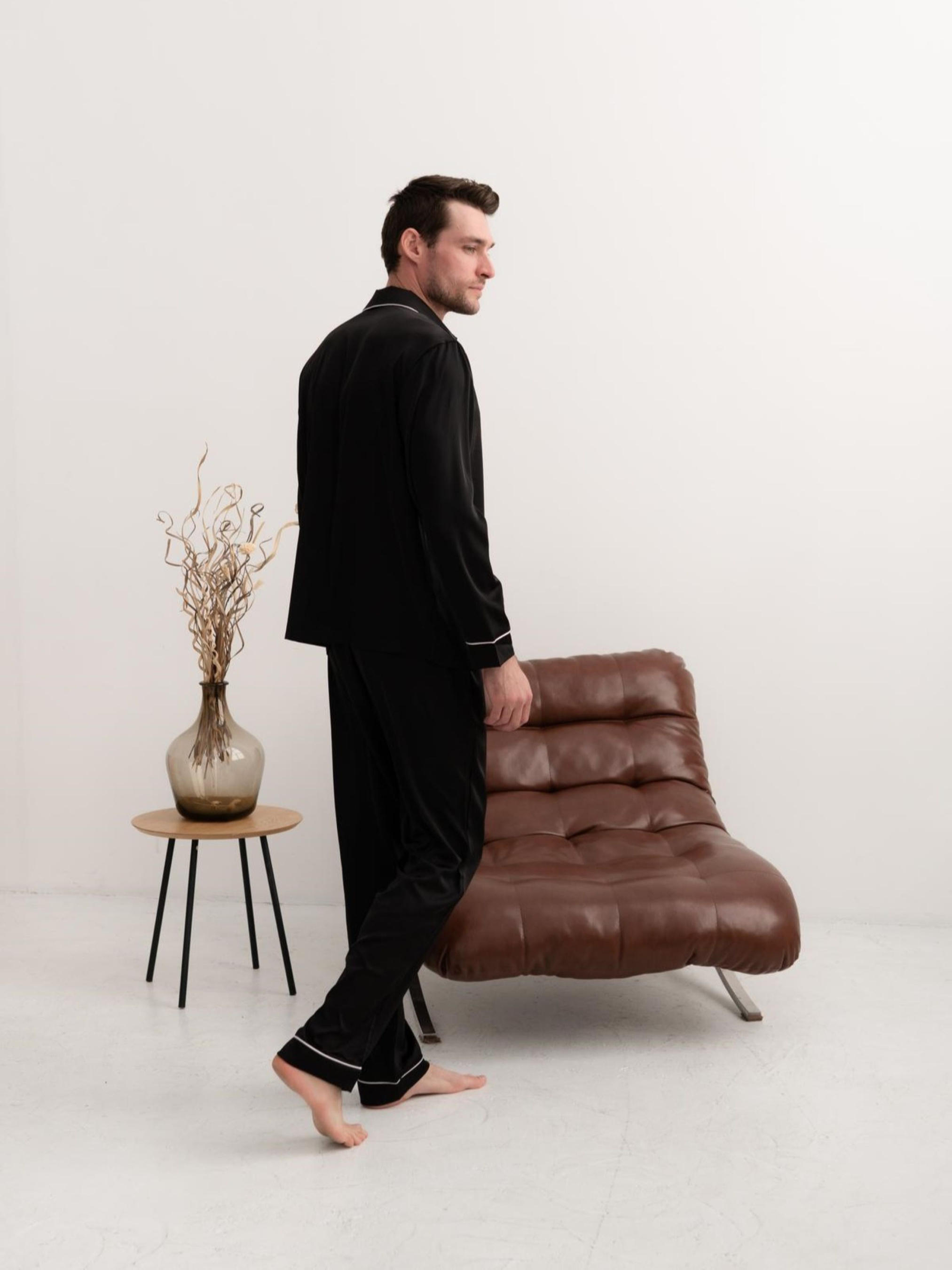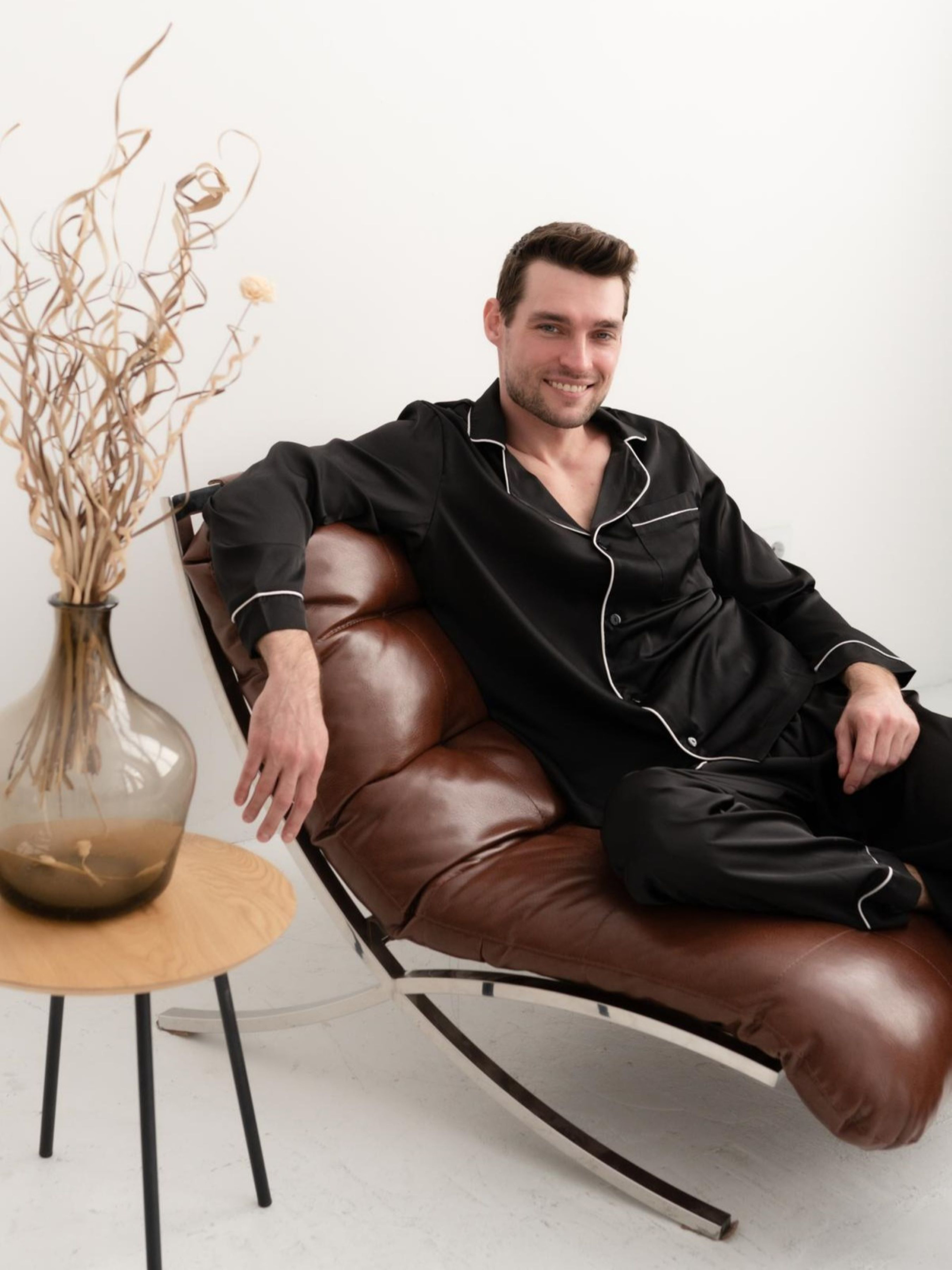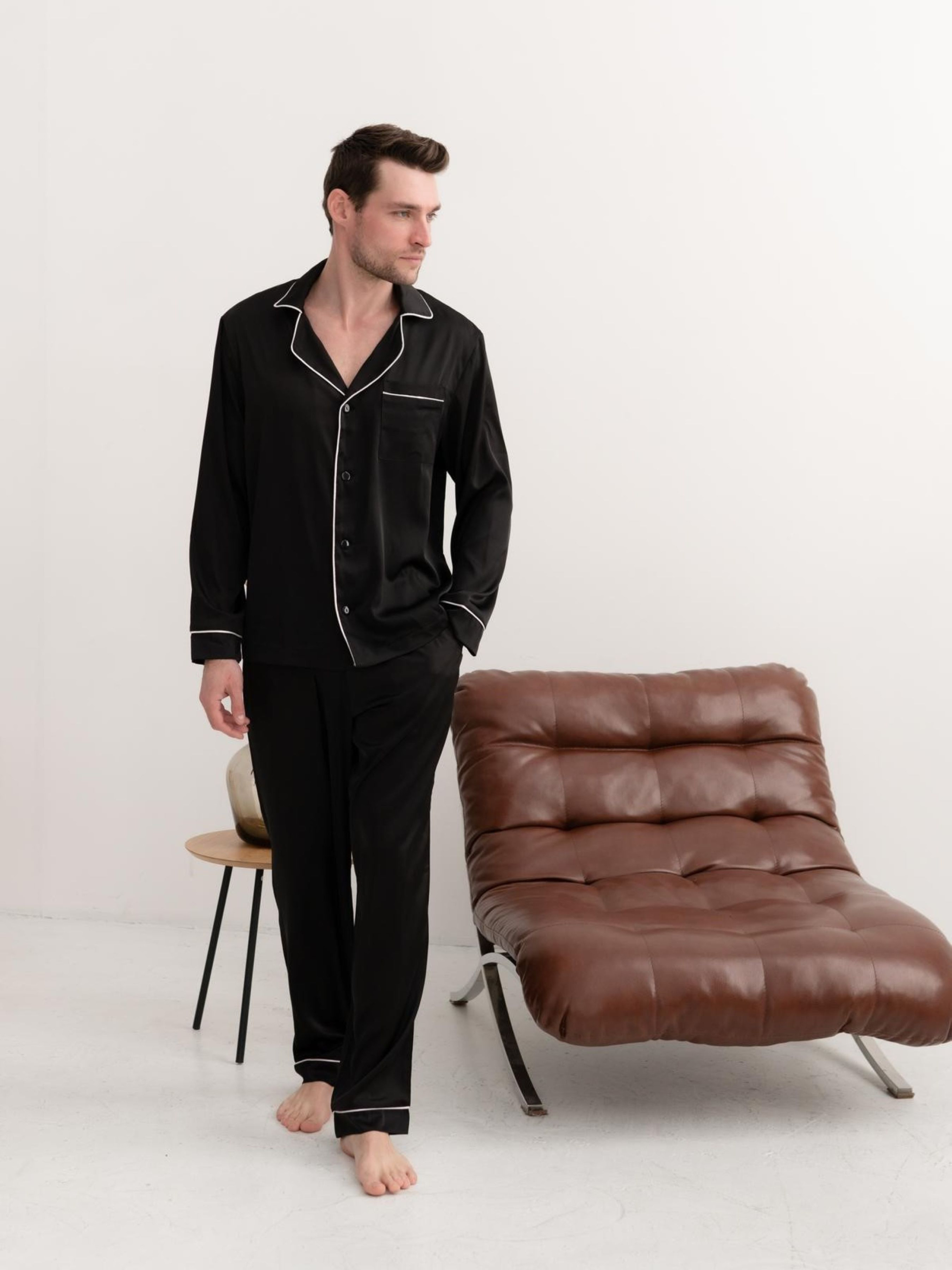Шовкова піжама – це не просто одяг для сну, це символ розкоші, комфорту та витонченого смаку. Чоловіча піжама з шовку Армані стане ідеальним вибором для тих, хто цінує якість, стиль та комфорт. Шовк Армані – це особливий різновид шовку, створений Джорджіо Армані. Він має унікальні властивості: М'якість: Шовкова піжама неймовірно м'яка і приємна на дотик. Вона дарує відчуття комфорту та затишку. Гладкість: Шовкова нитка має гладку поверхню, що робить піжаму приємною до тіла. Легкість: Шовк Армані – це дуже легка та повітряна тканина. Піжама з такоі тканини не сковує руху і дозволяє тілу дихати. Блиск: Шовкова піжама з шовку Армані має благородний легкий блиск, який підкреслює статус і витончений смак свого власника. Чоловіча шовкова піжама з шовку Армані – це чудовий подарунок для чоловіка, який цінує комфорт, стиль та якість. Вона стане незамінною частиною його гардеробу та подарує йому відчуття розкоші та затишку. Чоловіча піжама: сорочка та штани. Сорочка на гудзиках. Штани з кишенями. Піжама прикрашена кантом. Склад тканини: 97% Поліестр, 3% Еластан Колір: чорний, білий кант Розміри: M; L; XL; 2XL; Рекомендації щодо догляду за шовком: Прати вручну або в пральній машині при температурі не вище 30°С, делікатний режим. Для прання використовувати рідкі миючі засоби для делікатних тканин. Не застосовуйте агресивних миючих засобів та відбілювачів. Сушити природним шляхом у розправленому вигляді. Сушіння в пральній/сушильній машині заборонено. Викручувати або віджимати вироби з шовку не можна. Прасувати в режимі «шовк» з вивороту.