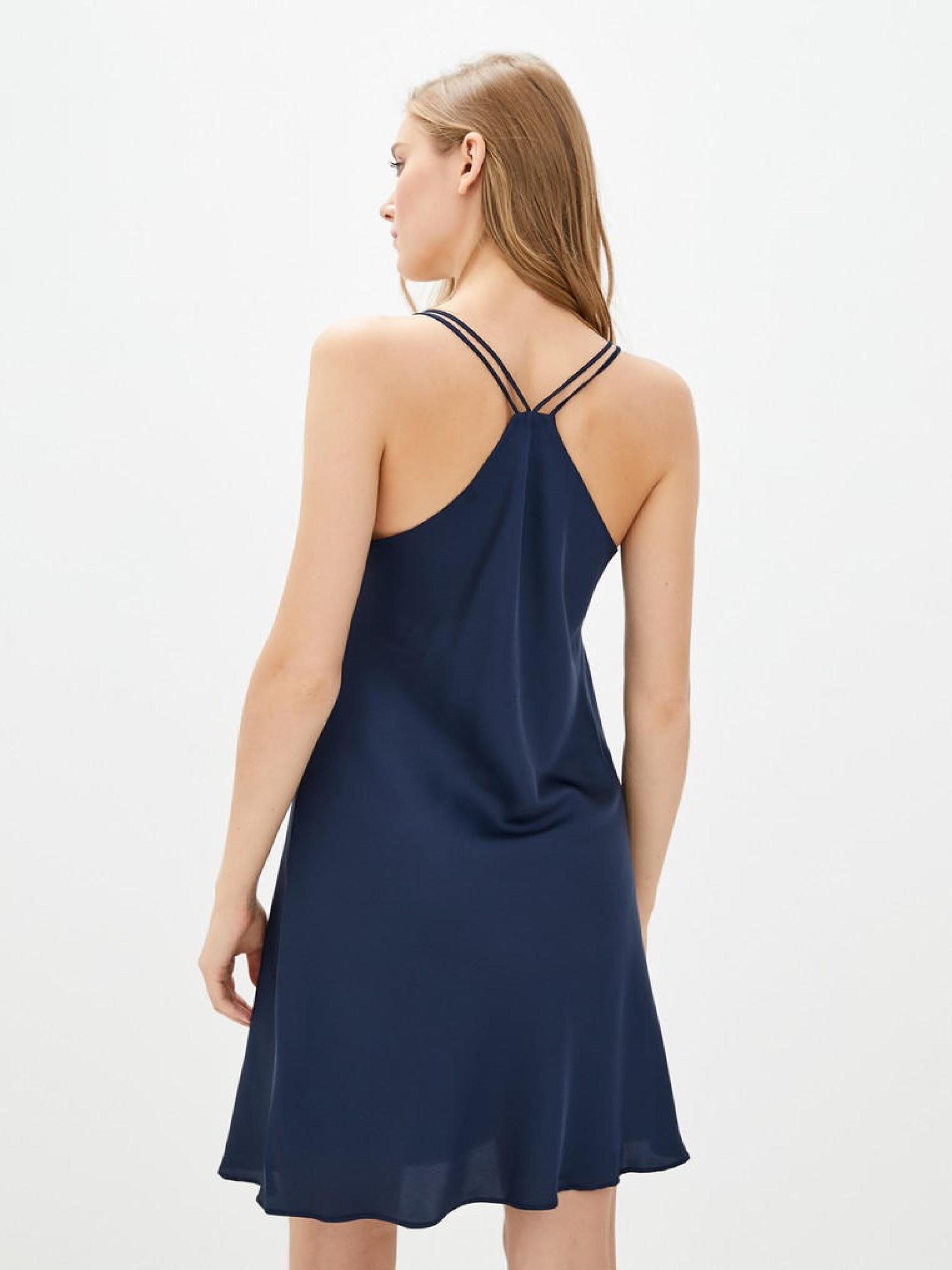 Сукня - комбінація темно - синього кольору. На подвійних бретелях. Повітряна і комфортна, приємна до тіла тканина. Завдяки високій якості матеріалу, виріб не дає саджання, практичний і простий у догляді. Склад: 50% шовк, 45% віскозу, 5% еластан. Розміри S, M, L, XL Розмір S. Обхват грудей: 86 - 92. Обхват стегон: 90 - 100 Розмір M. Обхват грудей: 92 - 96. Обхват стегон: 100 - 106 Розмір L. Обхват грудей: 96 - 100. Обхват стегон: 106 – 112 Розмір XL. Обхват грудей: 100 - 106. Обхват стегон: 112 – 118 Довжина виробу 102 см Параметри моделі на фото: Зріст 170 см Обхват грудей 86 см Обхват стегон 90 см Примітка по догляду: рекомендується прасувати в холодній воді вручну. Після прання річ не потрібно вичавлювати, просто прополоскати і повісити сушитися на вішалку. Сохне дуже швидко. Прасувати праскою при середній температурі з виснажливого боку. І запам'ятайте, не можна збризкувати шовк водою - можуть залишитися розводи!