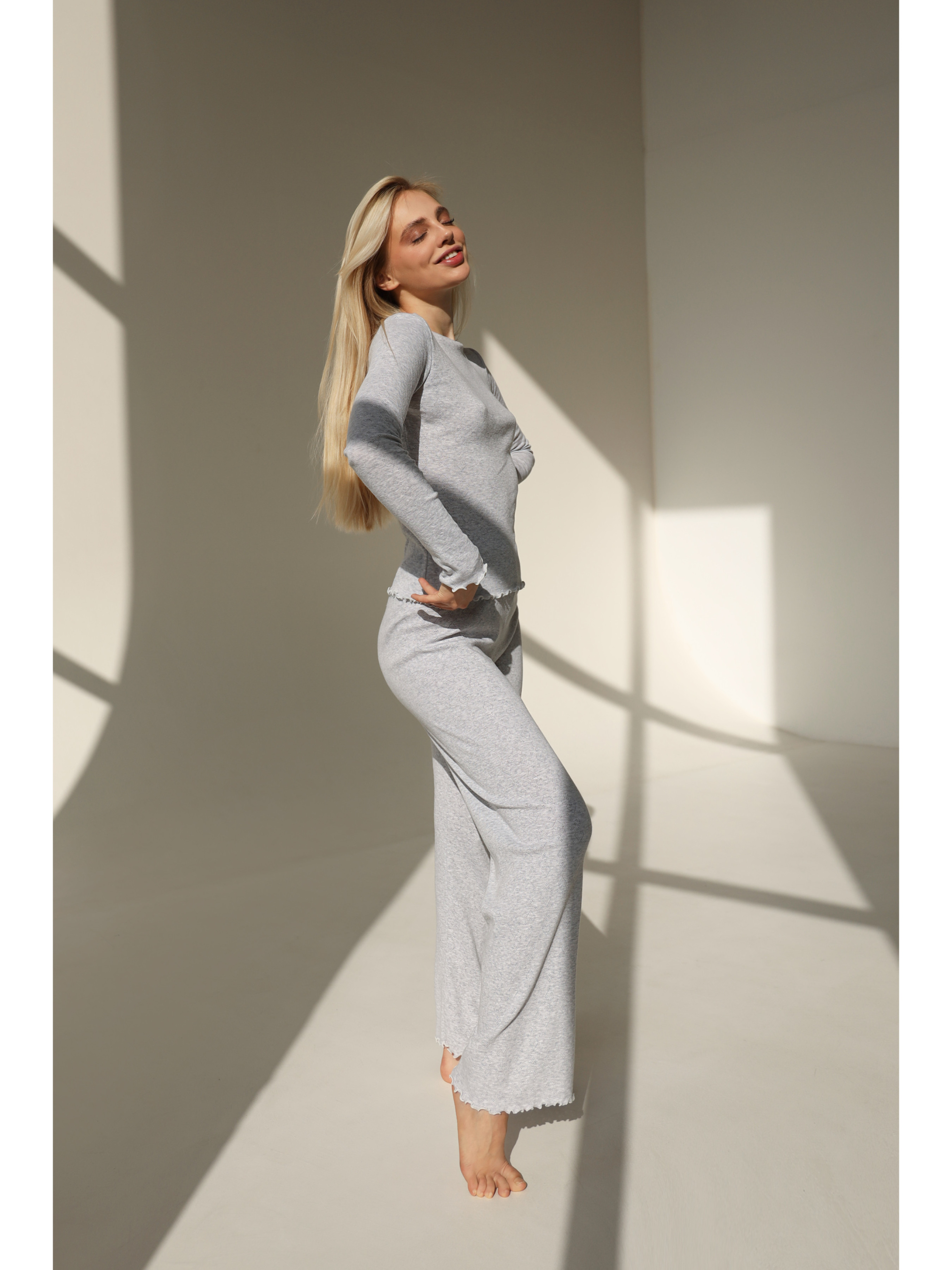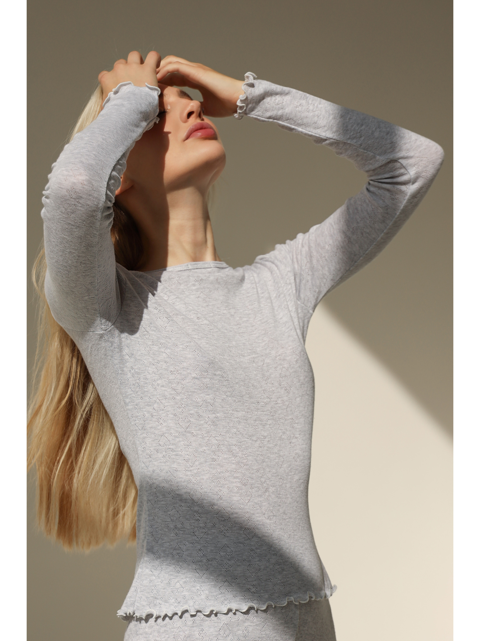 <p>Модель має класичний крій із довгими рукавами та круглим вирізом, що надає їй універсального вигляду, який підходить для будь-якої фігури та віку. Вільний, але водночас акуратний силует дозволяє підкреслити природні лінії тіла, не обмежуючи рухів.</p>