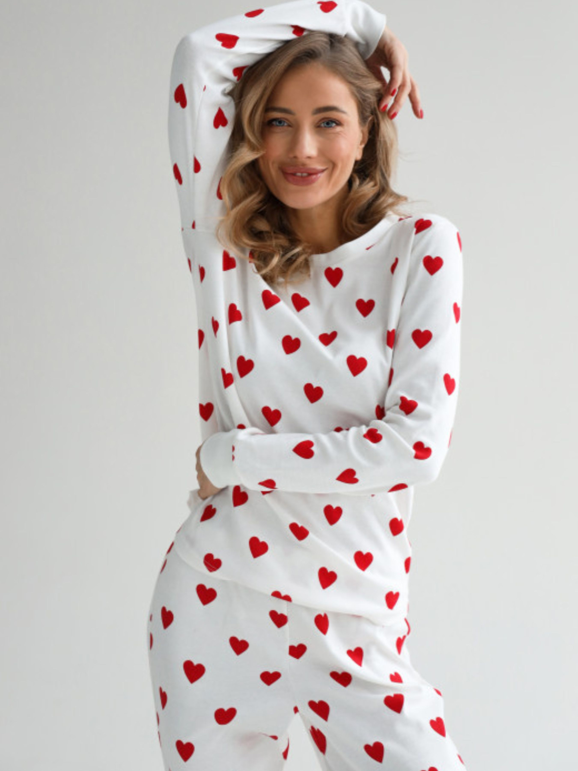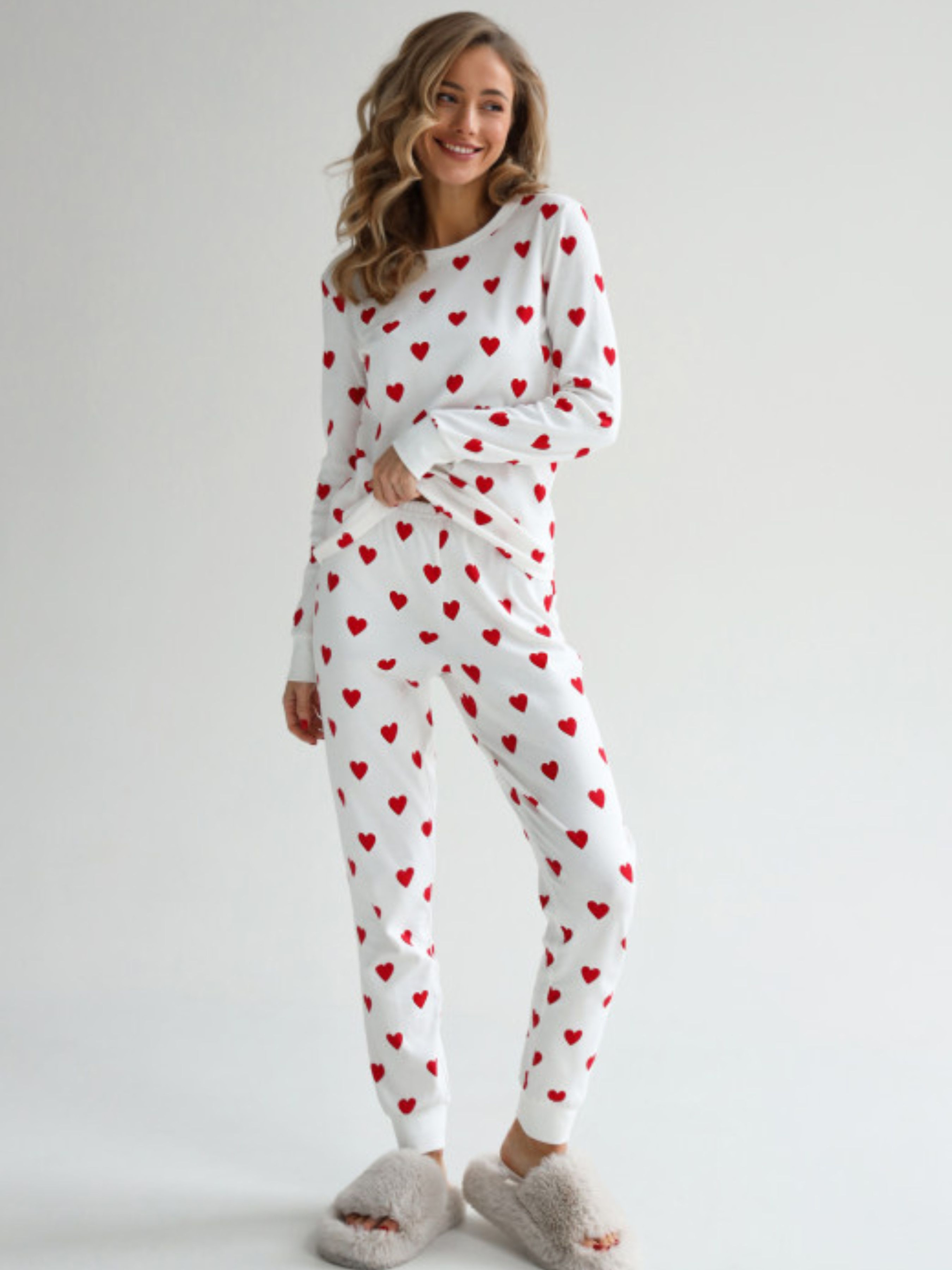 Прикрасьте свої вечори теплом та затишком у цій чудовій піжамі! М'який та приємний матеріал зі складом 80% хлопка та 20% поліестеру додасть вам затишку та забезпечить приємний сон. Ця піжама - ідеальний варіант для затишних вечорів вдома. Піжама зкладается з штанів та кеофтинки с довгим рукавом, що робить ваш образ ще більш чарівним. Завдяки високоякісним матеріалам, ця піжама буде дарувати вам тепло та комфорт кожної ночі. Ви заслуговуєте на найкраще, тому обирайте цю чудову піжаму з сердечками та насолоджуйтеся відпочинком!