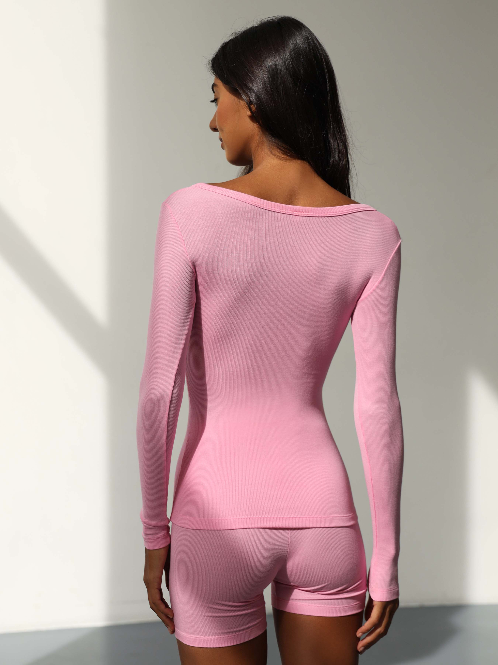 Лонгслів жіночий на ґудзиках з модалової тканини в мілкий рубчик. Модал — екологічно чистий матеріал нового покоління, виготовлений із целюлозних волокон бука. Він відомий своєю мʼякістю, повітропроникністю та довговічністю, що робить його відмінним вибором для одягу та білизни. Одяг з модалу також можна прати та сушити в машині, тому вони зручні та прості у догляді