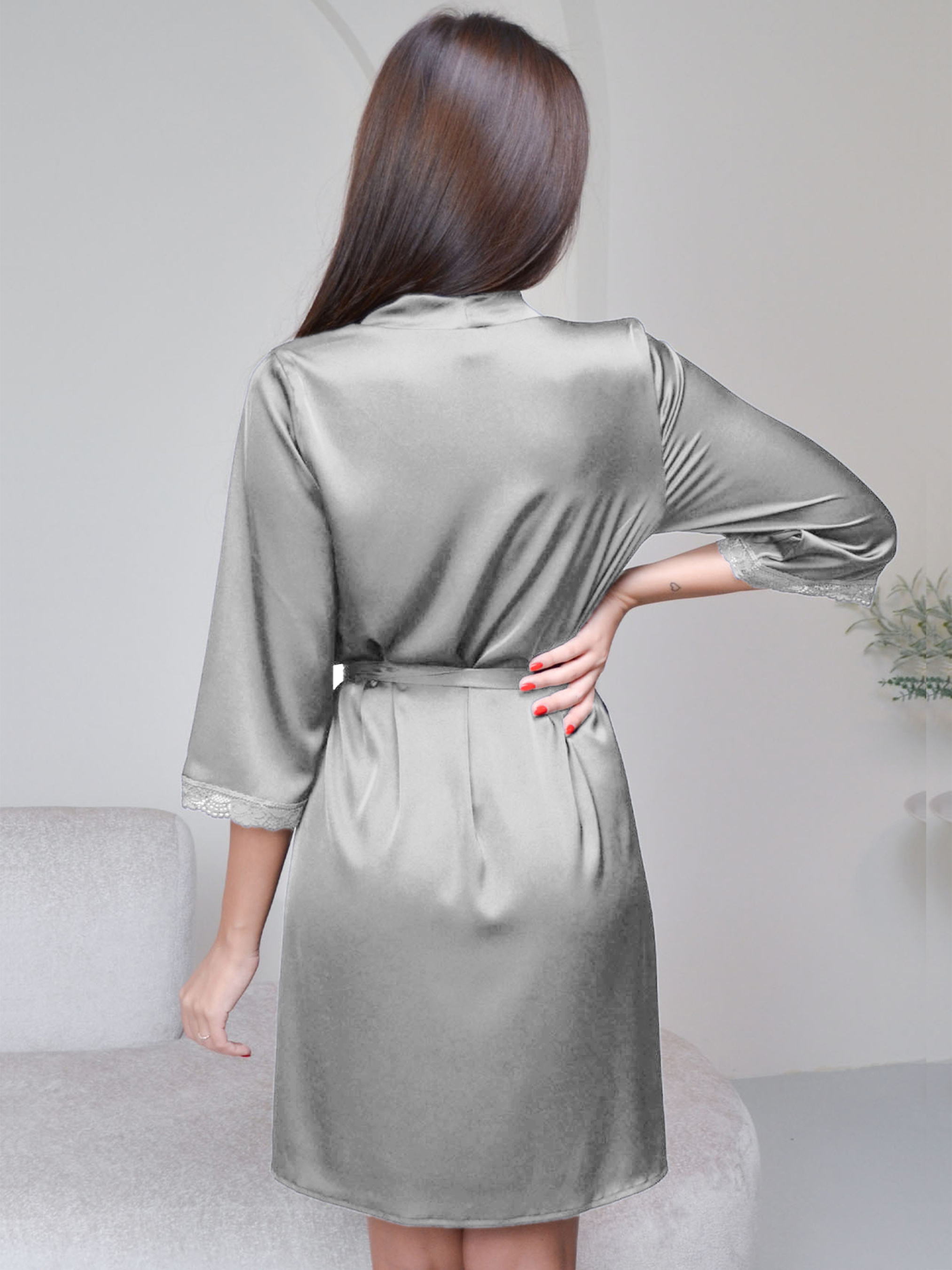 97% polyester, 3% lycra. Домашній халат у сірому кольорі створений для моментів, коли хочеться спокою й комфорту. Легка тканина м’яко ковзає по тілу й не відчувається під час носіння − саме те, що потрібно після душу, ранкових зборів чи вечірнього відпочинку. Силует вільний і охайний, без зайвих деталей, тому халат виглядає сучасно й природно. Рукави з плавним розширенням та делікатним мереживом додають м’якості образу. Пояс дозволяє зручно регулювати посадку, щоб халат сідав саме так, як тобі комфортно. Універсальна довжина робить модель практичною для щоденних домашніх справ і спокійних вечорів наодинці з собою. Сірий відтінок легко поєднується з піжамою чи нічною сорочкою з колекції − можна скласти свій міні-сет у єдиному настрої. Халат невибагливий у догляді та зберігає охайний вигляд у постійному ритмі використання. Якщо хочеш базову, практичну й приємну до тіла річ для дому − ця модель стане тією самою, до якої тягнеться рука зранку і перед сном. А коли виникне бажання додати її у свій домашній гардероб, ти легко зможеш замовити та купити халат онлайн, обравши потрібний розмір у кілька простих кроків. Відтінок тканини та мереживна обробка можуть мати легкі відмінності від зображення через особливості фото та передачі кольору на різних пристроях.