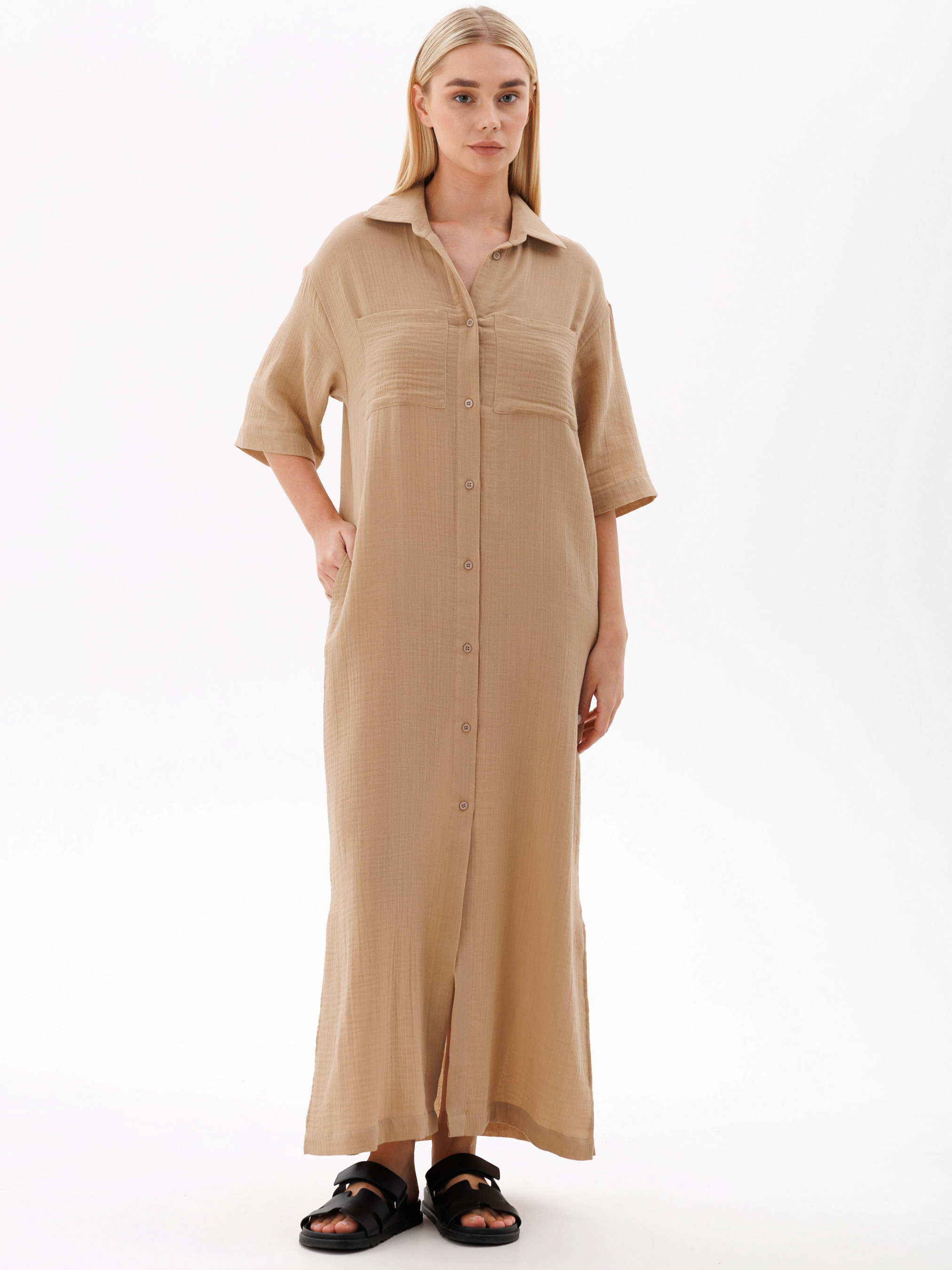 100% cotton. Легкий та елегантний жіночий халат з мусліну — ідеальний вибір для комфортного відпочинку вдома. Його ніжна тканина приємно обіймає тіло, даруючи відчуття легкості і свободи. Халат застібається на акуратні пуговиці, що додають йому витонченості. Витончена довжина та вільний крій підкреслюють жіночність і створюють романтичний образ. Ідеальний для вечірніх релаксів або ранкових ритуалів.