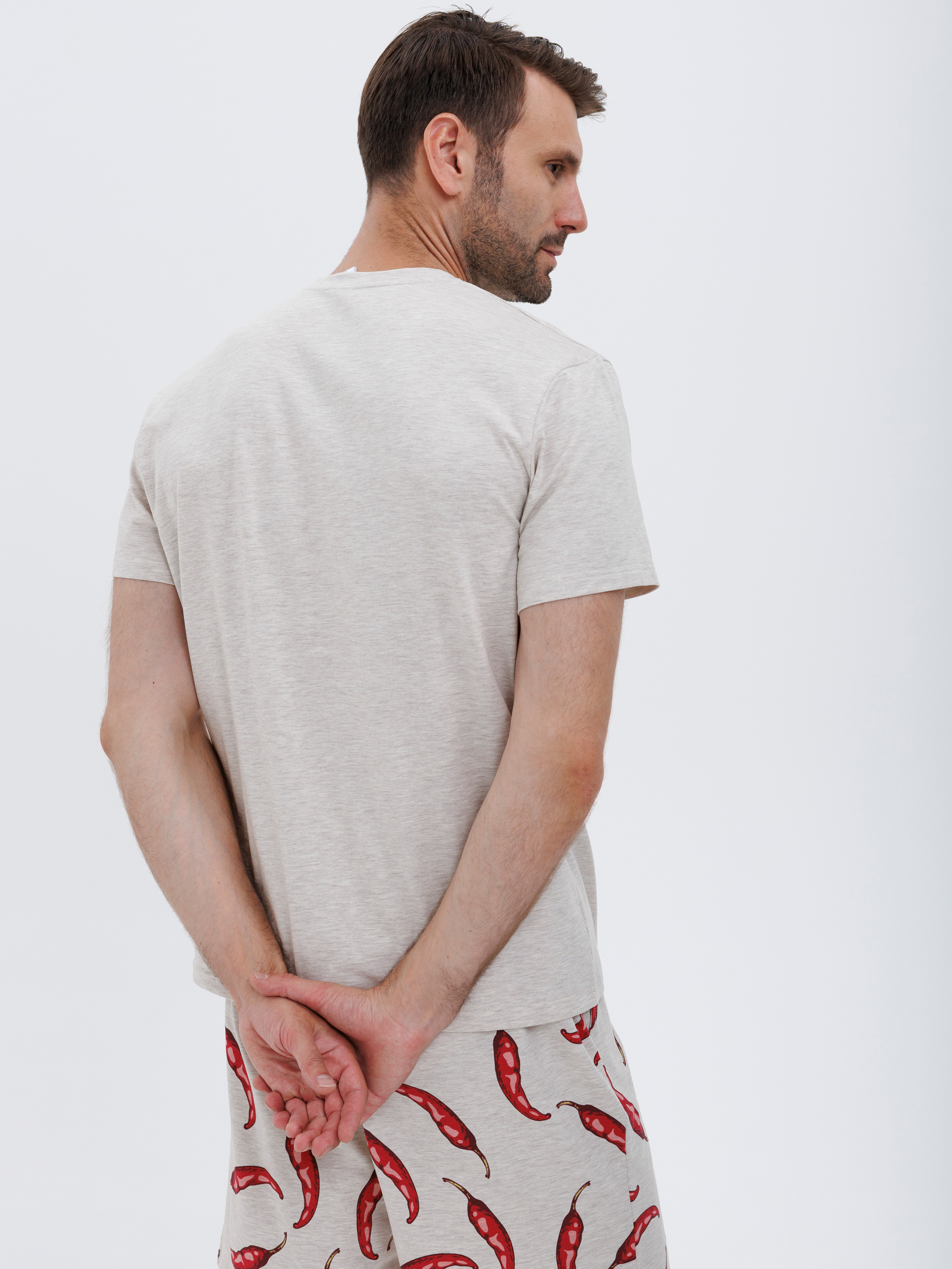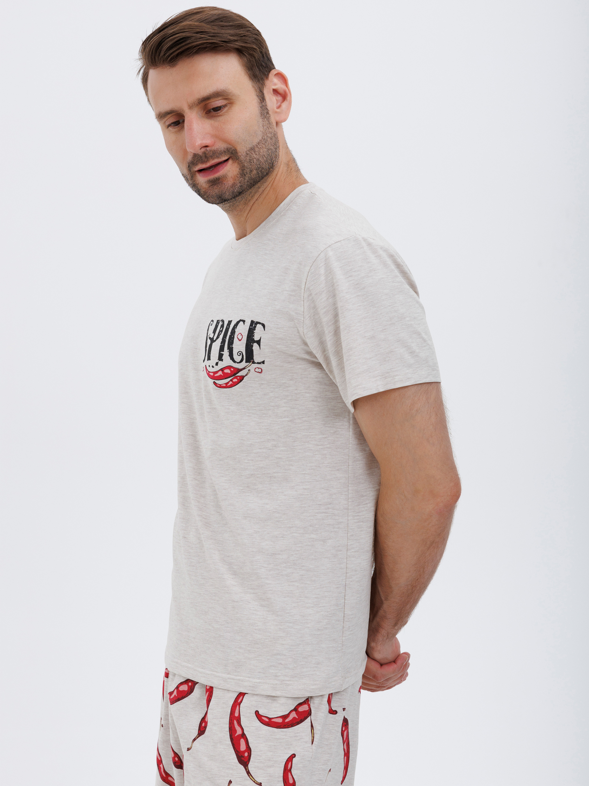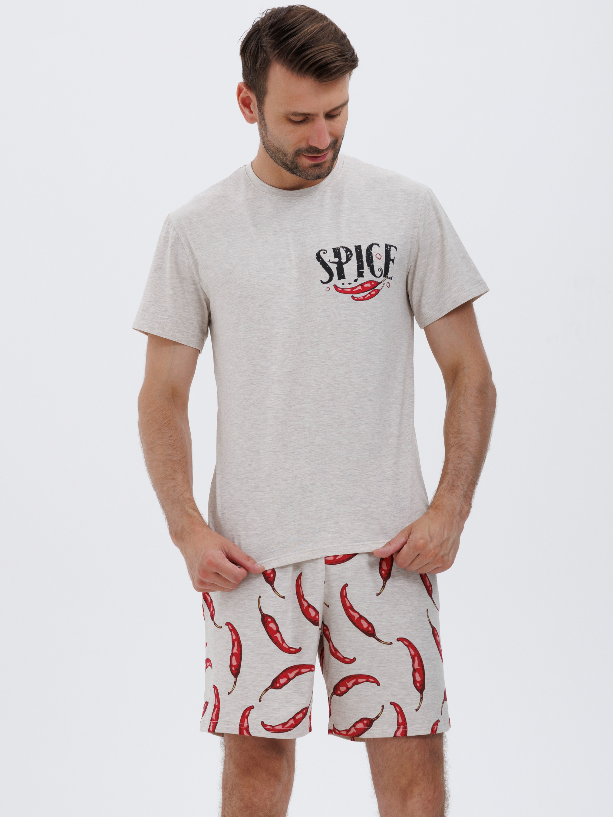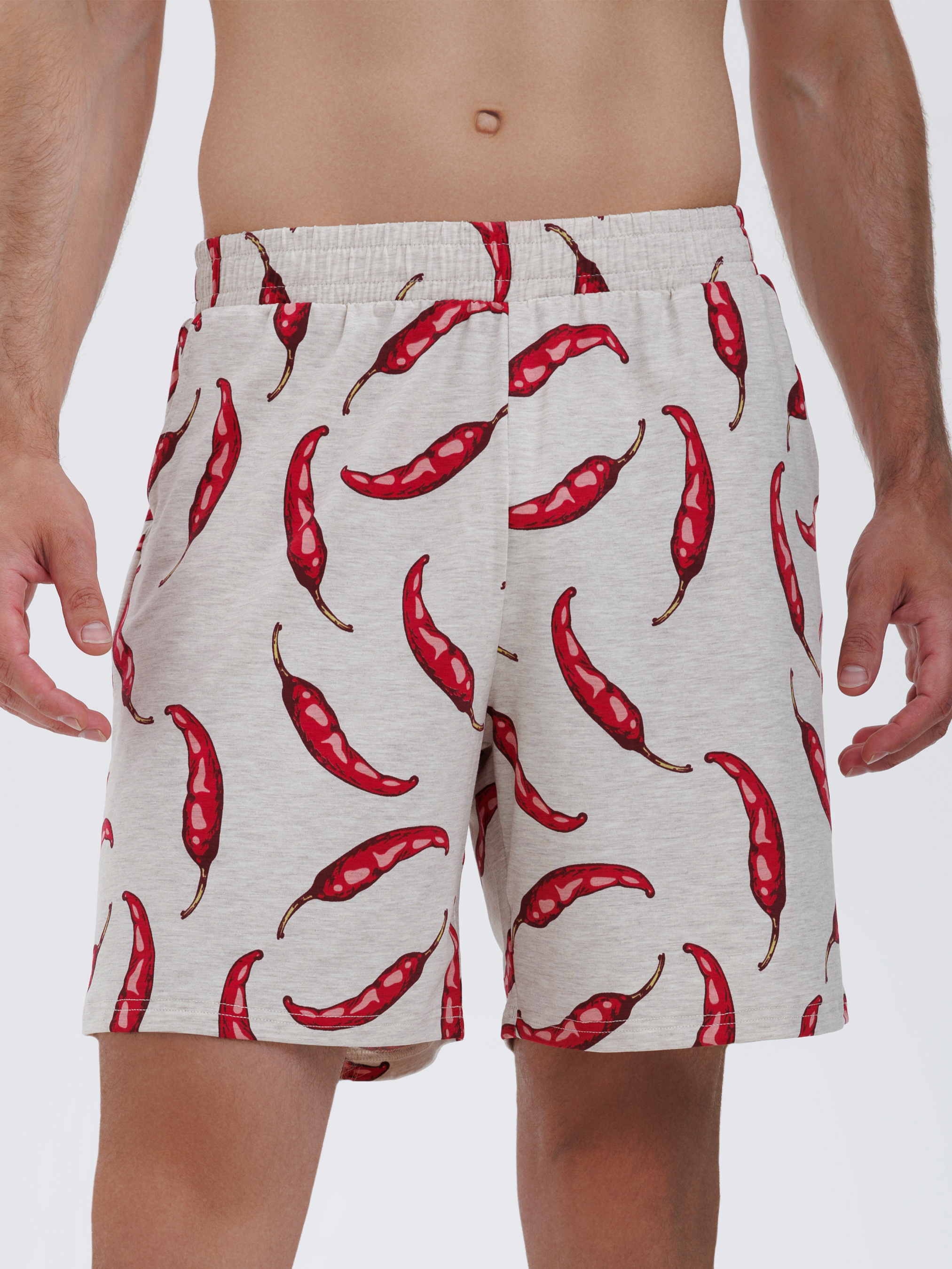 95% cotton, 5% elastaneСправжній унікальній підхід - ця піжама з принтом перцю чілі, яка вражає з першого погляду. У бежево-червоних тонах, вона зацентрує всю увагу на вас. Якісна бавовняна тканина забезпечує дихання всього тіла, вам не буде жарко чи холодно, бавовна зберігає правильний теплообмін. Шорти вільні та гарно сидять по фігурі, резинка поясу не натирає шкіру і не стягує її на талії. Родзинка цієї піжами, неймовірний принт, надає піжамі своєрідного шарму та спокуси. Це вибір для експресивних та оригінальних. Принт створює неповторний акцент, ваш образ запам'ятається стовідсотково. Тож, якщо ви шукаєте піжаму, яка буде відображенням вашої індивідуальності та смаку, ця модель - саме те, що вам потрібно.