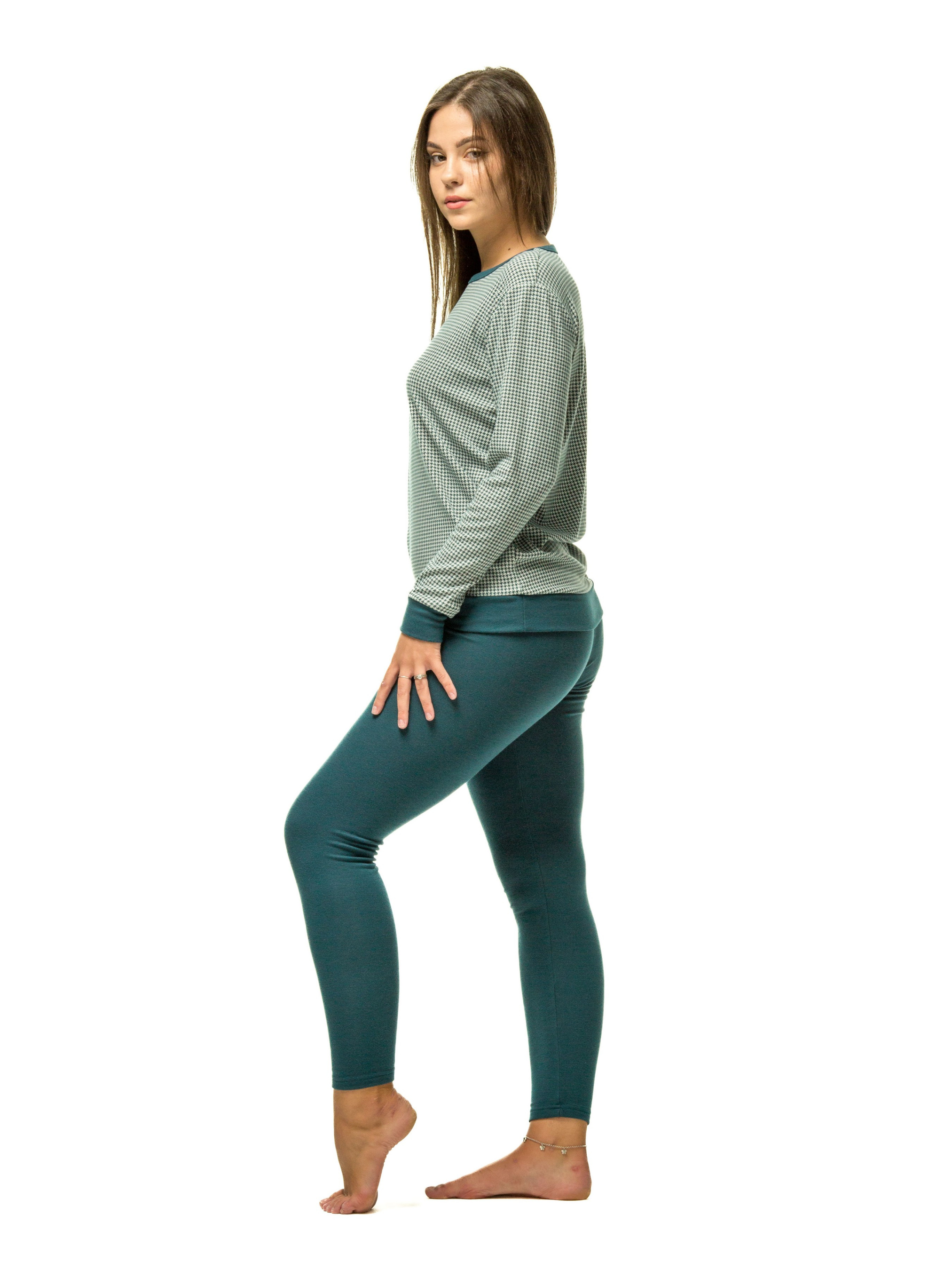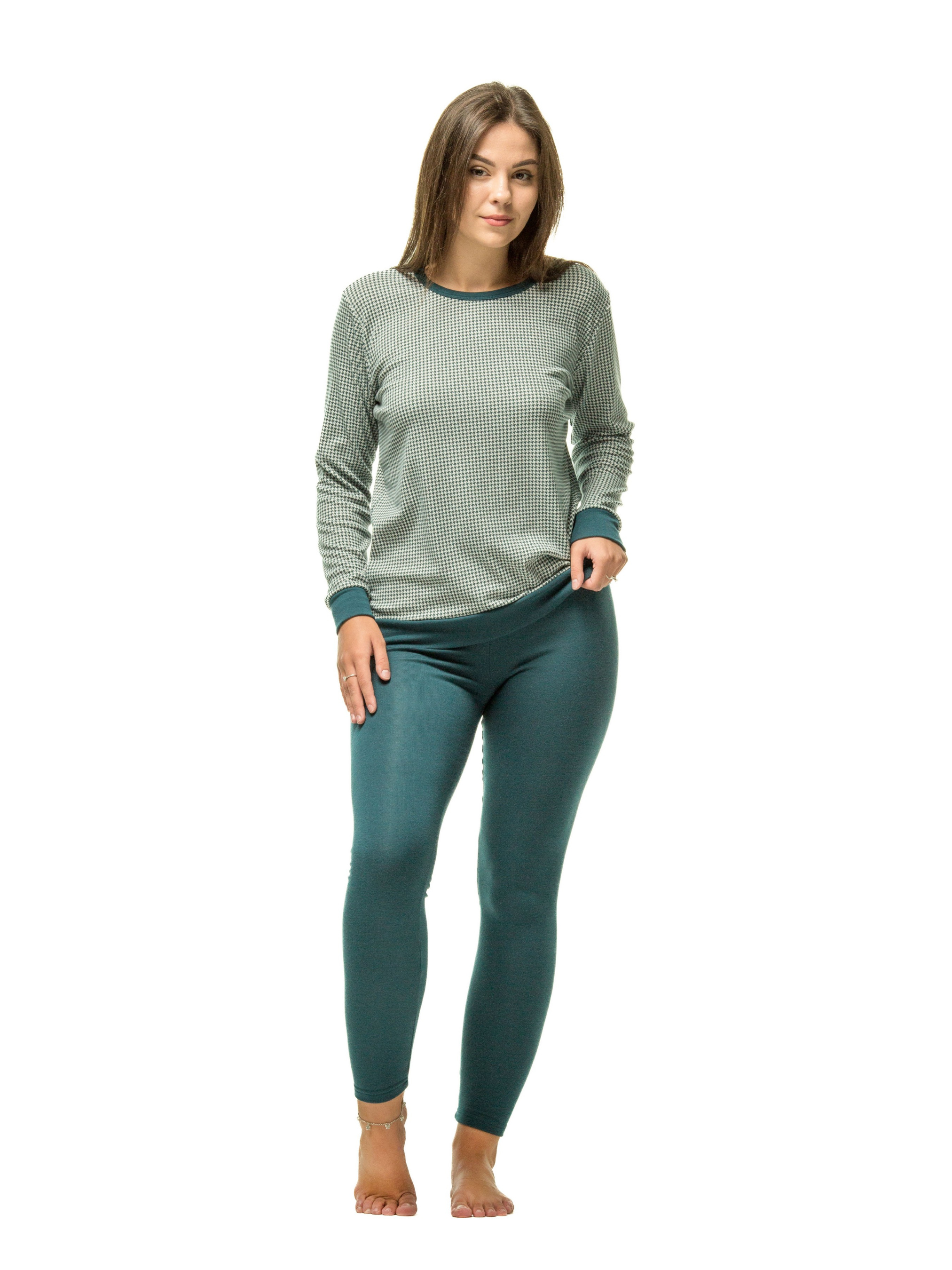 Зберігайте комфорт і тепло в холодну пору року з нашими жіночими термопіжамами з лосинами! Ці комплекти створені, щоб забезпечити вам максимальний комфорт і зберегти тепло в будь-яких погодних умовах. Наші термопіжами мають довгий рукав і виготовлені з високоякісних теплих матеріалів, які допомагають зберегти ваше тіло в теплі. Зручні лосини забезпечують вам вільний рух і можуть бути носити як самостійно, так і під іншими одягом. Матеріали, використані у цих піжамах, дозволяють вашому тілу "дихати", запобігаючи перегріву. Жіночий і модний дизайн робить ці піжами чудовими для носіння в будь-який час. Ці термопіжами підходять як для носіння вдома, так і для активних виходів на свіжий повітря в зимовий період. Нехай холод не заважає вам насолоджуватися життям! Замовте наші жіночі термопіжами з лосинами і відчуйте комфорт і тепло в кожній деталі.
