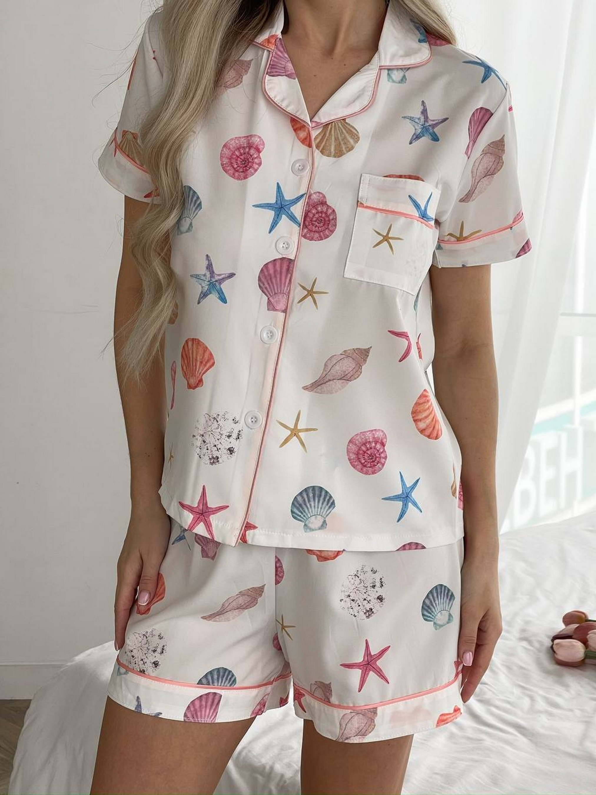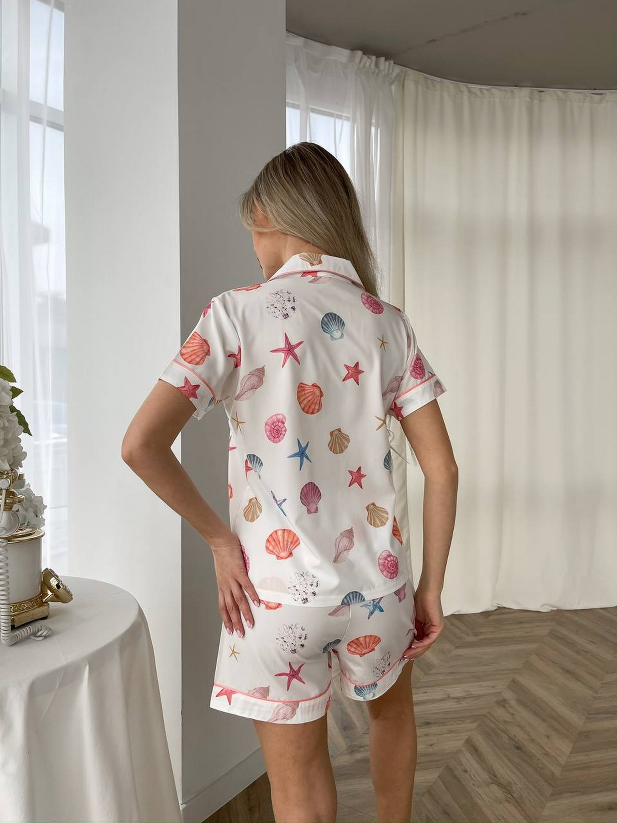 Жіноча піжама Nova Vega. До комплекту входить сорочка та шортики. Сорочка на ґудзиках та з коротким рукавом. Зручні шортики на високій посадці. Комплект виконано з приємного матеріалу софт, який ніжно відчувається на тілі. Ідеальний варіант для сну, відпочинку або домашнього вайбу з естетикою. Піжама прикрашена милим принтом. S: груди 80-86, стегна 86-93 см M: груди 87-92, стегна 94-99 см L: груди 93-98, стегна 99-104 см XL: 98-104 cc, слегна 105-111 см