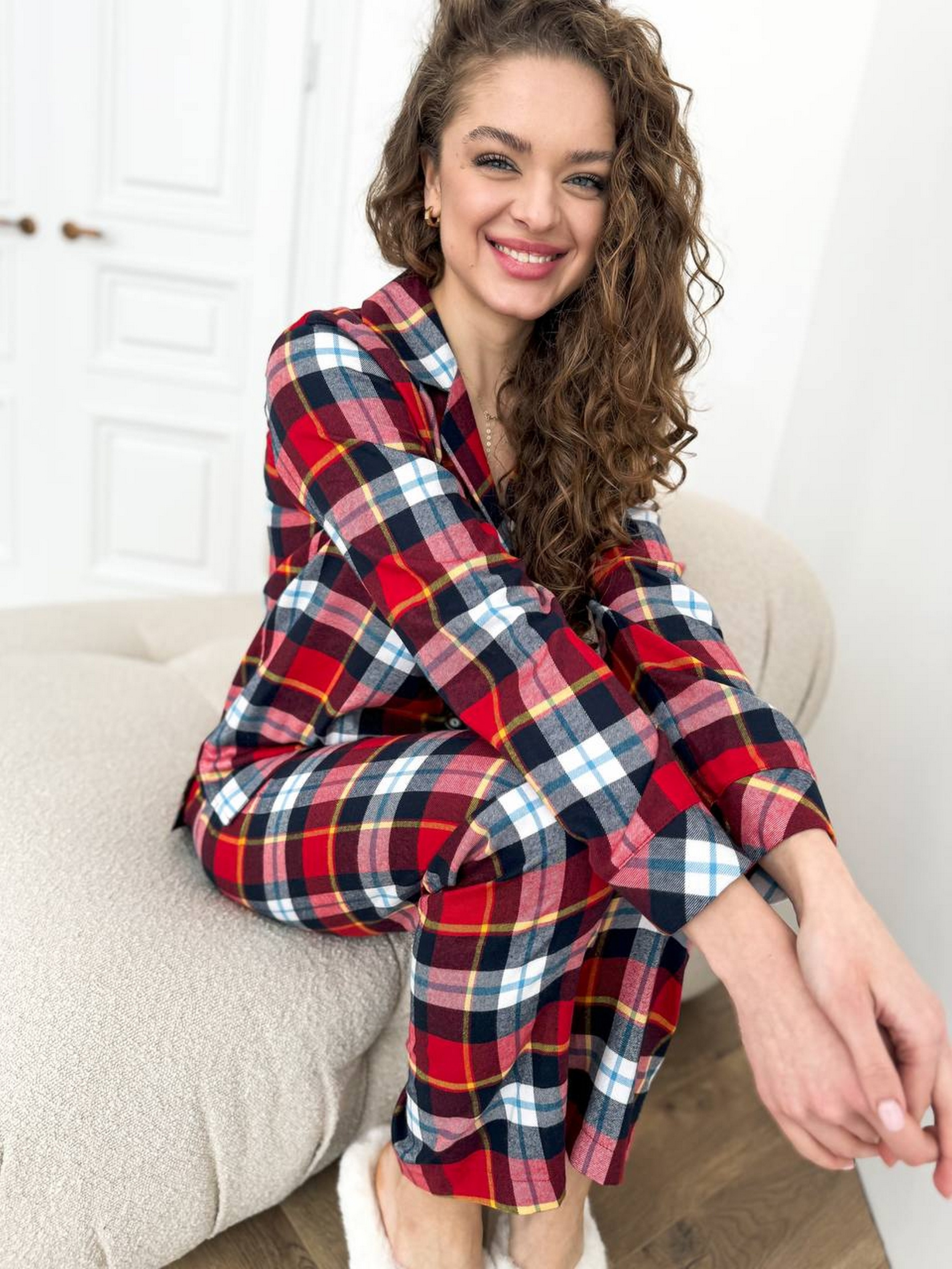 Жіноча піжама в клітинку Nova Vega. До комплекту входить сорочка на гудзиках з довгим рукавом та зручні штани на високій посадці. Комплект виконаний з фланелі, що дуже приємно відчувається на тілі. Розмірна сітка: XS/S: груди 85-100 см ; стегна 89-99 см M/L: груди 97-110 см; стегна 99-112 см