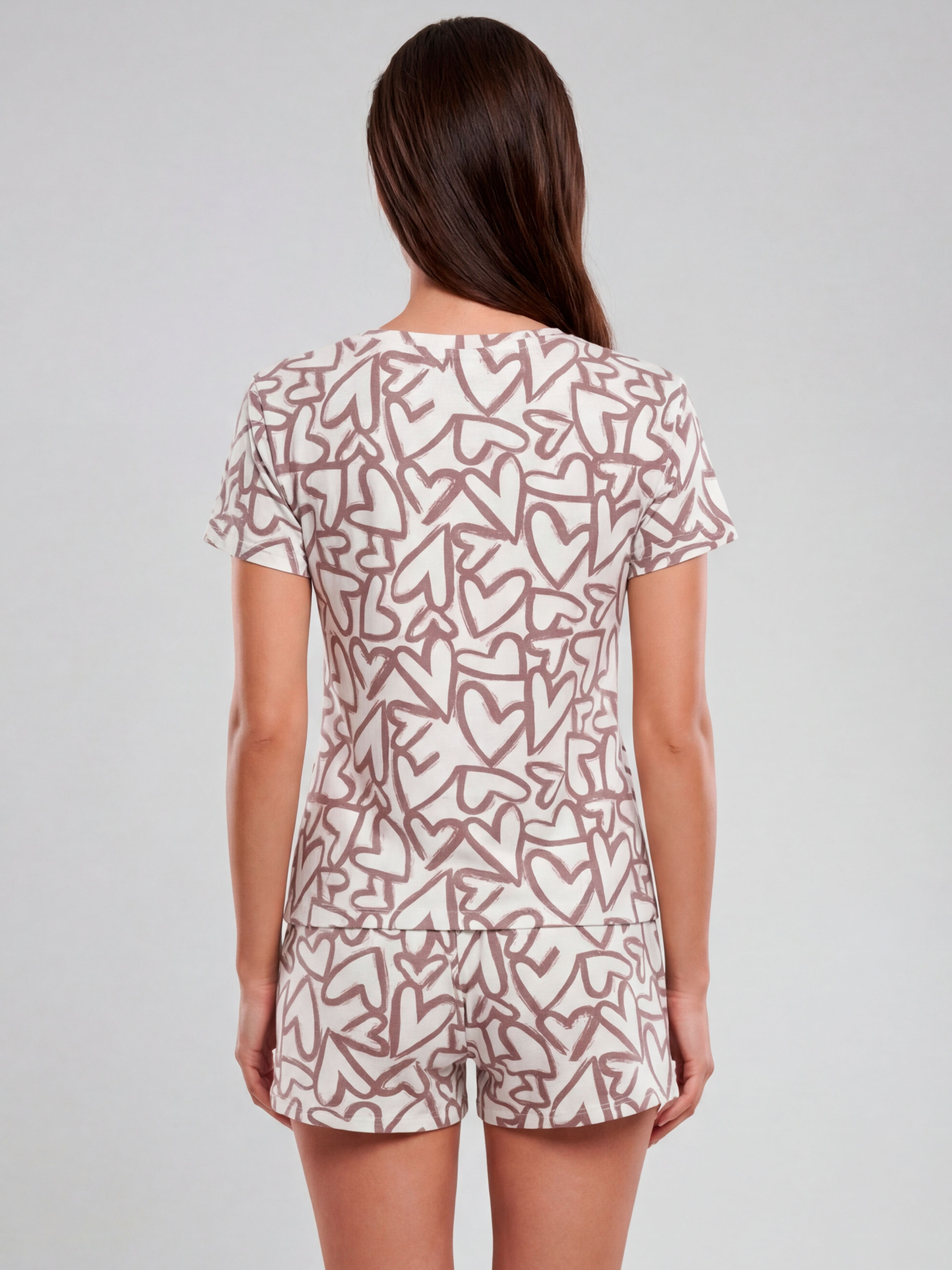 95% cotton, 5% elastane. Є речі, які задають темп правильного ранку: комфортно, тепло й без поспіху. Ця піжама жіноча створена для такого настрою — коли хочеться зробити каву, відчинити вікно й залишитися в м’якому затишку. Комплект складається з футболки прямого силуету та шортів з комфортною посадкою — домашній одяг, що не тисне й не сковує рухів. Принт кавового кольору із графічними серцями виглядає помітно, сучасно та ніжно водночас, а світла база робить комплект мінімалістично легким. Окрема насолода — тканина. Натуральна бавовна дихає, м’яко лягає по тілу й дарує відчуття справжнього домашнього комфорту. Це той випадок, коли піжама відчувається делікатно і вдень, і вночі: хоч для сну, хоч для домашніх справ, хоч для спокійних вихідних. Переваги очевидні: легкість, свобода рухів, комфорт протягом дня та простота у догляді — піжама з шортами легко стає улюбленою базою домашнього одягу для жінок. Якщо шукаєте жіночий одяг для сну, який виглядає охайно й сучасно, цю модель точно захочеться замовити та купити. Зверніть увагу, що відтінок тканини та принт можуть мати незначні відмінності від зображення на фото через особливості освітлення під час зйомки або індивідуальні налаштування екрана вашого пристрою.