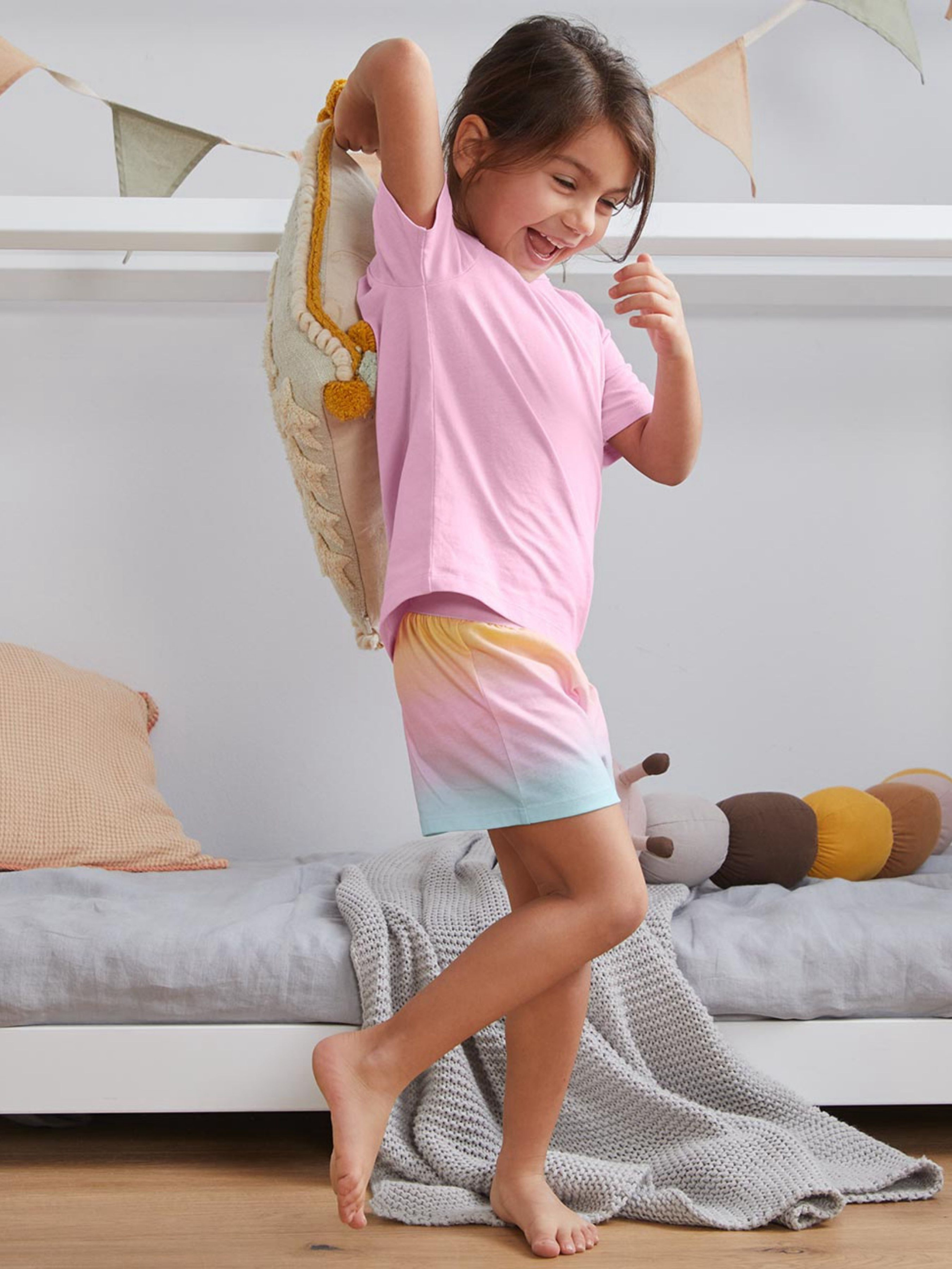 Дитяча піжамна футболка для теплих вечорів Розмір 86/92 із застібками на плечі для зручного одягання та роздягання Колір: верхня частина рожева з жовтим серцем Матеріал: 100% бавовна (вирощена органічним способом) Розміри / вік: 86/92 – приблизно 12–24 місяці 98/104 – приблизно 2–4 роки 110/116 – приблизно 4–6 років 122/128 – приблизно 6–8 років Замір: Розмір 98/104: ПОГ – 30 см, довжина – 40 см Примітка: Одяг бренду Tchibo зазвичай не має паперових етикеток. У більшості випадків внутрішні бірки зі складом тканини, назвою бренду або розміром зрізані частково або повністю.