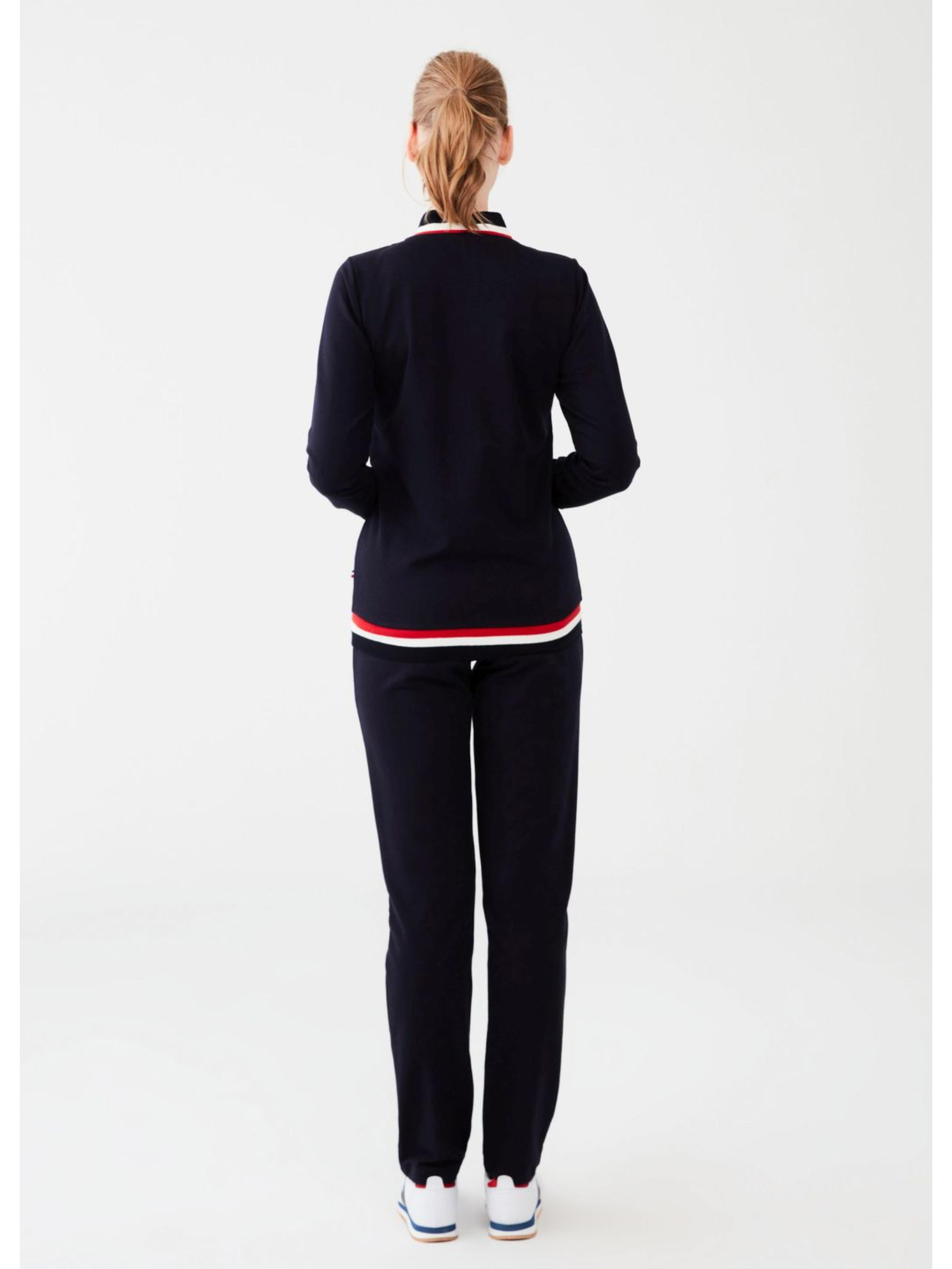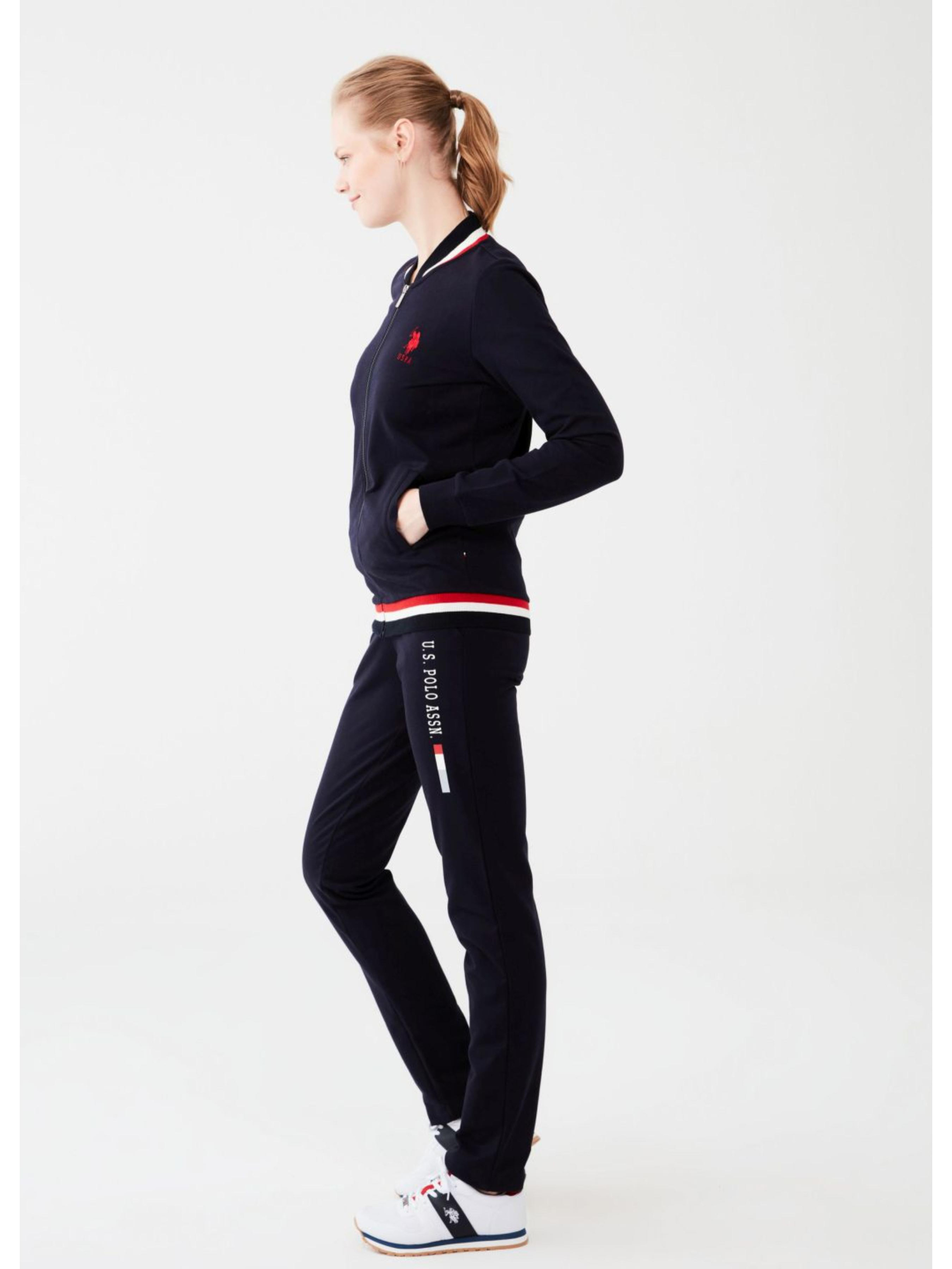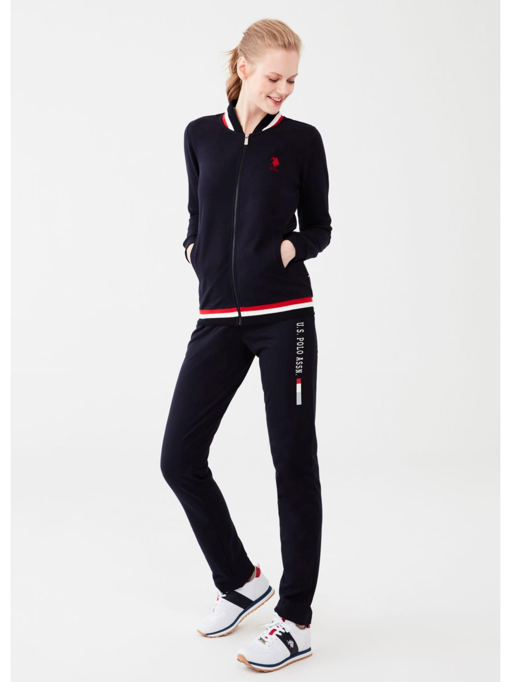 Жіночий костюм для дому U.S. Polo Assn з індивідуальним дизайном. Складається з двох частин: кофта на застібку з довгими рукавами та кишенями, штани прямого крою. Дизайн доповнено логотипами бренду і акцентними смужками. Виготовлено з високоякісних матеріалів, комфортний для повсякденного носіння.