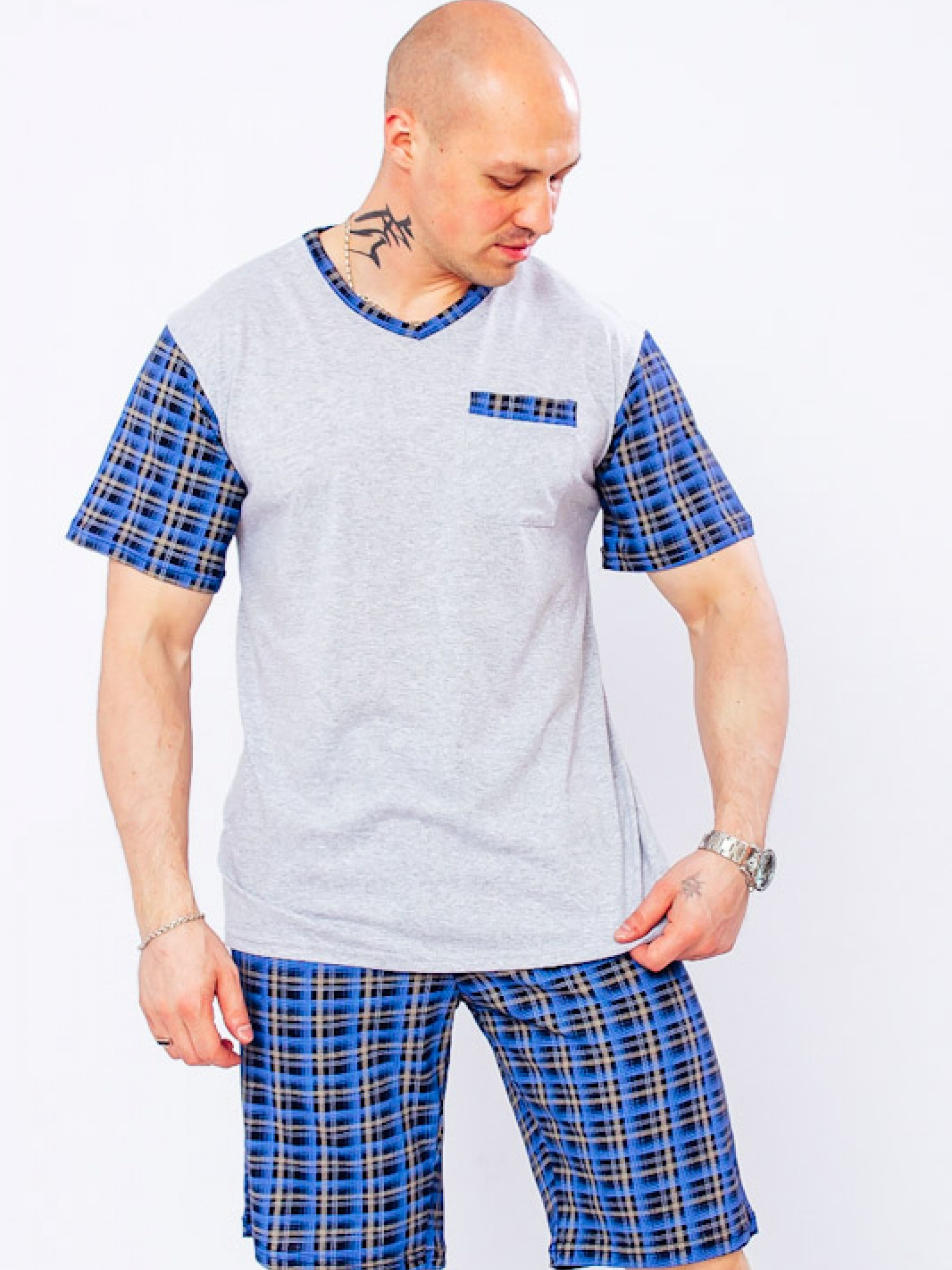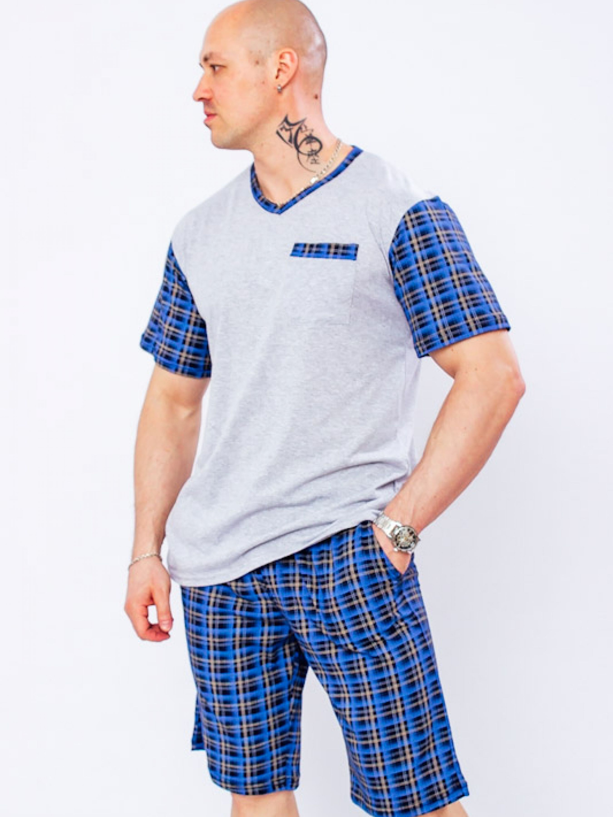 Полотно: кулір набивний Склад полотна: 100% бавовна Розмір: 46-56 Що таке домашній одяг для чоловіків? Це затишні та комфортні речі які дозволяють повернувшись додому повністю розслабитися і налаштуватися на відпочинок. Дизайнери ТМ Носи Своє врахували всі ці нюанси і створили нову чоловічу піжаму. Перше на що потрібно звертати увагу при виборі піжами - це матеріал. Найкращими піжамами вважаються ті які виготовлені з трикотажу адже саме цей матеріал просто створений для комфортного сну. Наша компанія створює не просто зручні піжами але ще і дуже стильні. Для цього спеціально вибираємо високоякісний м'який бавовняний трикотаж певного забарвлення. футболка з коротким рукавом вільного крою V-виріз горловини c контрастними рукавами класичні шорти гармонійно доповнюють верх виробу. зручна резинка в поясі робить річ більш комфортною. красива стильна і комфортна модель яку можна використовувати не тільки для сну але і в якості домашнього одягу або відпочинку в якій буде приємно засипати прокидатися і перебувати з близькими людьми. Це основні характеристики чоловічої піжами. Догляд: дбайливе прання при t не більше 40С; прасувати при t не більше 110С; з вивороту трохи вологим. Купуйте чоловічі піжами ОПТОМ і в РОЗДРІБ. Оцініть переваги співпраці з найпопулярнішим українським виробником трикотажного одягу компанією Носи Своє