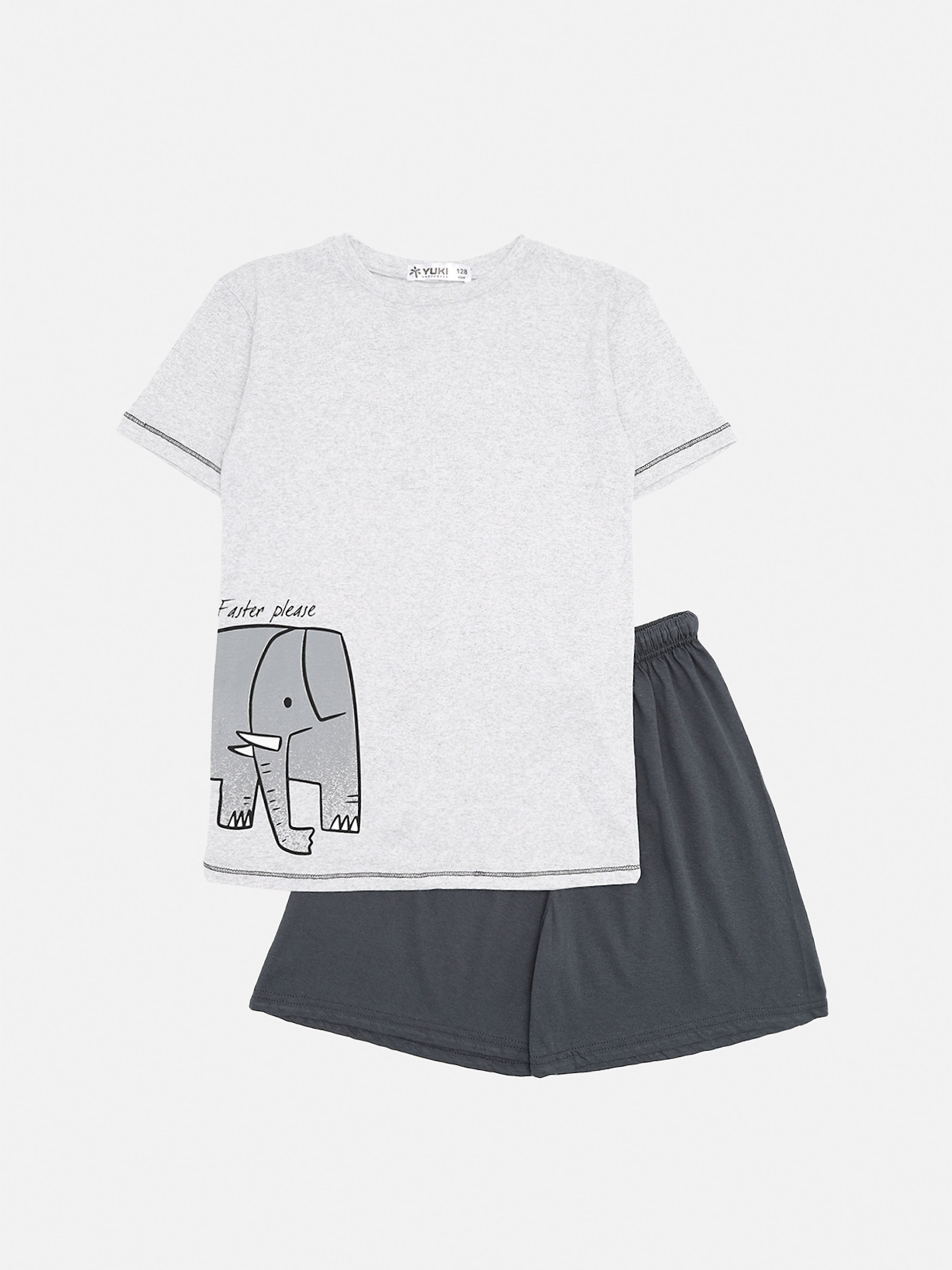 Піжама з шортами для хлопчика – ідеальний вибір для комфортного сну та відпочинку! Цей комплект поєднує стиль і зручність, дозволяючи маленьким бешкетникам почуватися легко й невимушено. Верх піжами – м’яка футболка з короткими рукавами. Особливості виробу: Колір: сірий, з декоративним принтом. Матеріал виготовлення: трикотаж. Склад: 100 % бавовна. Комплектація: футболка з коротким рукавом та шорти. Тип поясу шортів: резинка. Розмірний ряд: 128 - 158. Сезон: літо. Країна виробник: Туреччина.