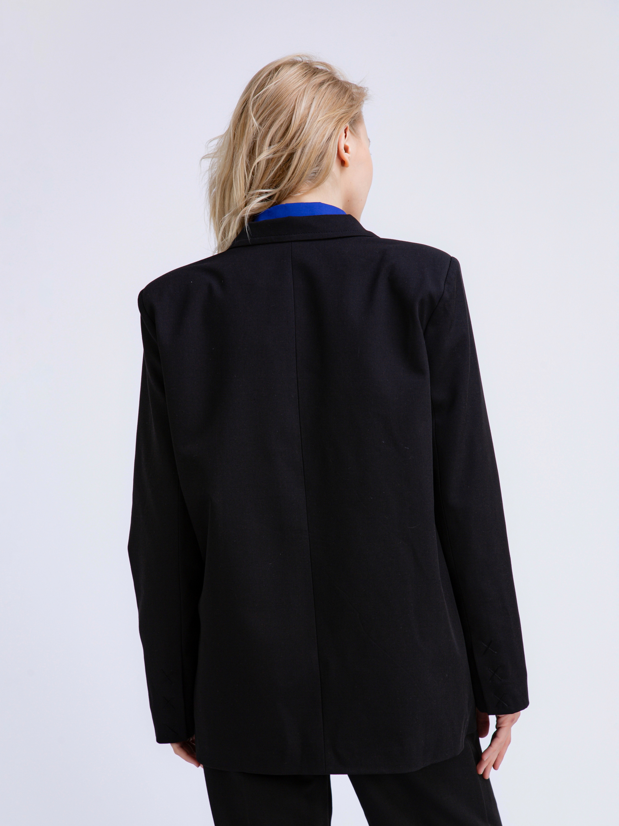 Однобортний піджак у принт. Акцент на широку лінію плечей. На рукавах є лаконічний елемент вишивки хрестики. Застібається на один ґудзик. Базовий варіант, який можна скомбінувати як у класичному образі, так і у повсякденному. Доповнити можна штанами, однотонною сумкою.