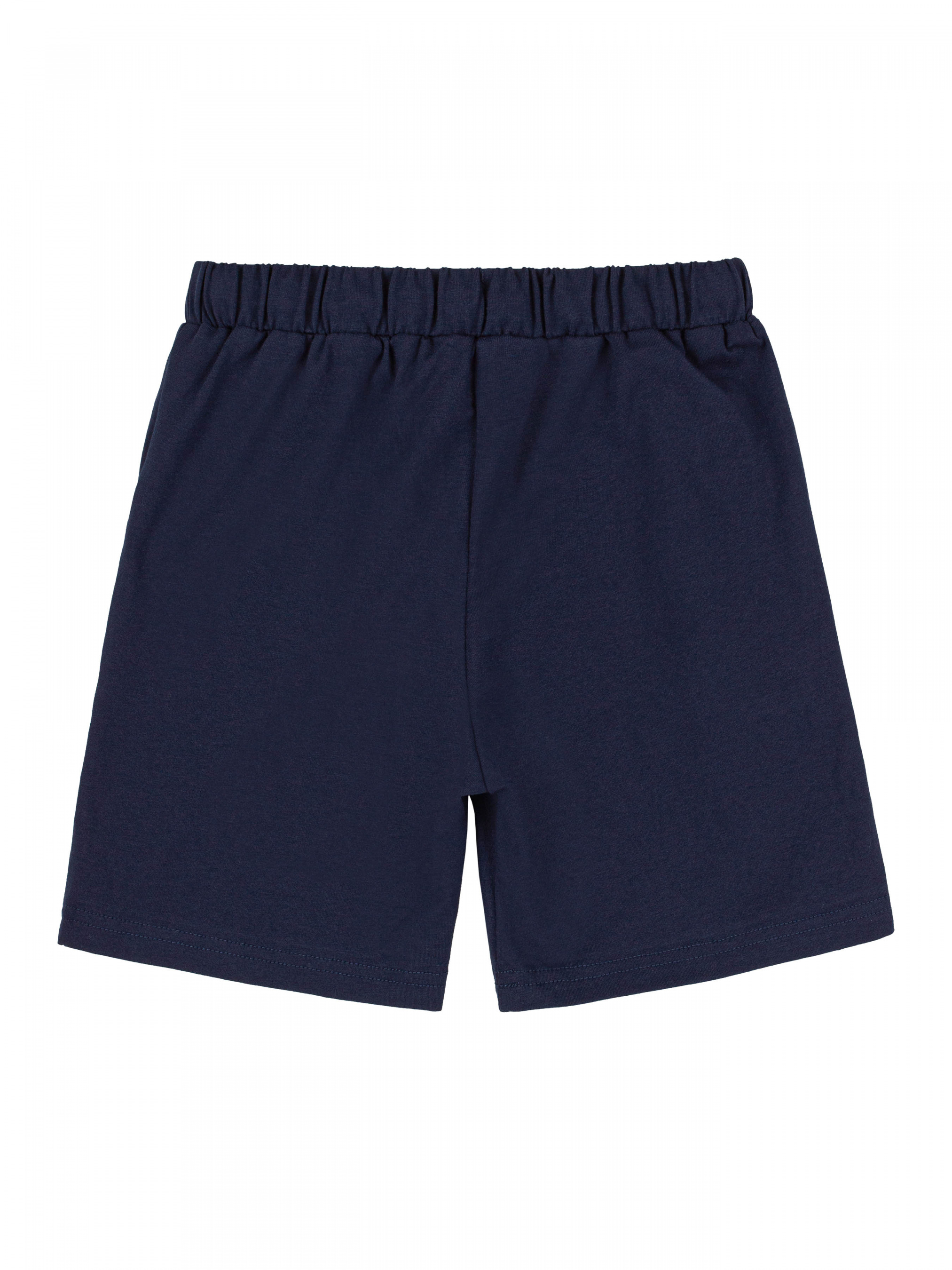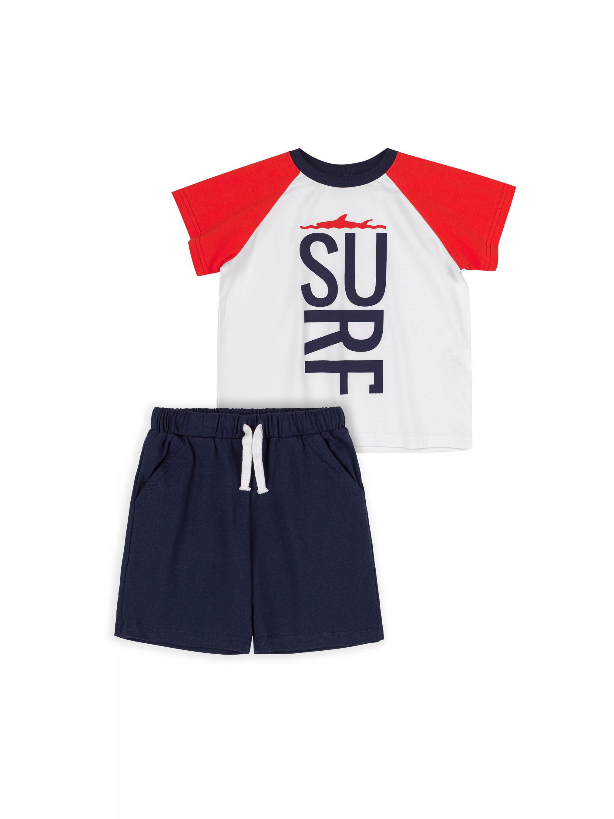 Костюм для Мальчика. Футболка з рукавом реглан, тканина комбінована двома кольорами, спереду принт. Шорти з функціональними кишенями, на поясі резинка та декоративний шнур.