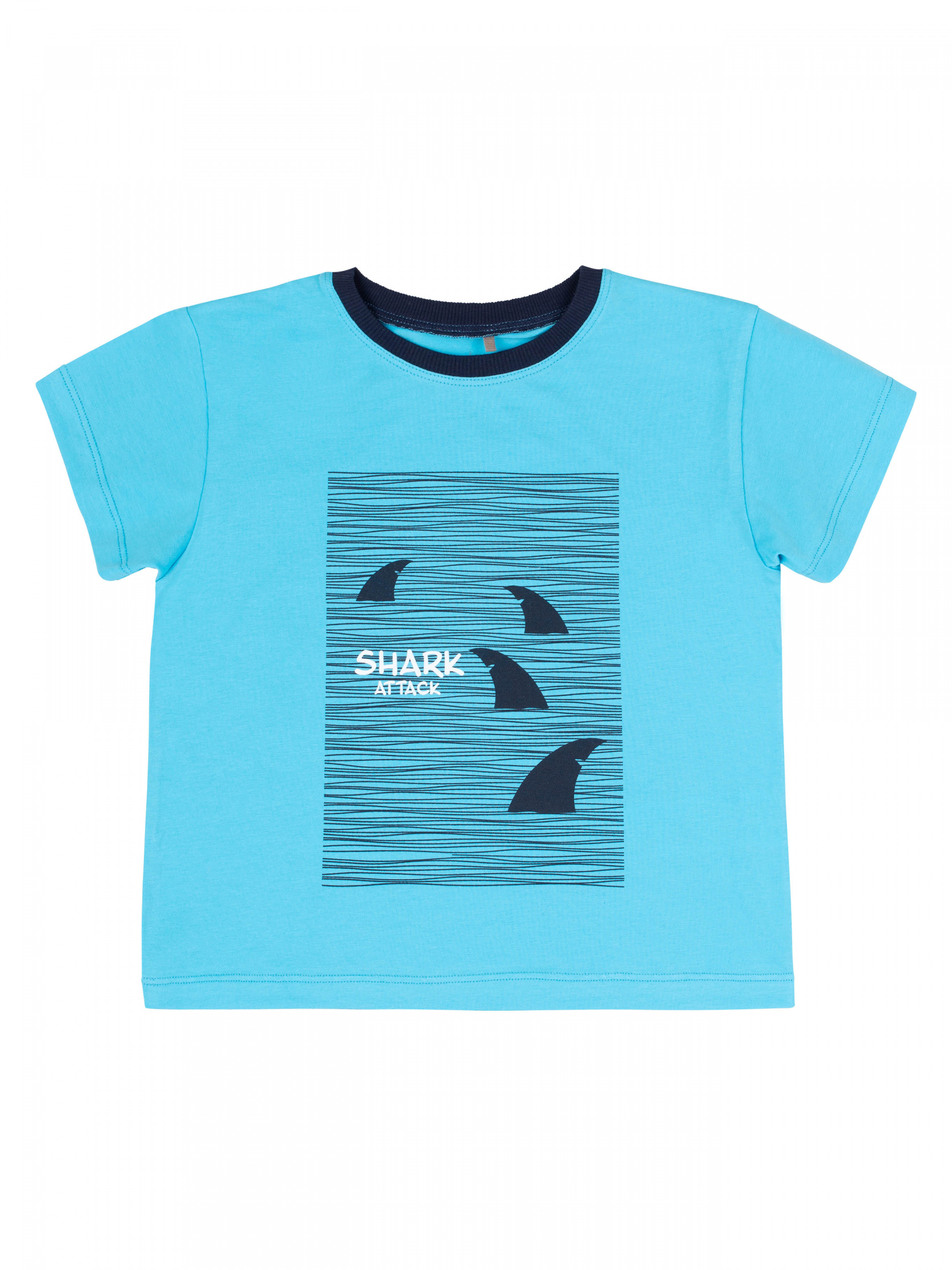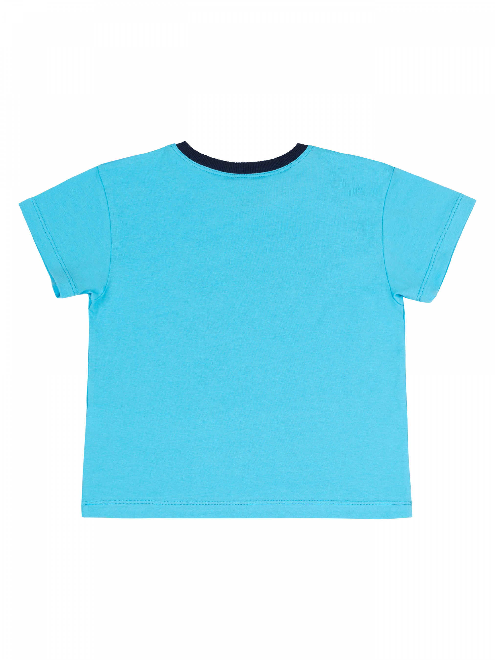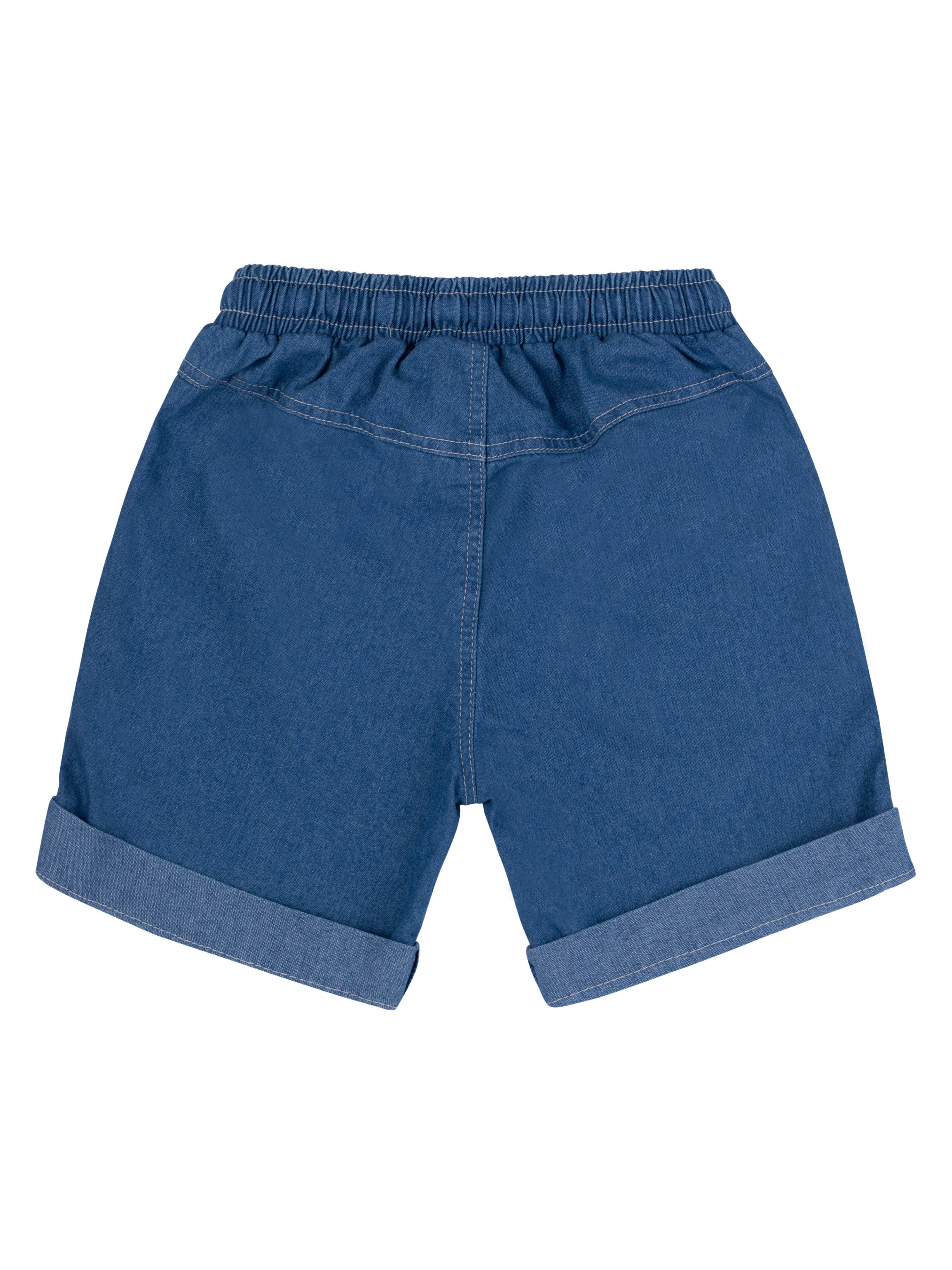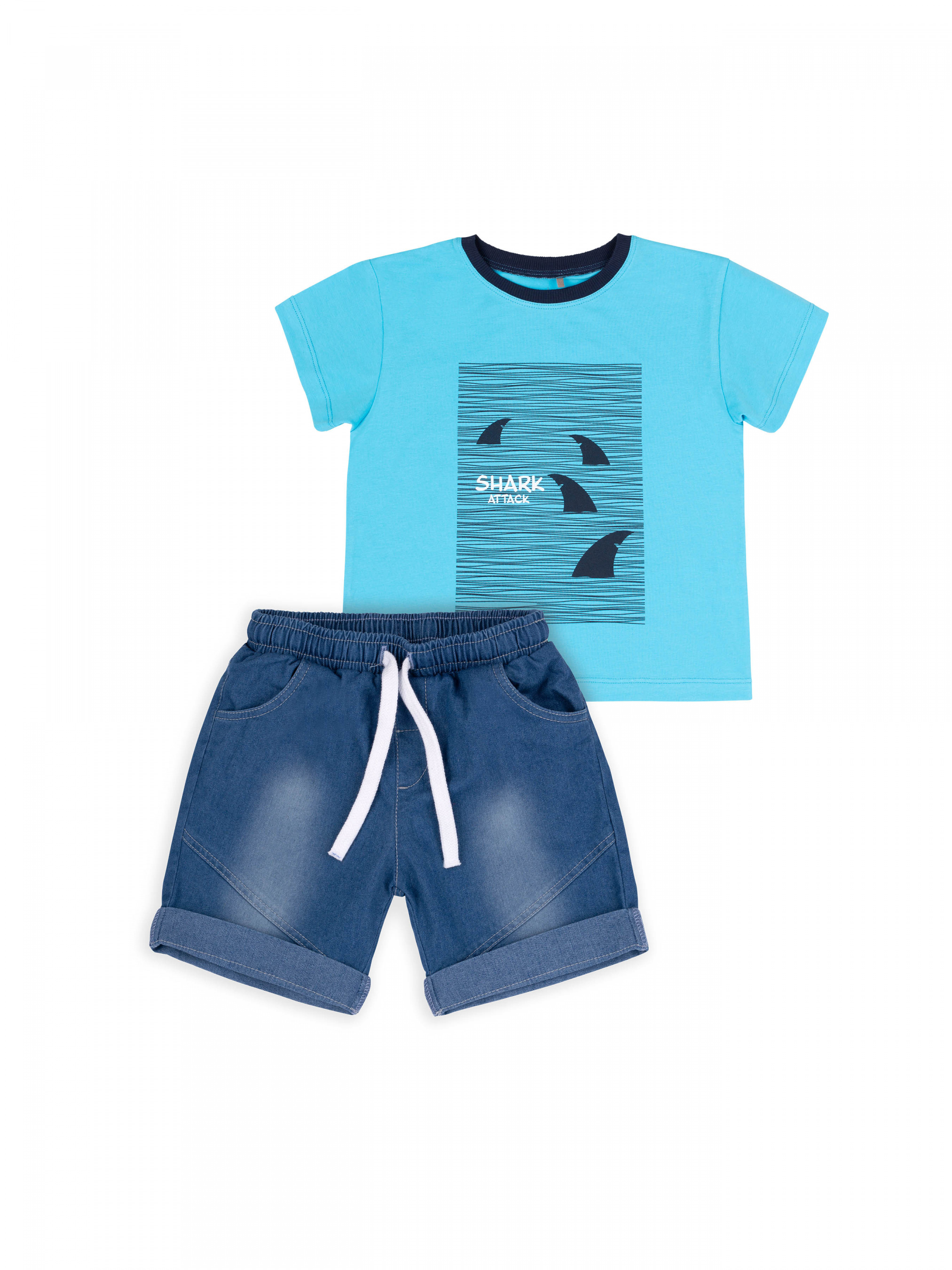 Костюм для Мальчика. Футболка прямого крою, тканина однотонна, спереду друк. Джинсові шорти з функціональними кишенями. На поясі резинка та декоративний шнур.