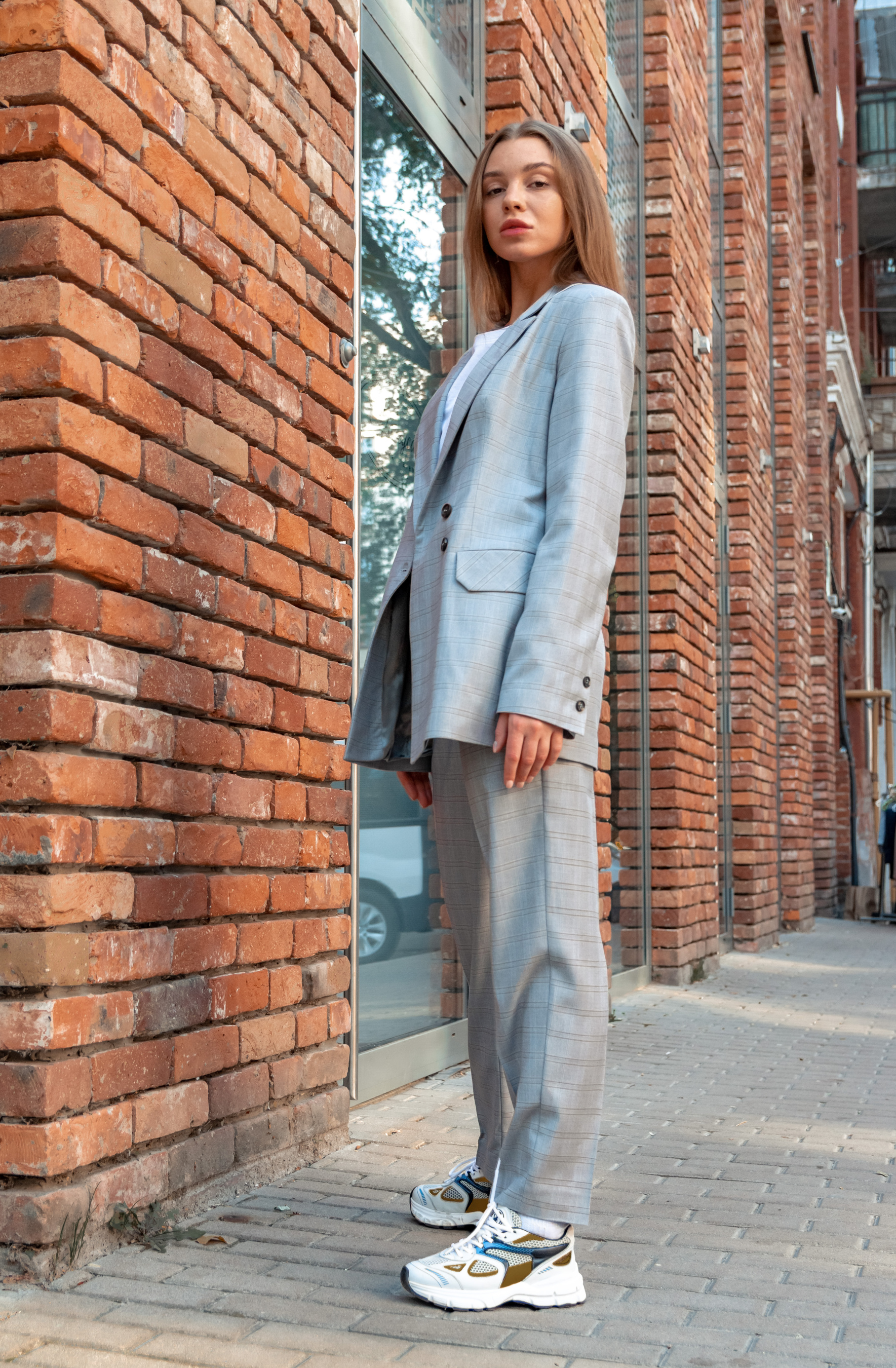 Костюми Костюм женский классический в серую клетку модель Su20021