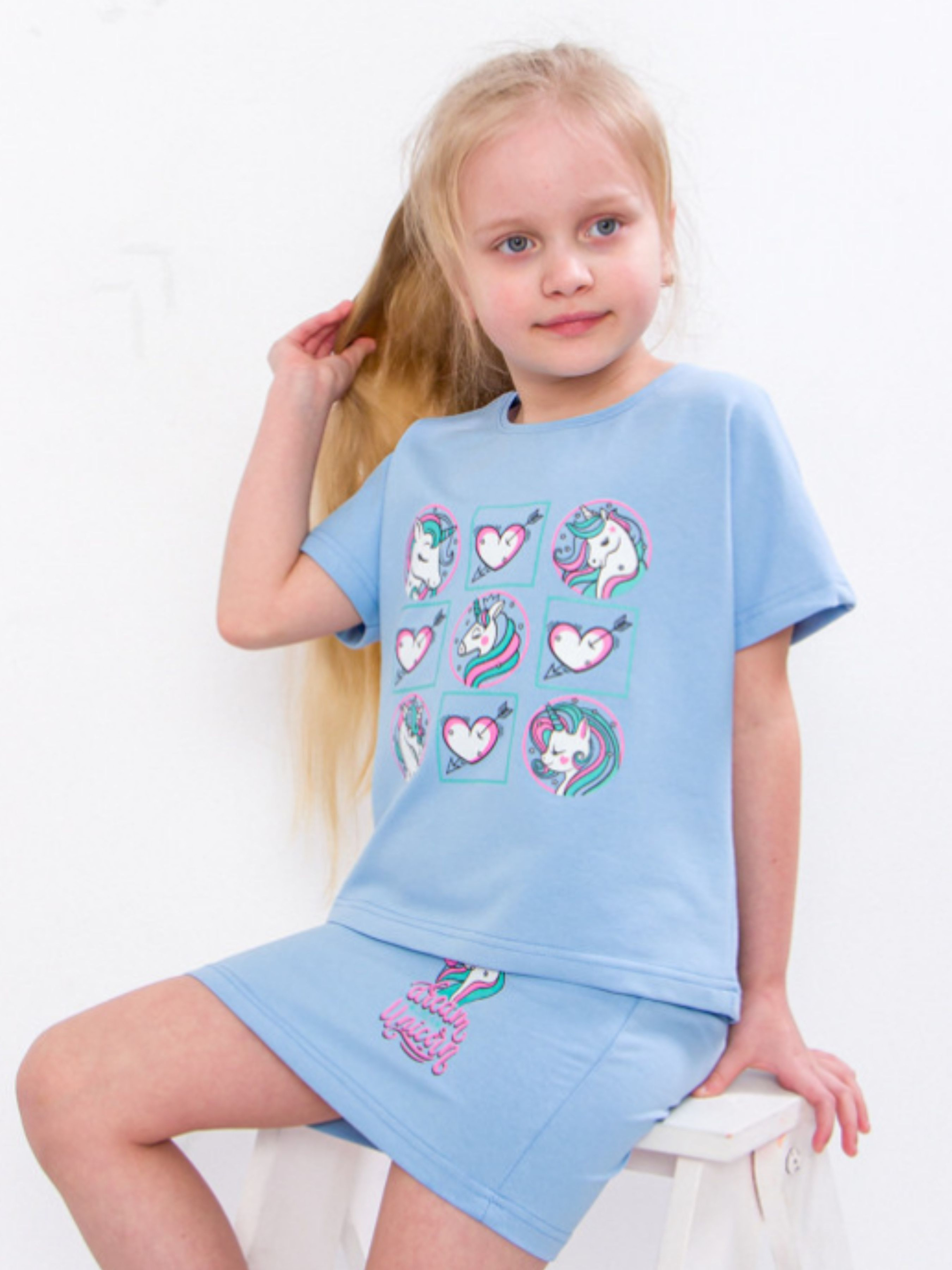Полотно: двонитка однотонна Склад полотна: 80% бавовни 20% поліестру Зріст: 98-116 Чудовий святковий look для сучасної модниці - комплект від відомого українського бренду Носи Своє. У такому комплекті ваша крихітка чарівна. До неї будуть прикуті всі погляди на будь-якій дитячій вечірці. А дівчатка як відомо дуже люблять увагу. Комплект представлений в модній кольоровій гамі виглядає оригінально і дуже ефектно. Костюм складається з футболки та спідниці. Футболка вільного крою зі спущеним рукавом. Спереду красується сріблястий принт. Спідниця не менш ефектна має рівний крій дві бічні кишені прикрашена текстовим принтом. Костюм також дуже зручний. Він не обмежує руху дозволяючи грати і танцювати так активно як хочеться. Вироби міцні і стійкі до зносу. Догляд: прання в теплій воді до 40 ° з нейтральними миючими засобами; прасування з вивороту злегка нагрітою праскою (не вище 100 °). При пранні не використовуйте засоби що містять відбілювач.