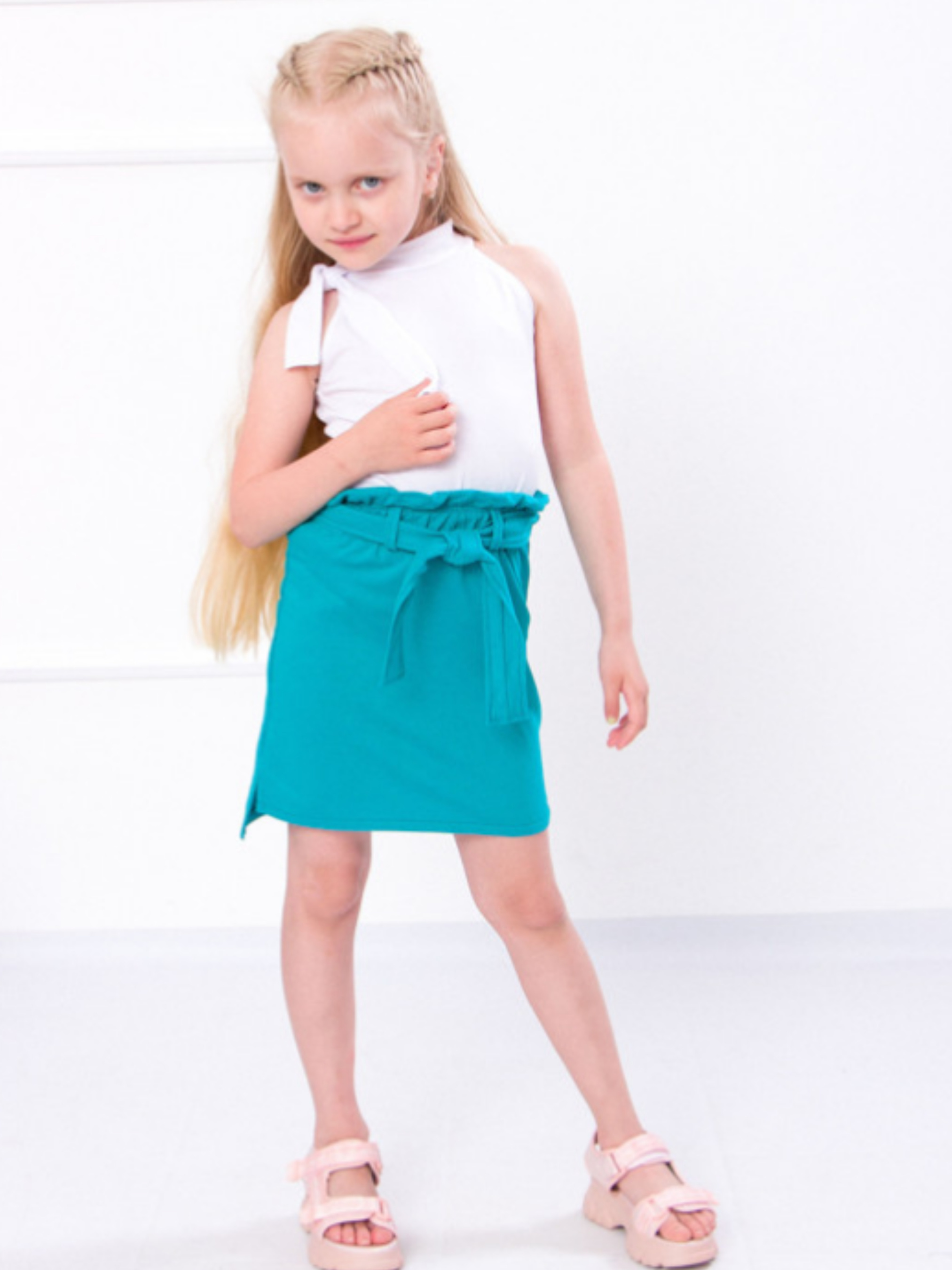 Полотно: фулікра однотонна двонитка однотонна Склад полотна: фулікра - 95% бавовни 5% лайкри двонитка - 80% бавовни 20% поліестру Зріст: 104-146 Приголомшливі моделі одягу для найстильніших дівчат пропонує знаменита українська торгова марка Носи Своє. Відмінним поповненням дівочого гардеробу стане цей безподобний гарнітур що складається з спідниці і блузи. Комплект представлений в модній кольоровій гамі виглядає просто чарівно. Класичний крій спідниці не сковує рухів малечы забезпечуючи їй незвичайну легкість і свободу. Зручний пояс на резинці не викликає дискомфорту в області талії. Американська пройма на маєчці комір-стійка з декоративним бантом з боку - це деталі які виділять вашу дівчинку з натовпу. Для пошиття майки була використана ніжна дихаюча тканина. Вона на 85% складається з натуральної бавовни завдяки якій забезпечується нормальний повітрообмін. Еластан захищає річ від деформації і зносу. Догляд: прання в теплій воді до 40 ° з нейтральними миючими засобами; прасування з вивороту злегка нагрітою праскою (не вище 100 °). При пранні не використовуйте засоби містять відбілювач. Майку прати окремо від спідниці.