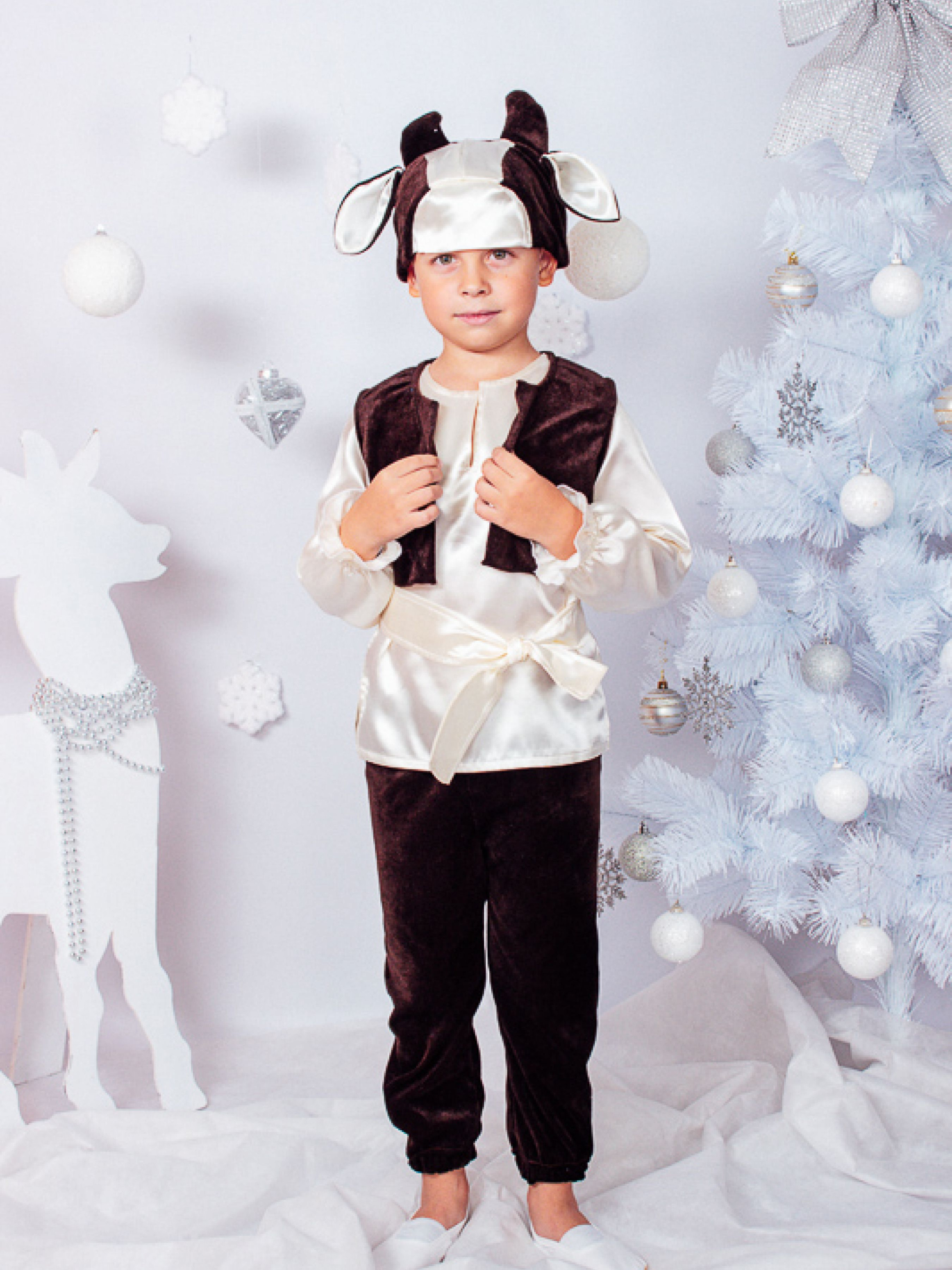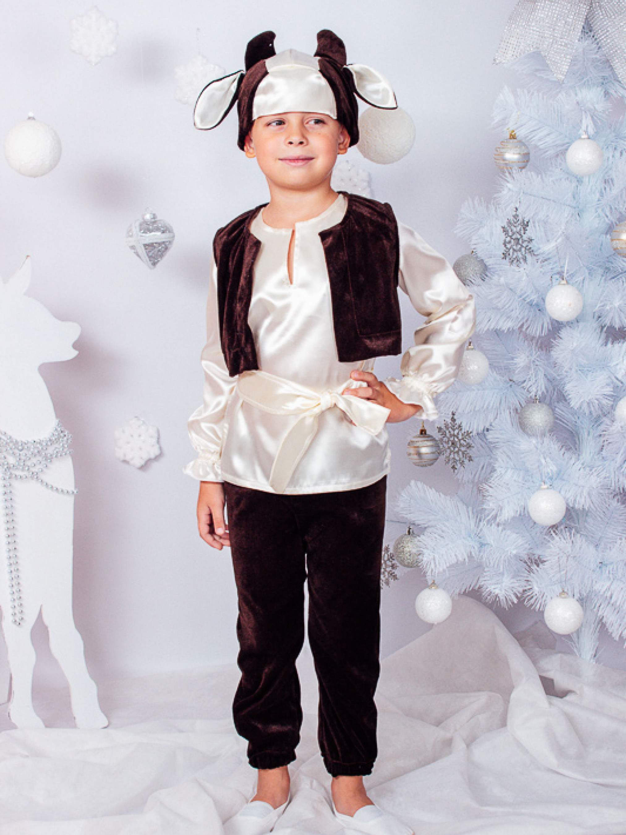 Полотно: атлас і велюр Склад полотна: атлас - 100% поліестр велюр - 80% бавовна 20% поліестр Зріст: 98110 По п'ятах спритного щурика важливо й статечно ступає металевий бик - символ року 2021. Це працьовита тварина сповнена спокоєм рішучістю і впевненістю в завтрашньому дні. Дитячий карнавальний костюм "Бичка" допоможе вашій дитині ідеально увійти в образ казкового героя. Висока якість пошиття різноманітність використовуваних матеріалів і завершеність образу - це відмінні риси українського виробника які безсумнівно оцінять батьки. Модель виконана в комбінації атласу і велюру. Цей маскарадний костюм підійде на будь-яке свято в садочку чи школі і для участі в дитячому спектаклі. Нехай свято для вашої дитини перетвориться на казку разом з карнавальними костюмами від ТМ Носи Своє. Бичок і його дама серця - благородна корівка - принесуть в будинок стабільність і фінансове благополуччя дозволять відкрити в собі лідерські якості та пробудити кар'єрні амбіції. Зверніть увагу на базові рекомендації по догляду: Прати речі з атласної тканини слід вручну. Температура води не повинна перевищувати 30-40С. Перед пранням виріб з атласу можна ненадовго замочити. Для прання краще використовувати м'які миючі засоби. Для додання насиченості кольору атласної тканини можна при останньому полосканні білизни додати у воду невелику кількість оцту. Якщо не дотримуватися даних рекомендації то речі можуть швидко втратити свій початковий зовнішній вигляд і деформуватися! УВАГА! Товар обміну та поверненню не підлягає!