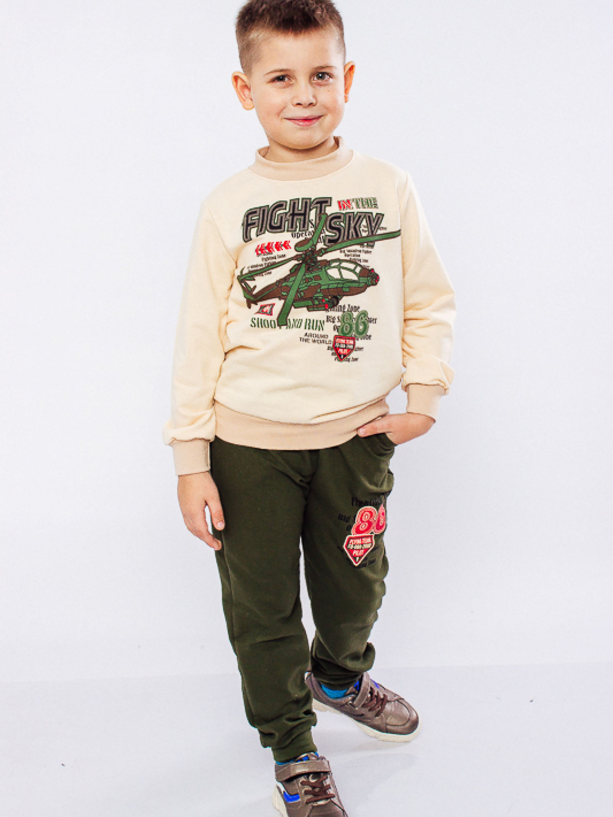 Полотно: двонитка однотонна Склад полотна: 80% бавовни 20% поліестру Зріст: 92-134 З огляду на високу рухливість дитини під час ігор варто підбирати для неї максимально зручний одяг переважно з натуральних тканин. Саме тут на допомогу приходять спортивні костюми від торгової марки Носи Своє. Вільний і зручний комплект із світшоту і брюк з оригінальним принтом - те що потрібно. Джемпер з круглим вирізом горловини і штани вільного крою доповнені широкими еластичними манжетами. Для пошиття моделі використовувалося високоякісне бавовняне полотно - двохнитка що є безпечним для організму і чутливої шкіри дитини. Взимку і в період міжсезоння в такому чудовому костюмі дитині буде тепло і комфортно він прекрасно підходить в якості домашнього одягу наряду для ігор і прогулянок забезпечує модний і стильний вигляд не обмежує рухів активної дитини. Догляд: допускається як ручне так і машинне прання ( "делікатне") при температурі 30 градусів з використанням неагресивних засобів для прання. При полосканні краще використовувати кондиціонер. Сушка в розправленому вигляді. Прасувати виріб з виворітного боку. Відмінна якість і цікавий дизайн супроводжуються доступною ціною!