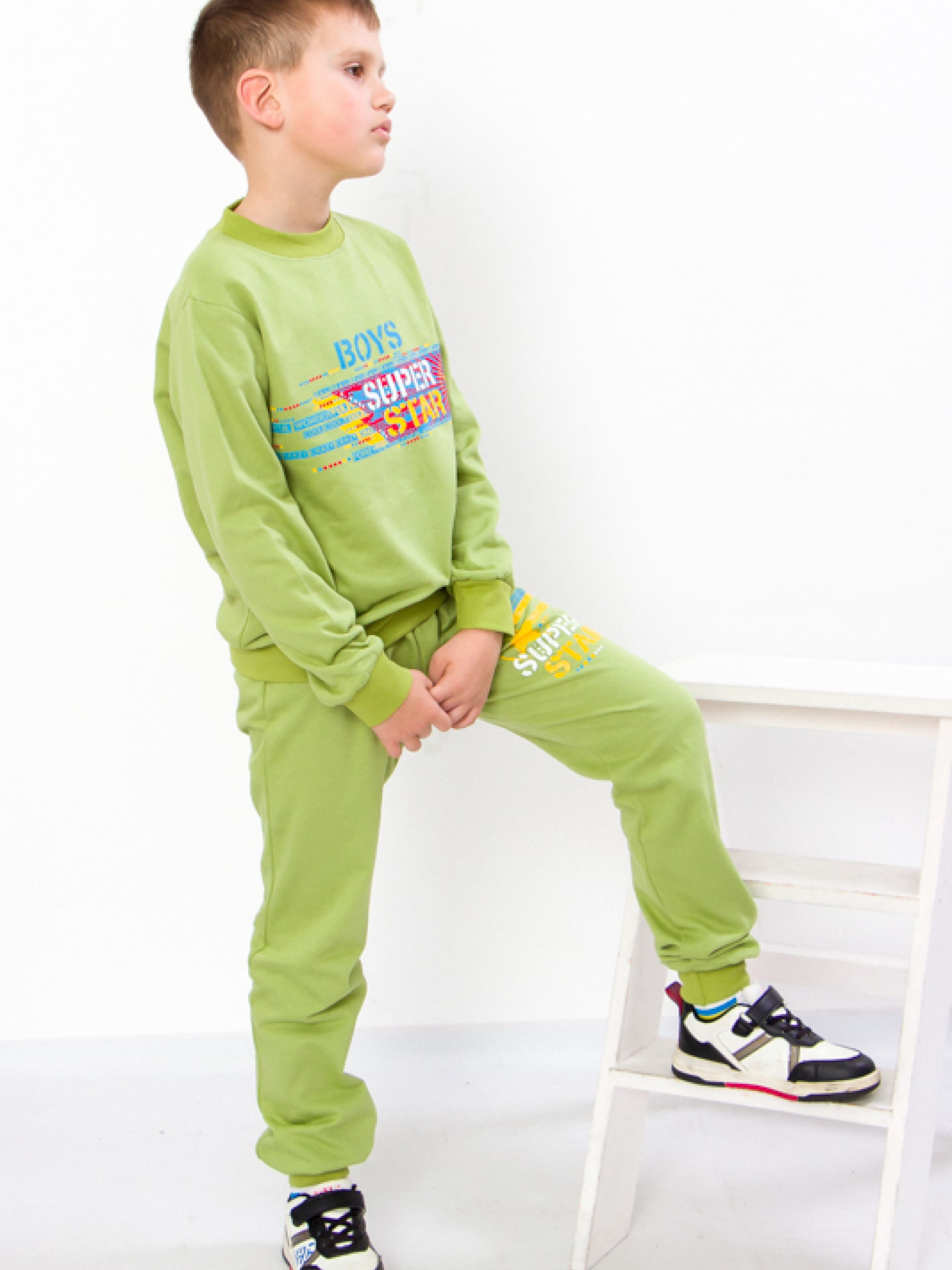 Полотно: начос однотонний Склад полотна: 100% бавовна Зріст: 86-98 128-134 Рухливі дітки люблять бігати грати і всіляко досліджувати навколишній світ не терплять скутості рухів. Саме тут на допомогу приходять спортивні костюми від торгової марки Носи Своє. Вільний і зручний комплект з світшота і брюк з оригінальним принтом - те що потрібно. Джемпер з круглим вирізом горловини і штани вільного крою доповнені широкими еластичними манжетами. Для пошиття моделі використовувалося високоякісне бавовняне полотно - футер що є безпечним для організму і чутливої шкіри дитини. В такому чудовому костюмі дитині буде тепло і комфортно він прекрасно підходить в якості домашнього одягу наряду для ігор і прогулянок забезпечує модний і стильний вигляд не обмежує рухів активної дитини. Догляд: допускається як ручне так і машинне прання ( "делікатне прання") при температурі 30 градусів з використанням неагресивних засобів для прання. При полосканні краще використовувати кондиціонер. Сушка в розправленому вигляді. Прасувати виріб з виворітного боку. Відмінна якість і цікавий дизайн супроводжуються доступною ціною! Не витрачайте час на походи по магазинах купуйте якісний одяг від українського виробника-компанії Носи Своє