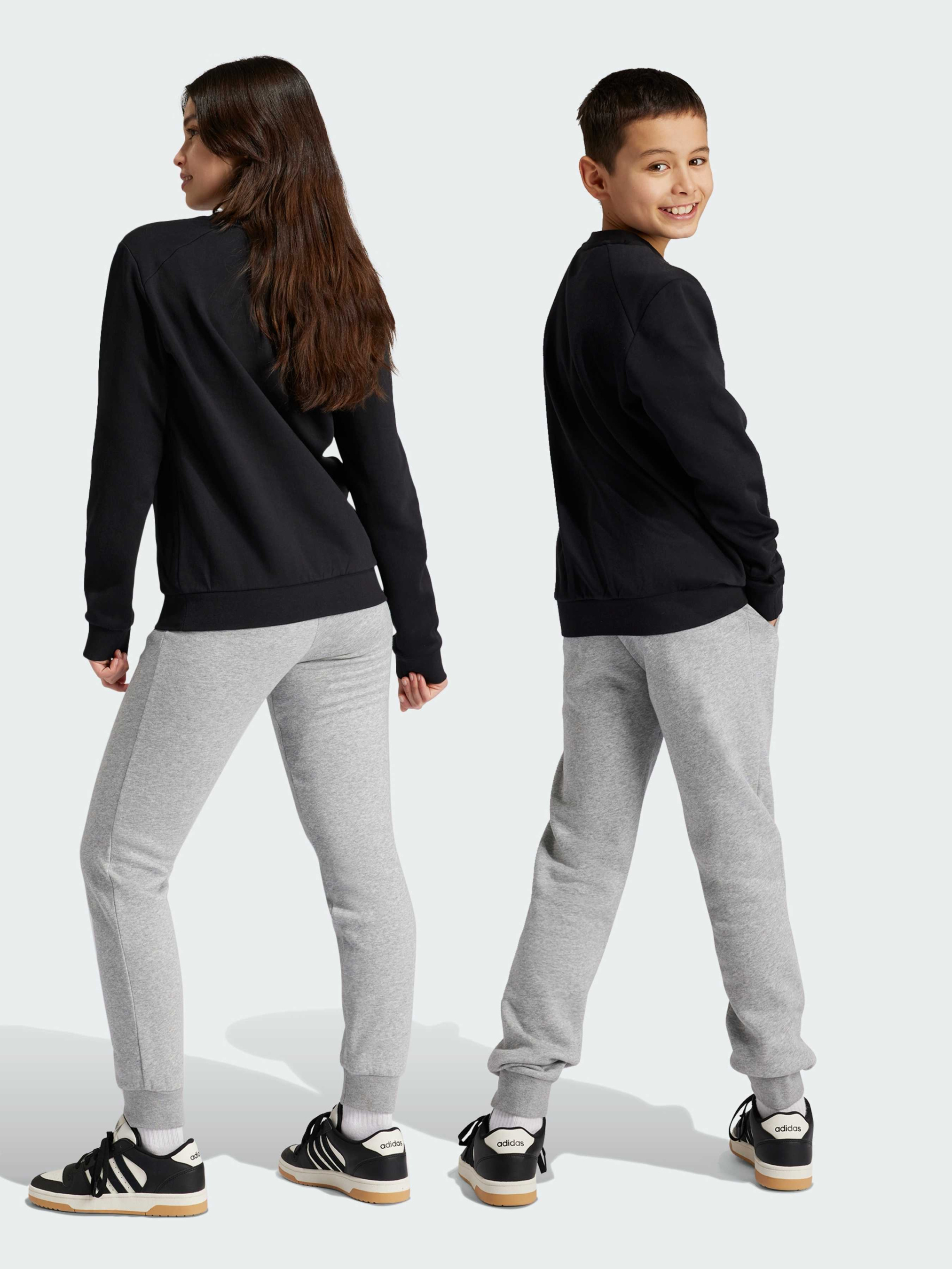 Характеристики 70% бавовна, 30% перероблений поліестер Верх: рифлені манжети та низ Рифлений круглий виріз горловини Світшот прямого крою зі штанами вузького крою Середня посадка Штани: рифлені манжети Штани: Передні кишені Опис Цей костюм для підлітків від adidas - ідеальне поєднання затишку та стилю. М'який фліс зігріває в прохолодну погоду, а завужені джогери з манжетами додають акуратного вигляду. Поєднай з улюбленими кросівками - і образ готовий.