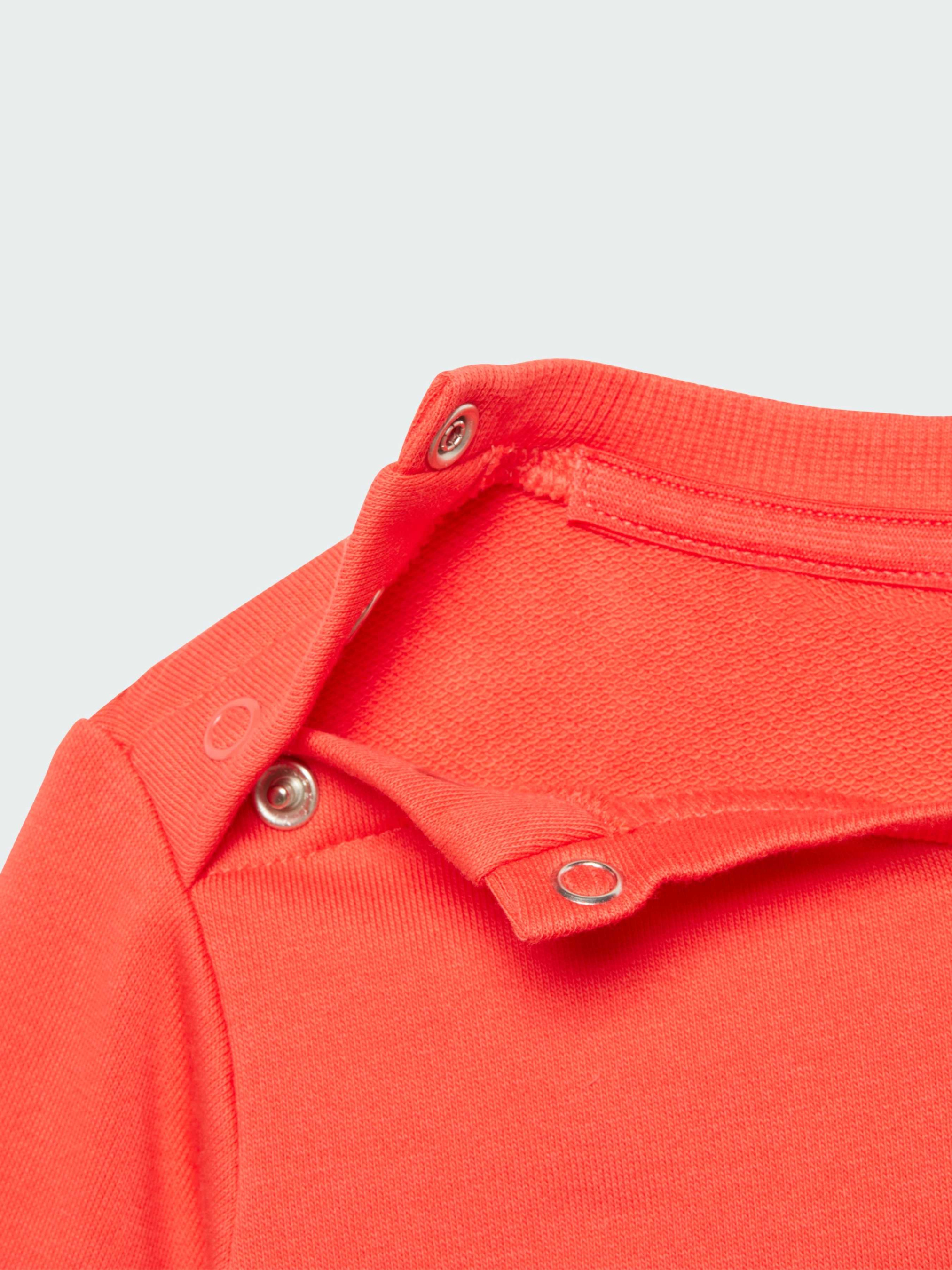 Характеристики Круглий комір Рифлені манжети та нижній край Вільний крій Футер: 70% бавовна, 30% перероблений поліестер Еластичний пояс на зав'язках-шнурках Рифлені манжети на штанах Опис Для активних ігор з самого ранку. Дитячий комплект з джемпера та штанів. Зшитий з м'якого футера, має вільний крій. Еластичний пояс доповнений зав'язкамм. Модель виконана з перероблених матеріалів в рамках наших зобов'язань по скороченню пластикових відходів.