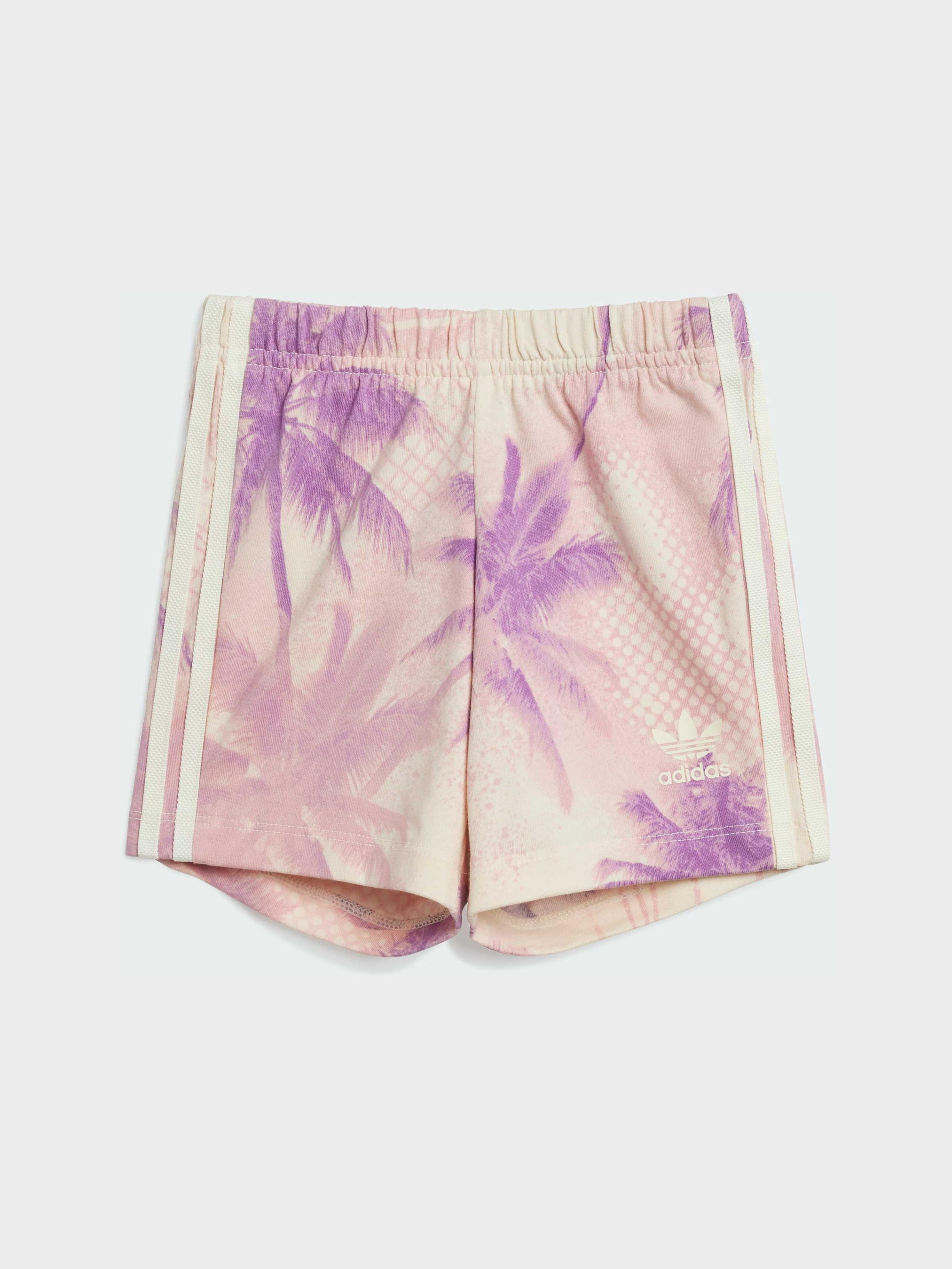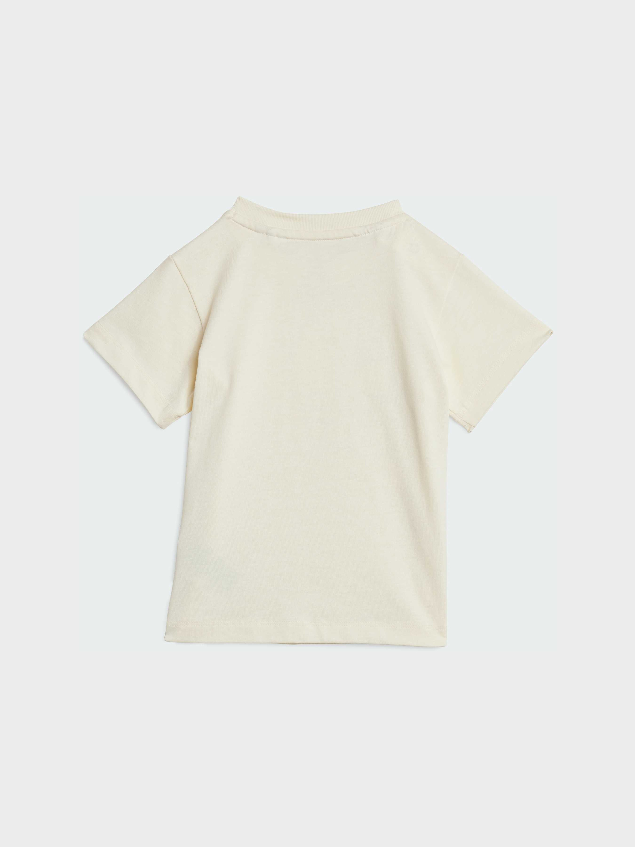 Характеристики 100% бавовна Верх: рифлена горловина Стандартний крій Шорти: еластичний пояс, зав'язки на шнурку Опис Цей комплект для малюків від adidas створений для активних прогулянок і веселих ігор. М'яка тканина і класичний круглий виріз забезпечують зручність з ранку до вечора. Яскраві кольори і графіка додають сонячного настрою - ідеальний вибір для теплих днів в парку або на пляжі.