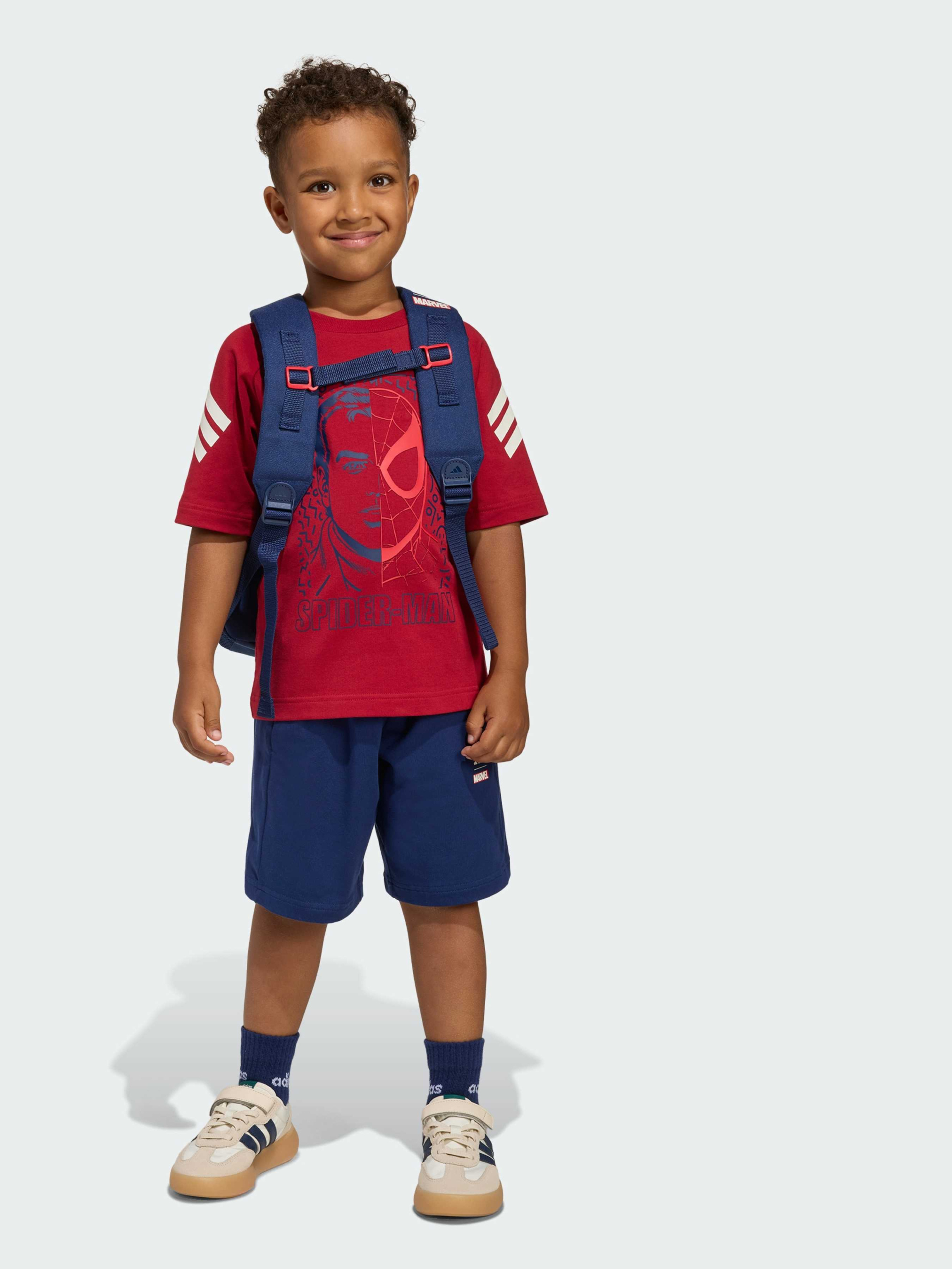 Характеристики 93% бавовна, 7% еластан Верх стандартної довжини, шорти вище коліна Круглий виріз горловини Середня посадка Стандартний крій Одношаровий трикотаж Двоколірний щільний принт спереду Опис Відкрий для своєї дитини світ супергеройських пригод з комплектом adidas Marvel Spider-Man. Ця колекція Future Icons створена для активних дітей, які люблять грати, досліджувати і виражати себе. Футболка з динамічним принтом Людини-павука оживляє культового героя, а м'який трикотаж дарує свободу рухів і комфорт на весь день. Шорти середньої посадки забезпечують надійну і зручну фіксацію, дозволяючи маленьким героям рухатися впевнено. Яскраві деталі і фірмові смужки adidas додають спортивний штрих і підкреслюють унікальний стиль. Зроби кожен день пригодою - з adidas це більше, ніж одяг, це справжній спосіб життя.