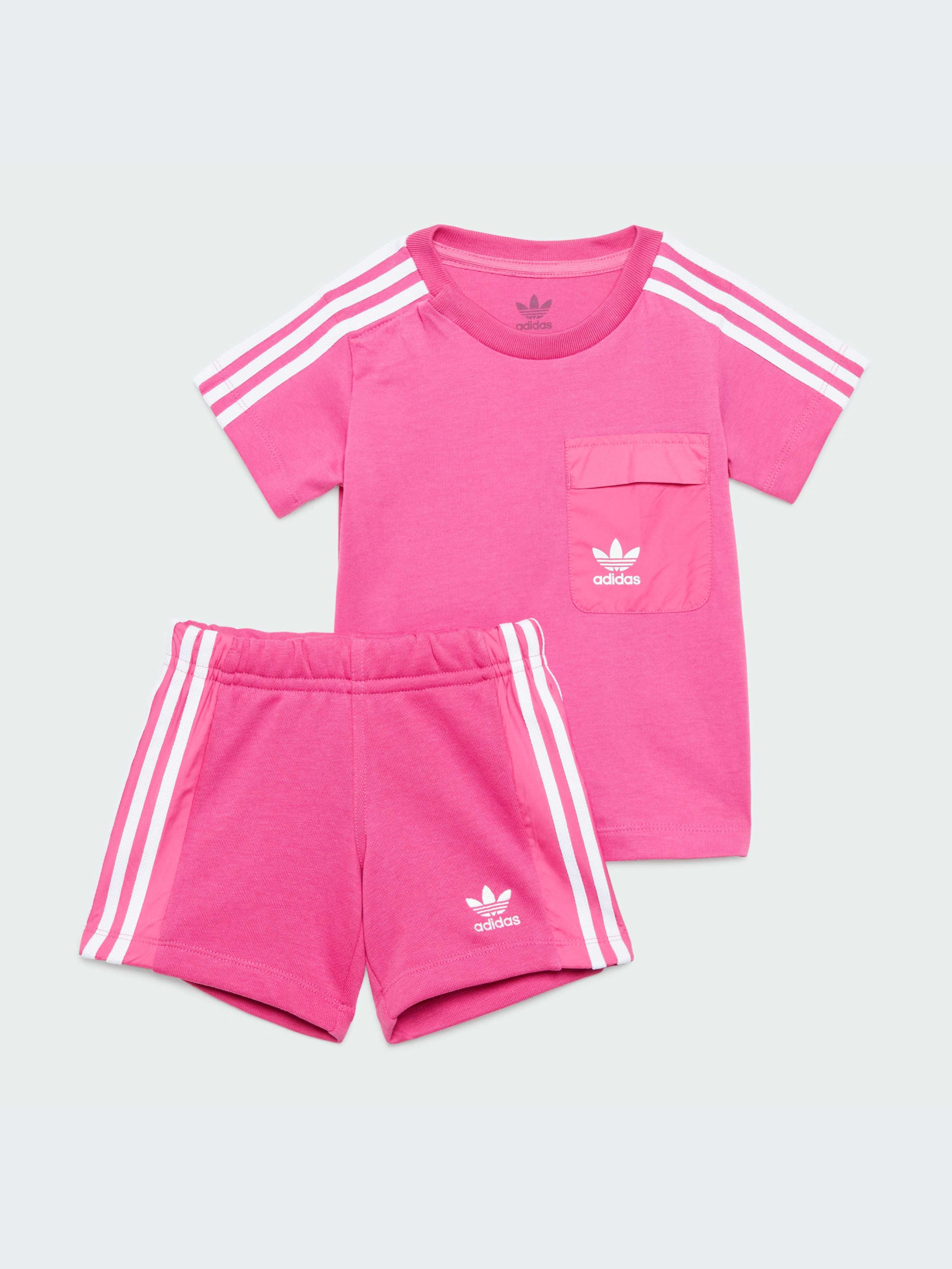 Характеристики 100% бавовна Рифлений круглий воріт; застібка з кнопками на плечі Стандартний крій Шорти: еластичний пояс, зав'язки на шнурку Поставляється за системою балансу мас Better Cotton, тому цей продукт може не містити Better Cotton Опис Діти будуть готові до всього в цьому комплекті з шортів і футболки від adidas. Логотип у вигляді Трилисника на нагрудній кишені і три смужки з боків шортів у поєднанні з рифленою горловиною створюють класичний спортивний образ. Еластична талія зі стягуючим шнурком, застібка-ґудзик на плечі й одношаровий матеріал джерсі забезпечують максимальний комфорт. Бавовна для цього виробу була отримана завдяки Better Cotton. Бавовну Better Cotton постачають за моделлю ланцюжка поставок, що називається балансом мас. Це означає, що бавовну Better Cotton неможливо фізично відстежити до кінцевого продукту. Йде розмір в розмір. Ми радимо замовити цю модель в твоєму звичайному розмірі.