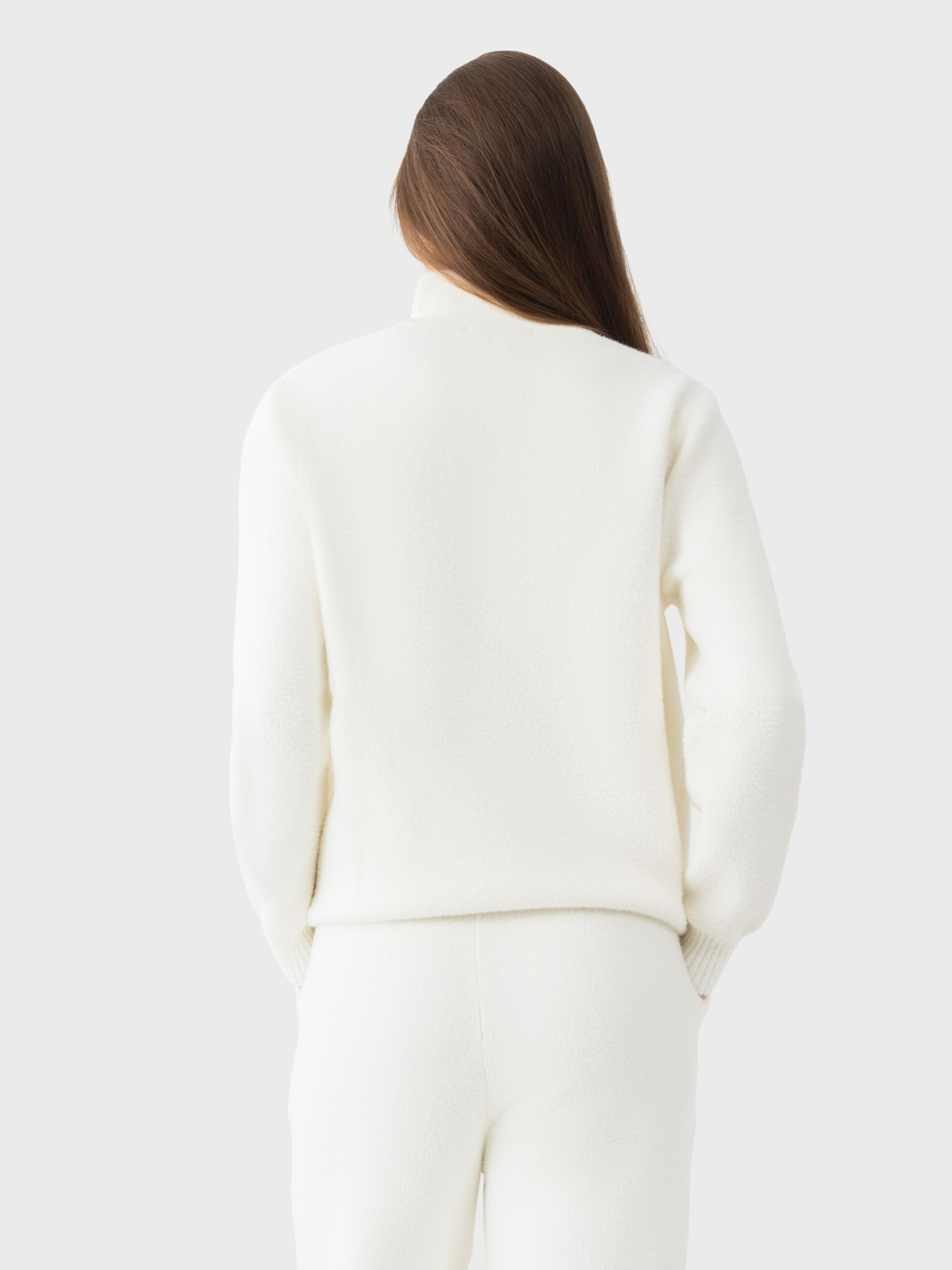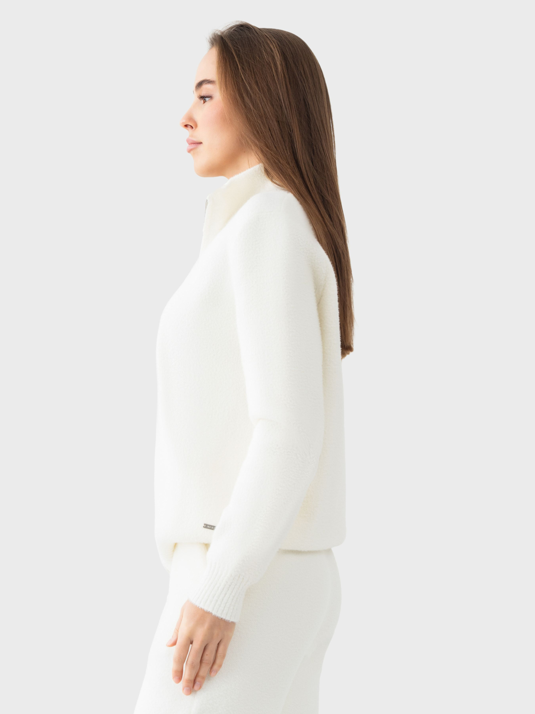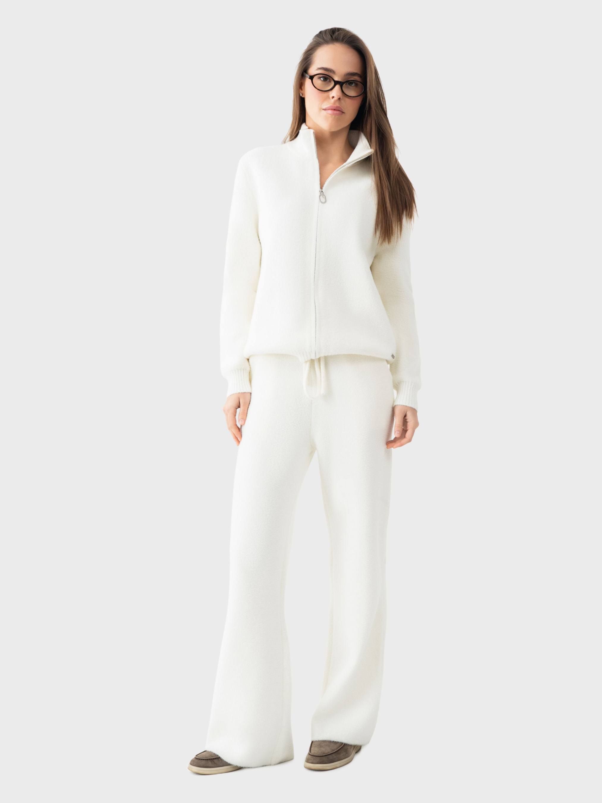 Жіночий костюм AVECS у бежевому кольорі створений для комфортного носіння в холодний сезон і для активного міського ритму. Поєднання мериносової вовни, віскози та поліестеру утворює приємний на дотик, теплий і водночас міцний матеріал, який зберігає акуратний вигляд навіть після тривалого використання. Вовна мериноса має природні терморегулюючі властивості: вона утримує тепло в холодну погоду та не спричиняє перегріву в приміщенні, підтримуючи комфорт протягом усього дня. Тканина залишається еластичною, дихаючою та гіпоалергенною, що робить костюм універсальним вибором для щоденної активності. Кофта на блискавці забезпечує зручність і захист у прохолодні моменти, а штани з манжетами-кльош підкреслюють силует та забезпечують свободу рухів. М’якість матеріалу та продуманий крій роблять костюм комфортним для прогулянок, подорожей і динамічної роботи. Костюм AVECS в бежевому відтінку легко поєднується з різним верхнім одягом і взуттям, підкреслюючи мінімалістичний спортивно-міський стиль. Це теплий і функціональний комплект, що поєднує сучасний комфорт, природні властивості вовни та лаконічний дизайн. Для збереження властивостей тканини рекомендується прати костюм на делікатному режимі при температурі до 30 °C, без віджиму у пральній машині, використовуючи рідкий миючий засіб. Склад: вовна мериноса 45%,віскоза 35%, поліестер 20%.